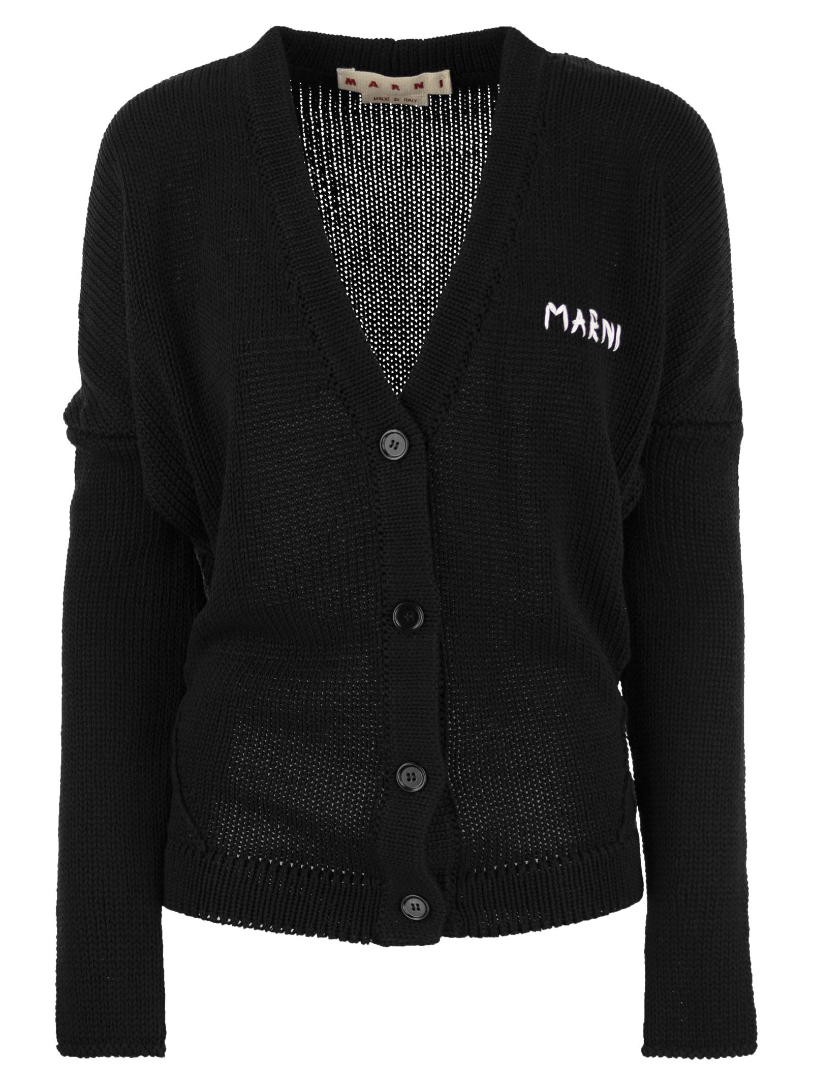 Long-sleeved cotton cardigan. Featuring a V-neck and horn button fastening. Loose fit. Hand-embroidered logo on chest. - Made in Italy - Button closure - Regular fit DESIGNER ID: CDMD0331A0 UFCB19 00N99