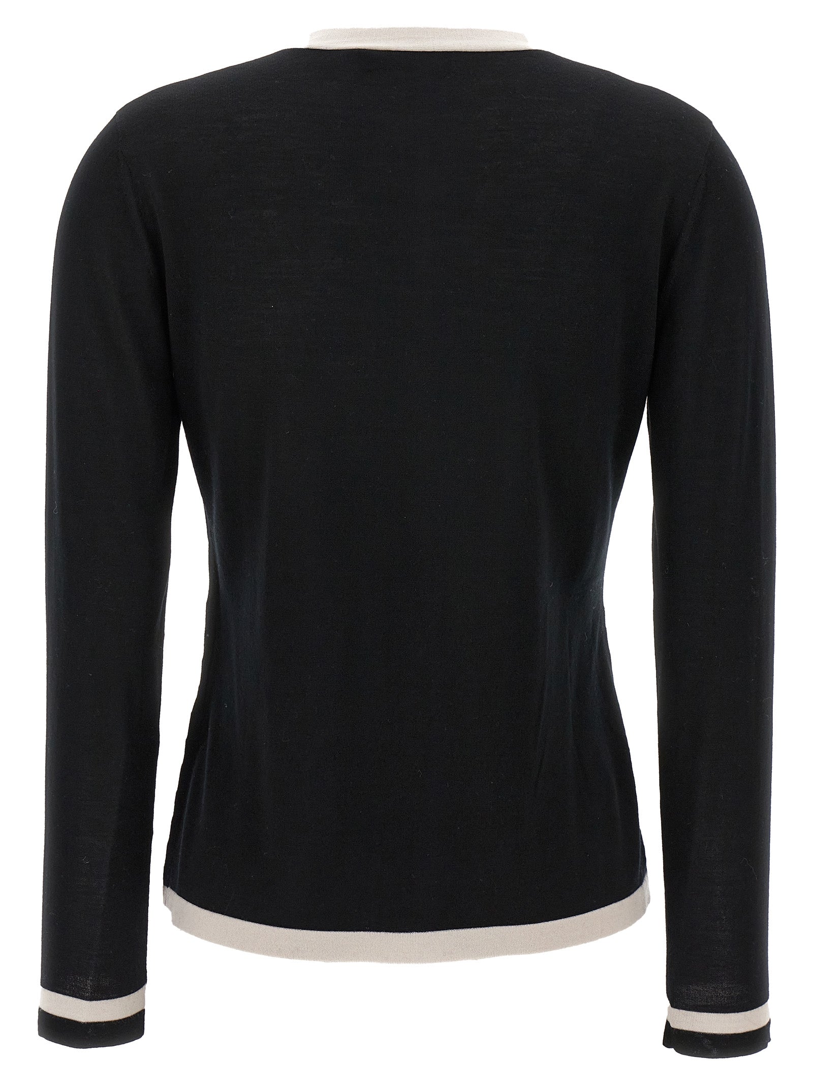 'Kenya' wool cardigan with contrast trims, pockets, button closure, long sleeves.
