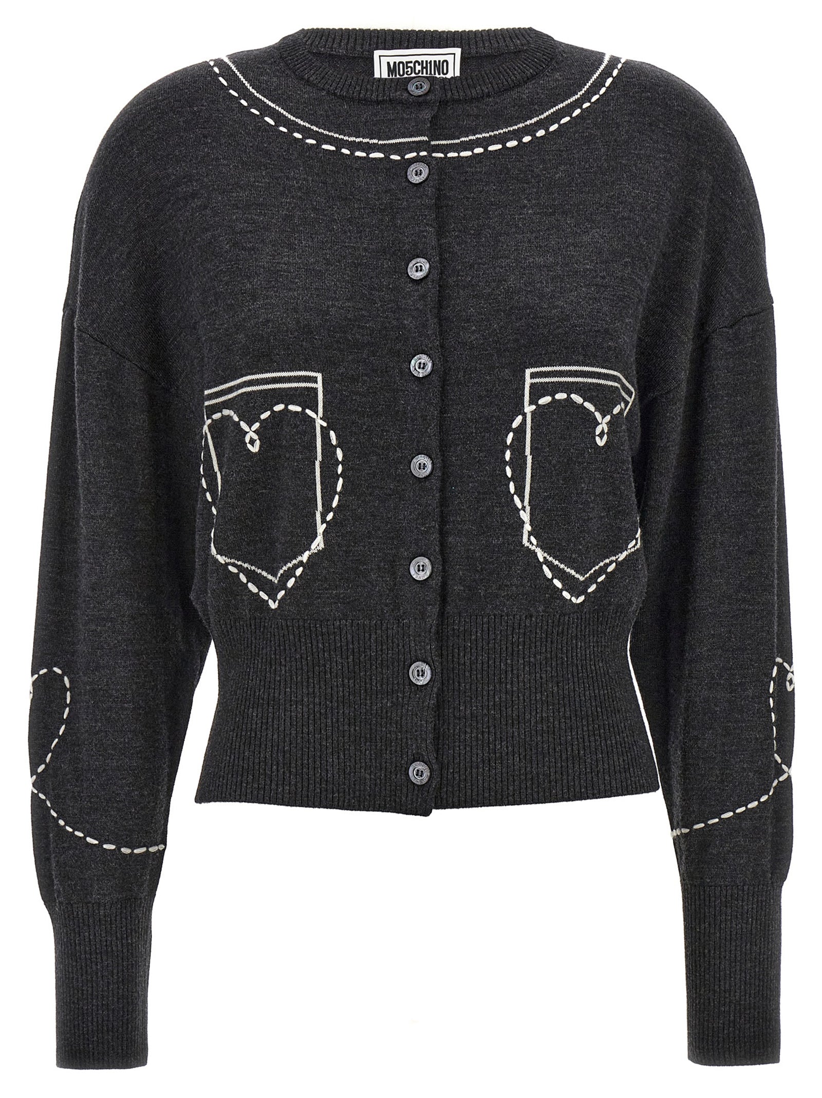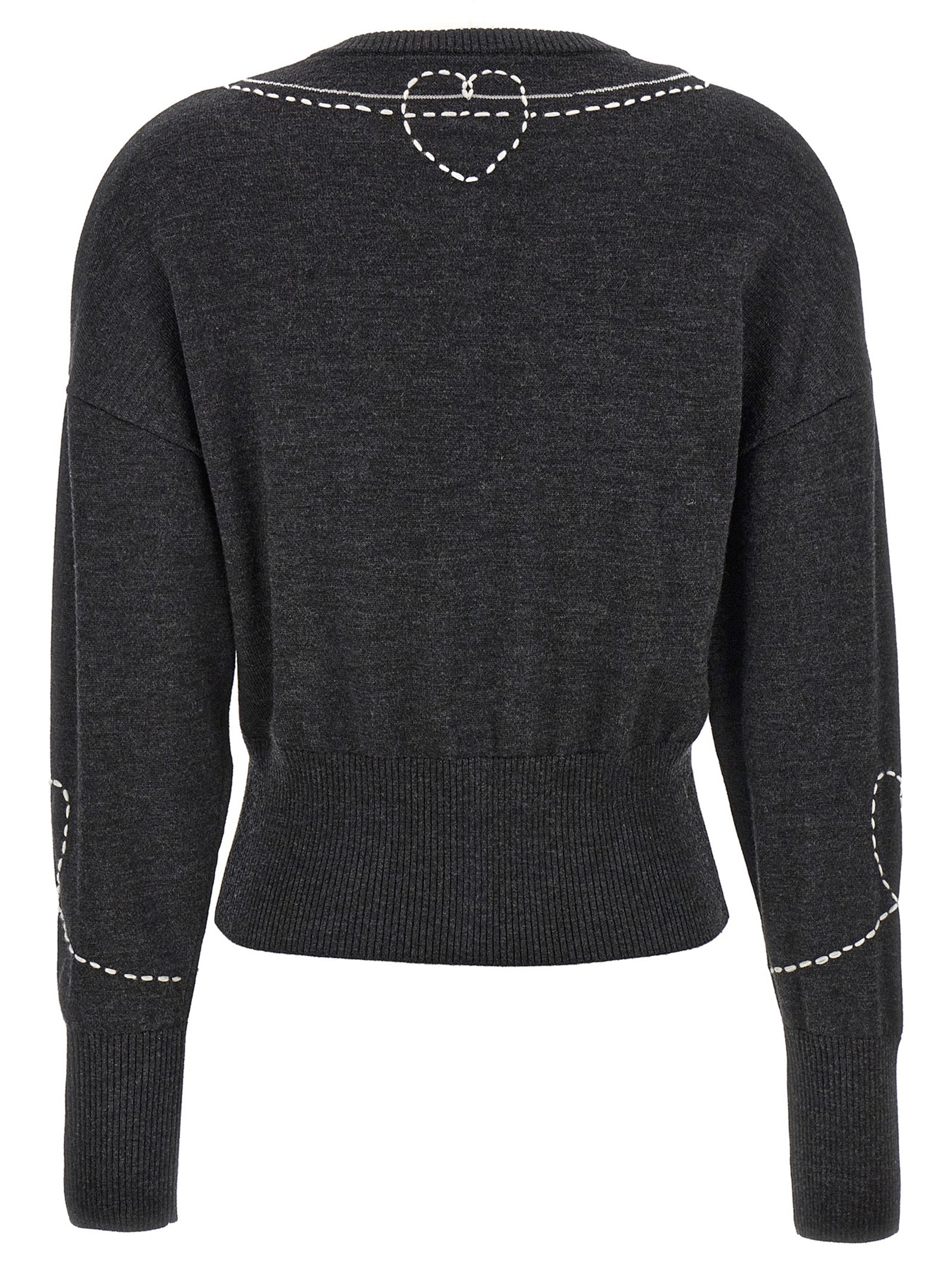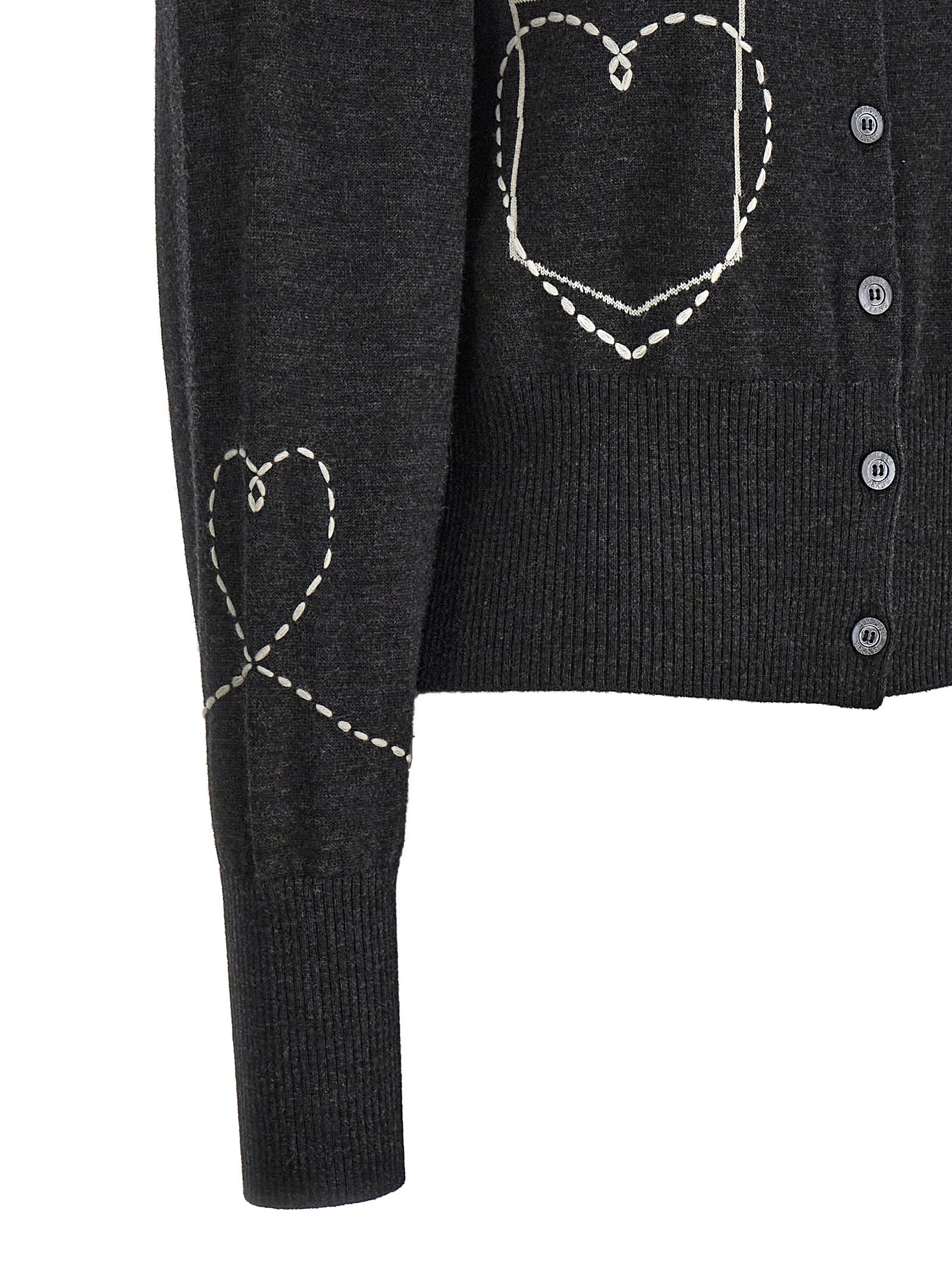 Wool cardigan with contrasting embroidery, button closure, long cuffed sleeves.