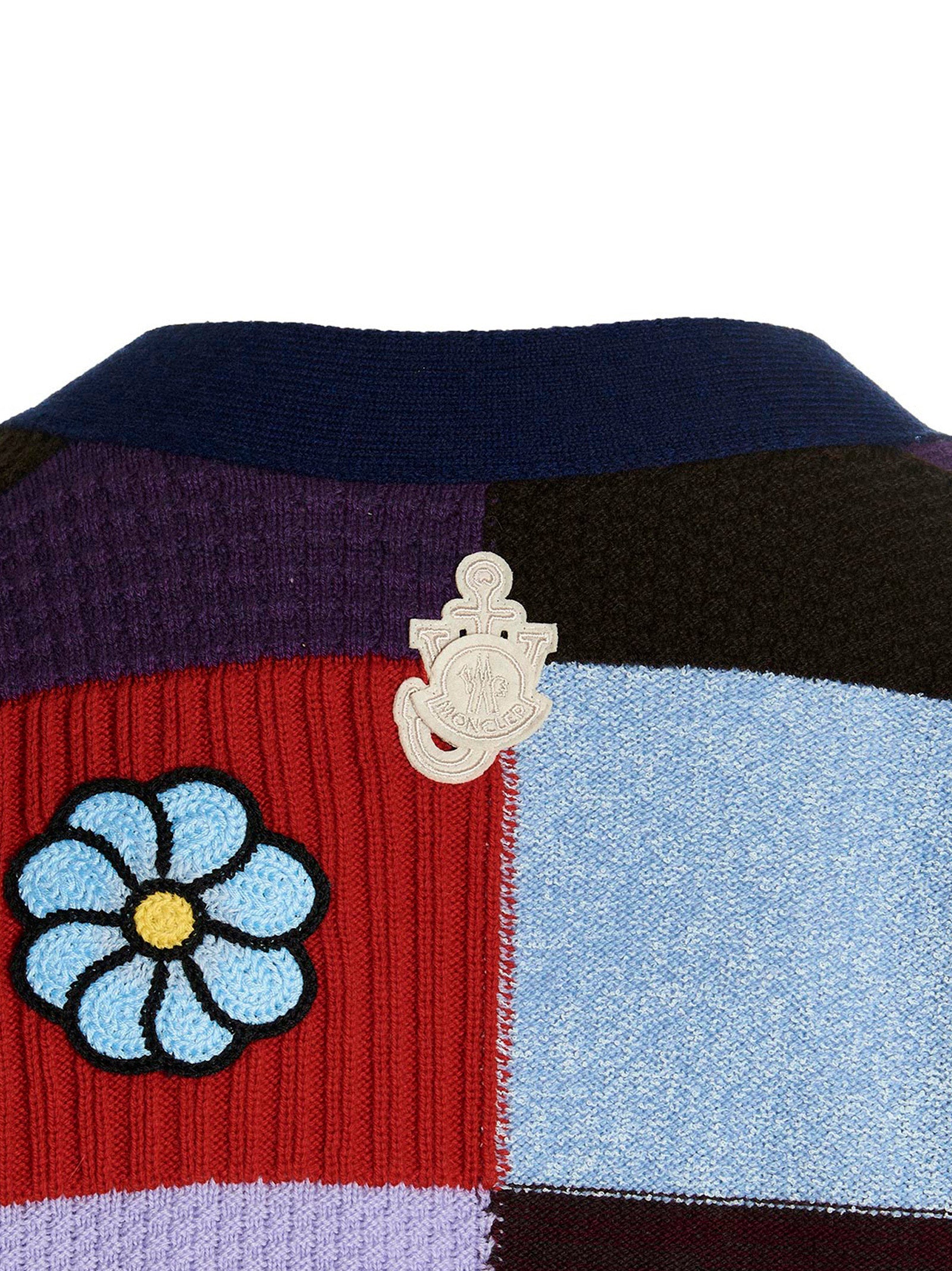 Moncler Genius x J.W.Anderson multicolor wool and cachemire cardigan, with embroidery appliqué, pockets, long cuffed sleeves and a button closure.