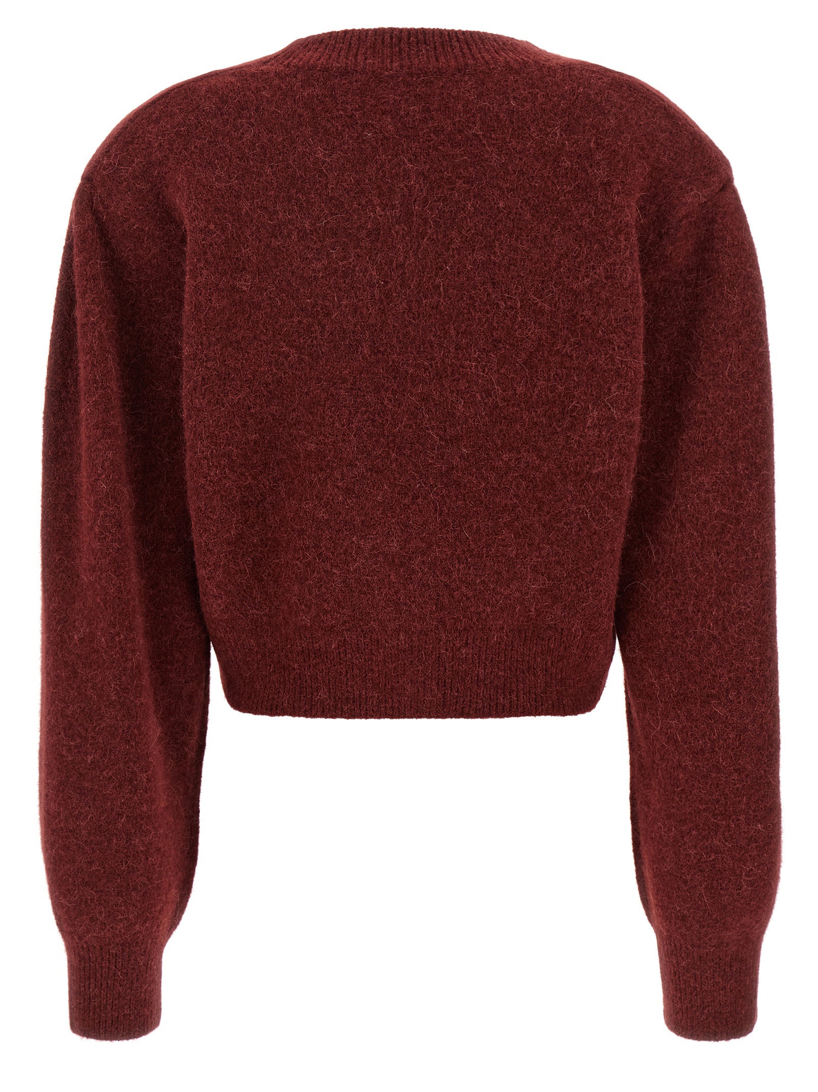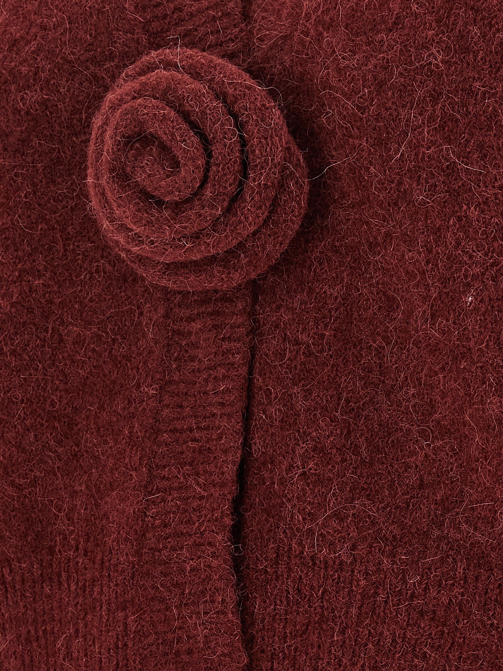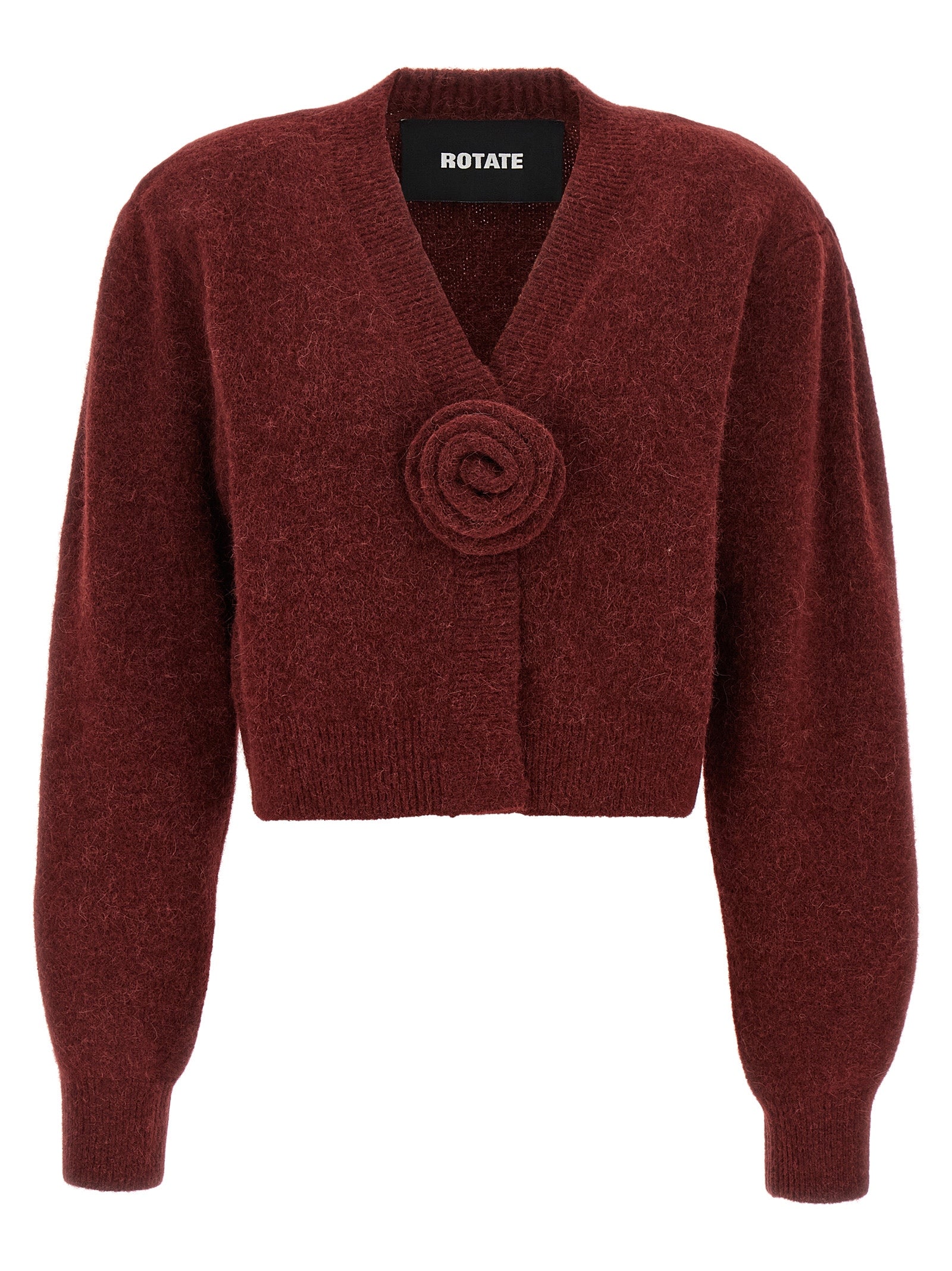 'Knit Puffsleeve' cropped cardigan in wool blend, V-neck, snap button closure, long puff sleeves with cuffs, and removable flower decoration.