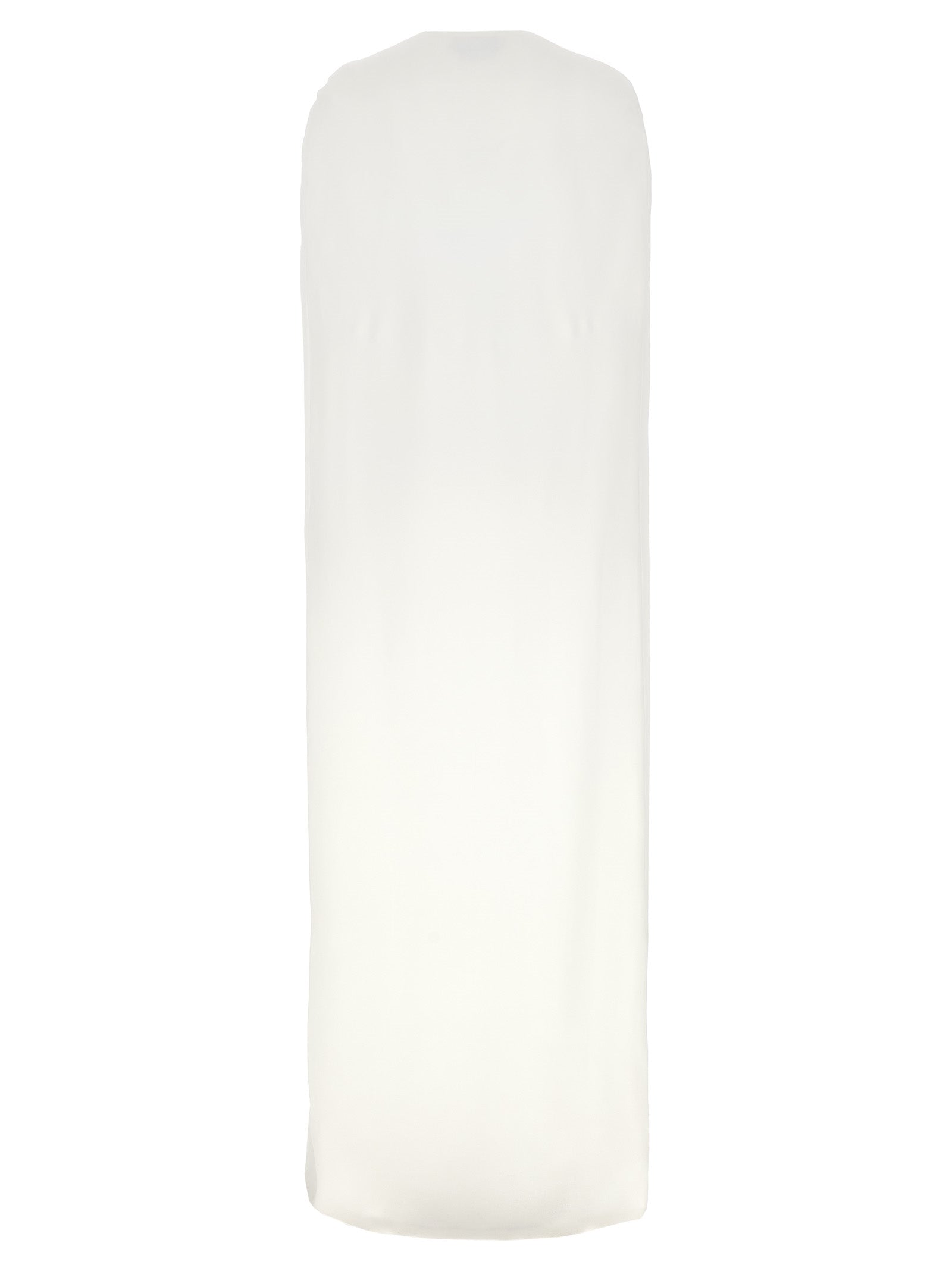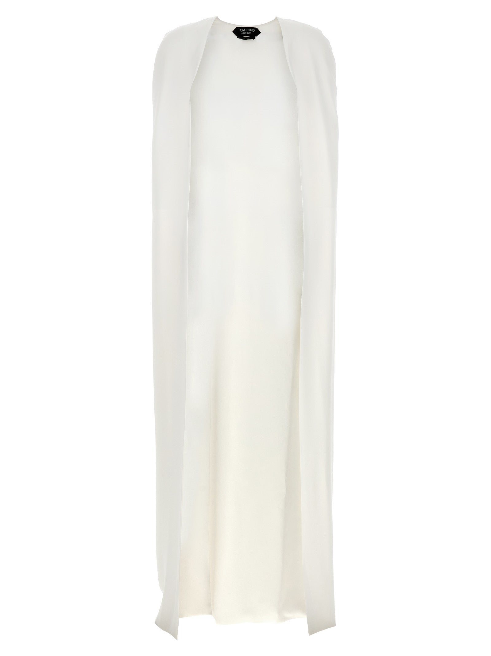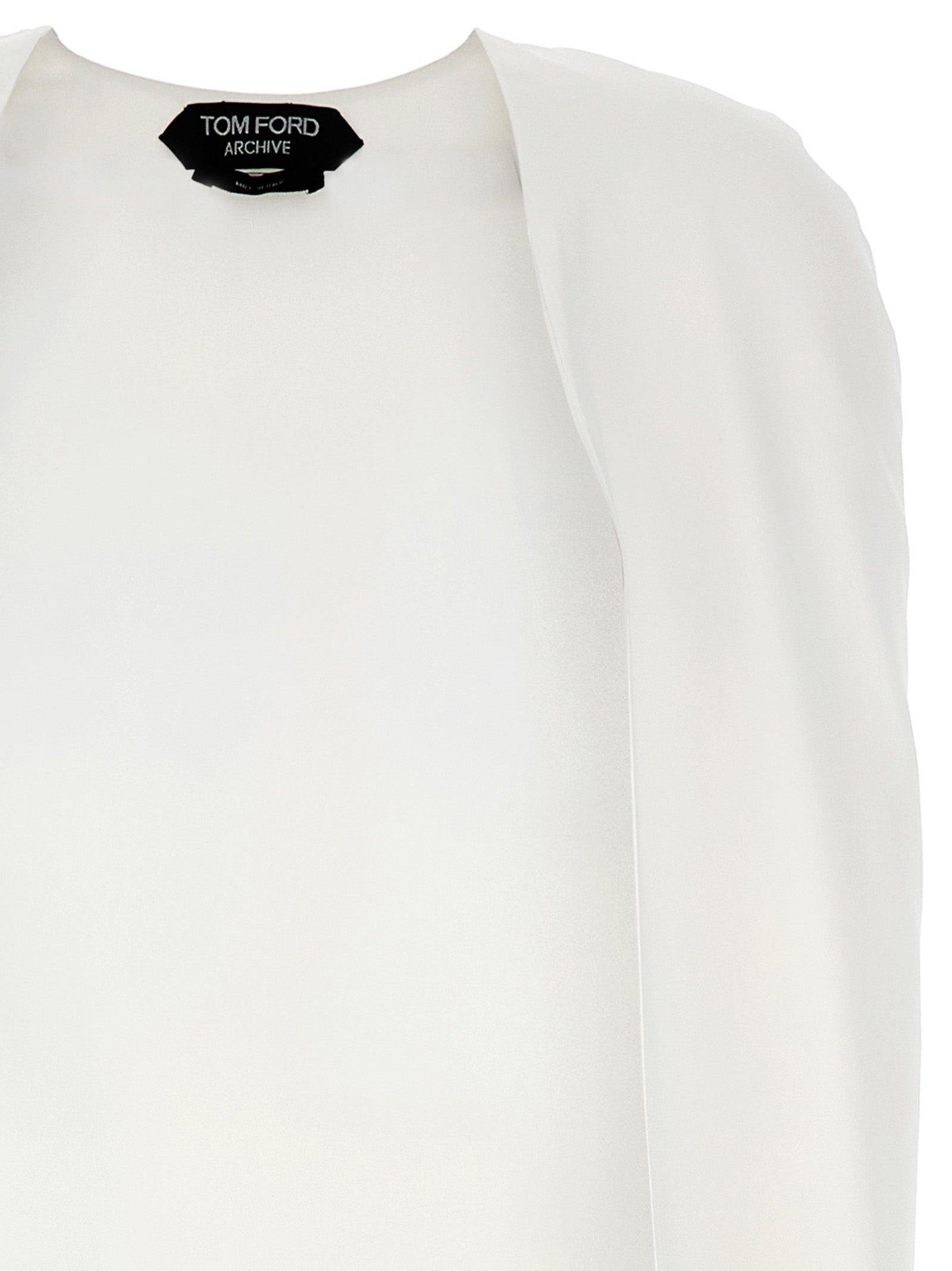 Silk georgette evening cape with front opening. Possibility to be attached to the dress through hooks.