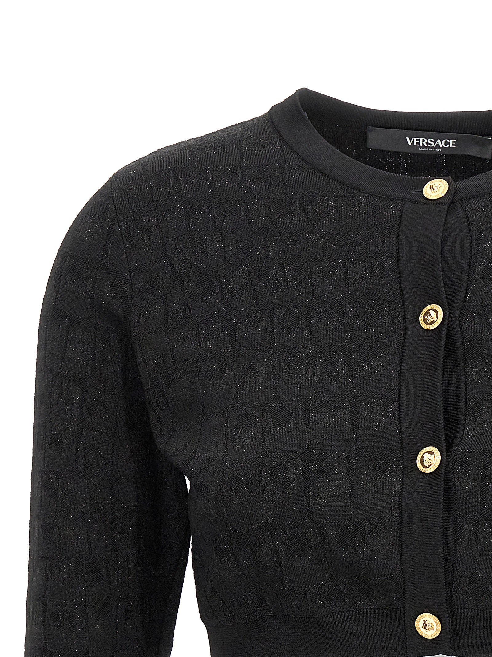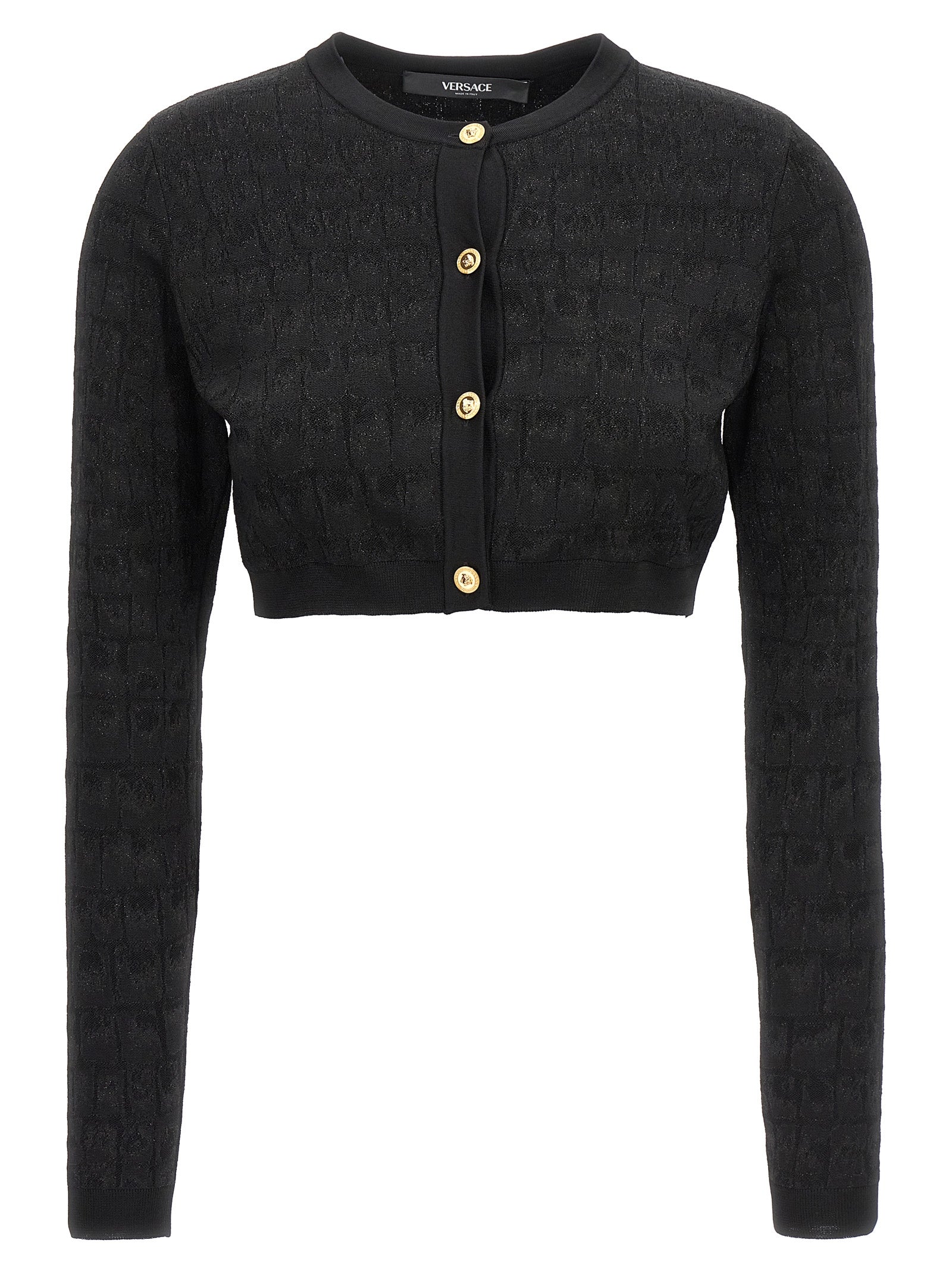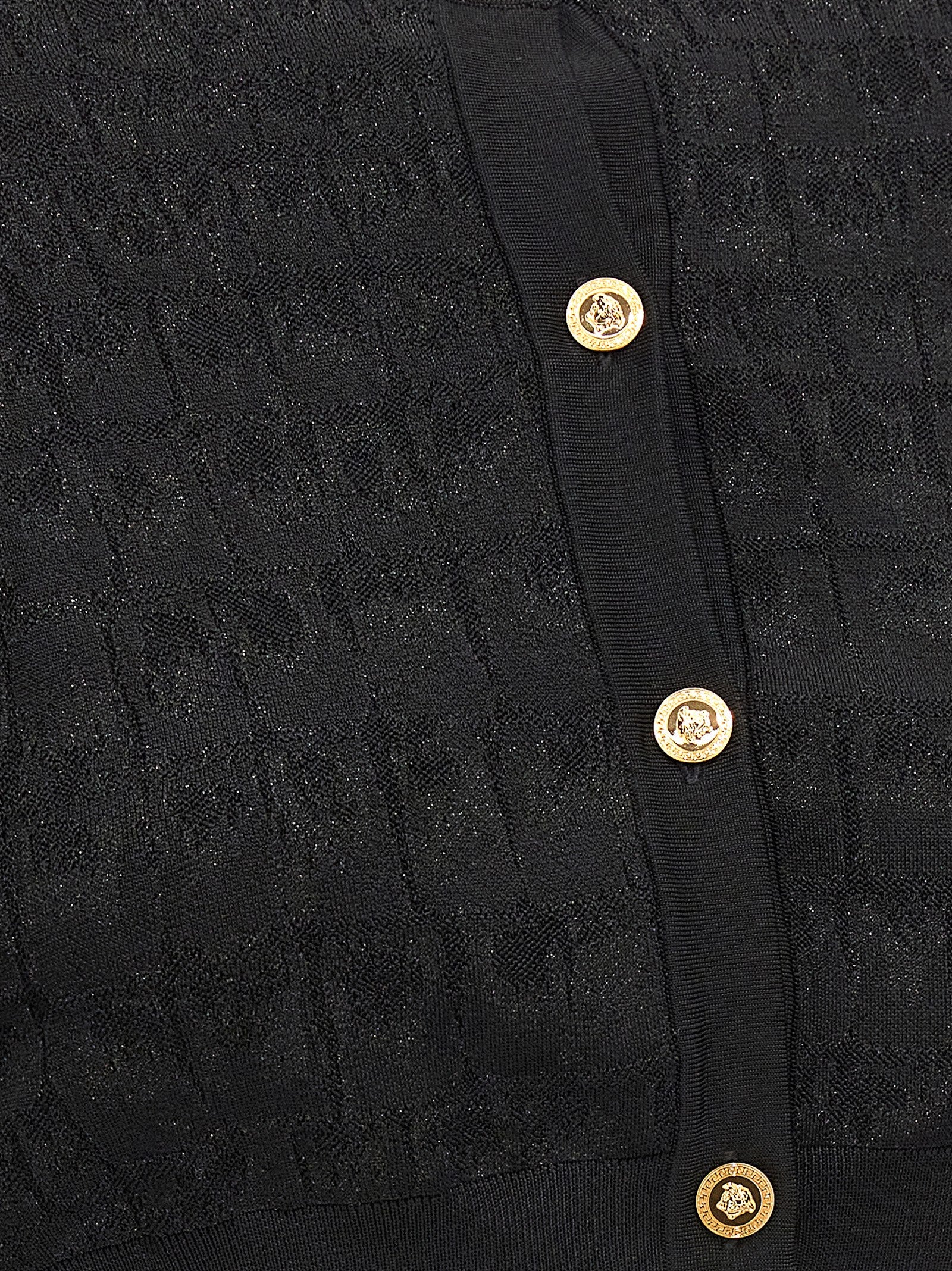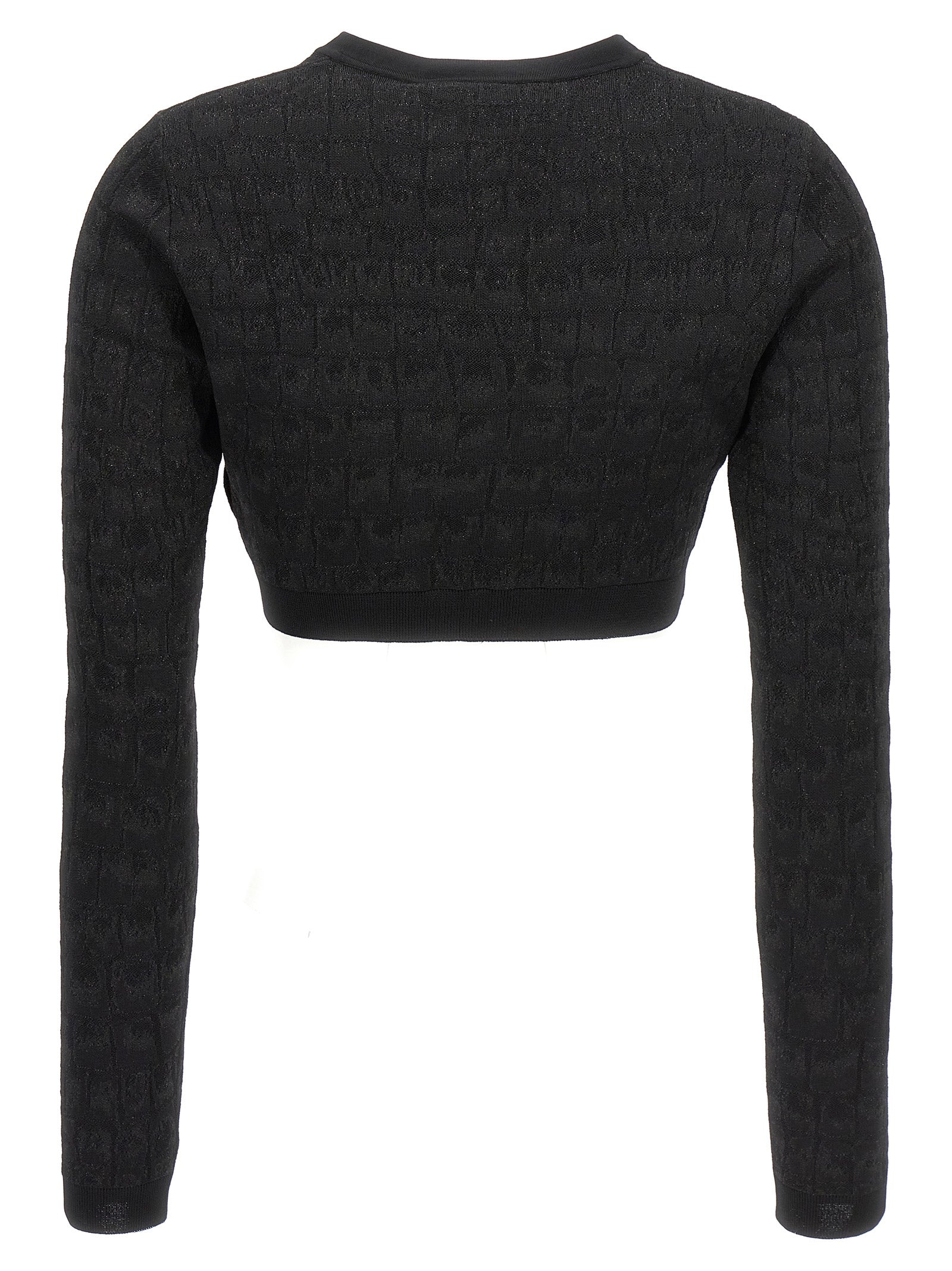 Short cardigan in viscose blend knit with crocodile jacquard pattern.