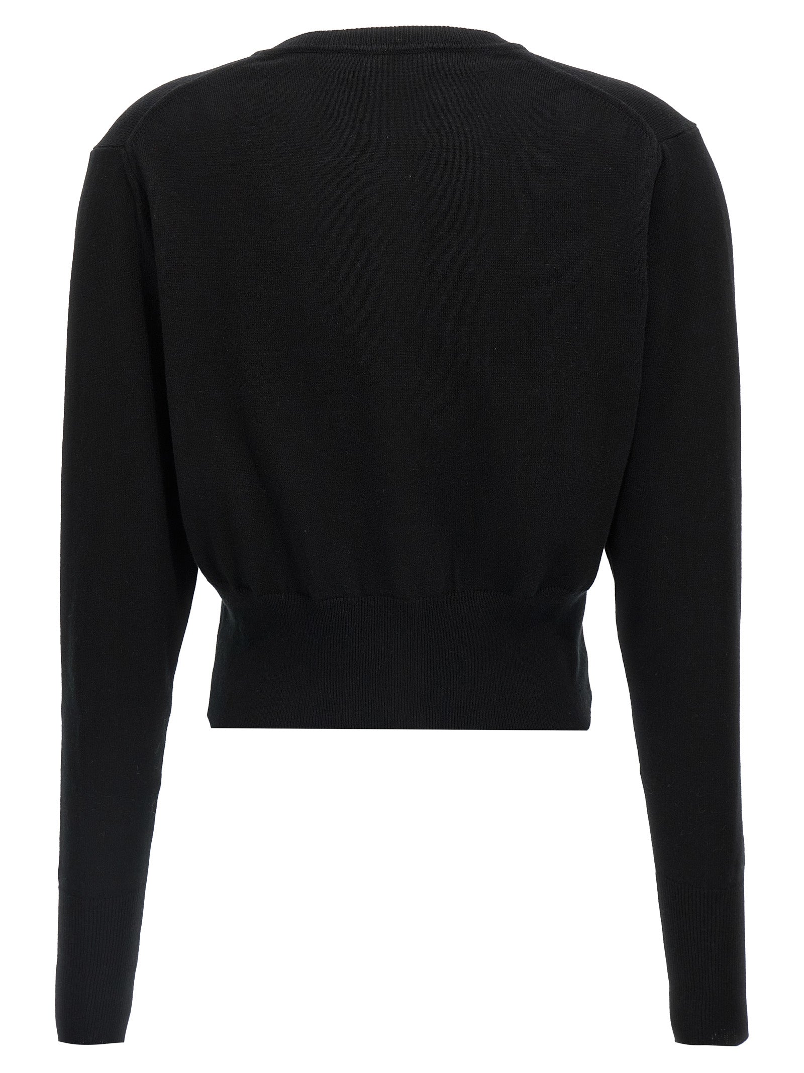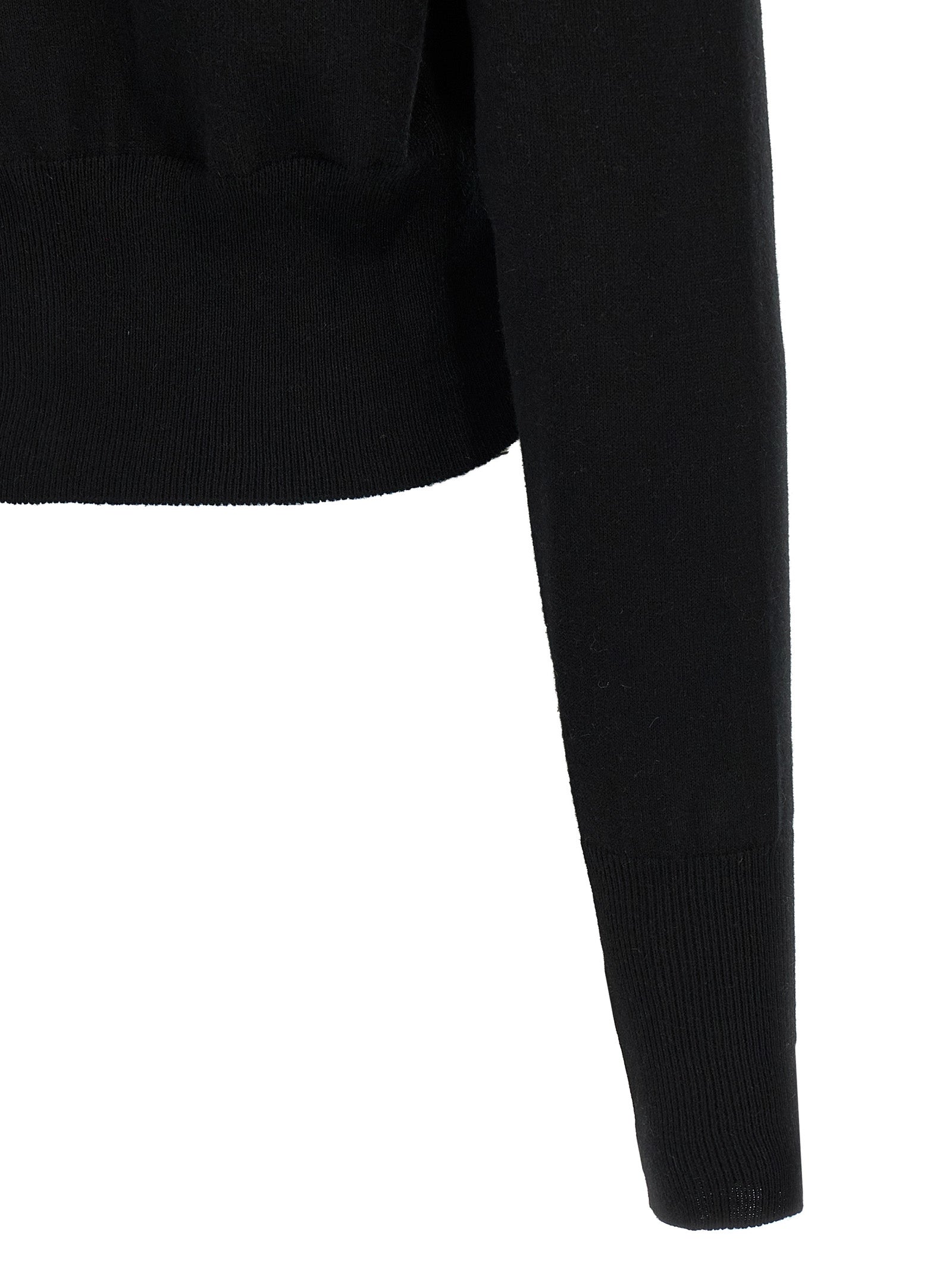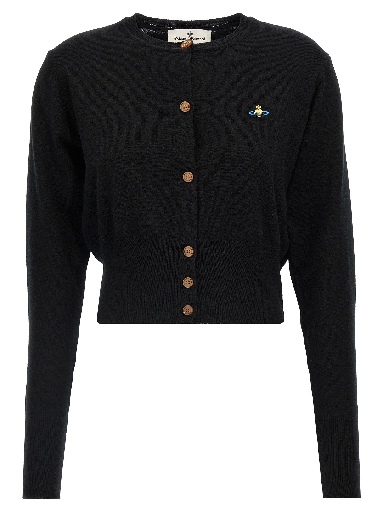'Bea' cotton and cashmere blend cardigan with logo embroidery and front button closure, crop model, long cuffed sleeves.