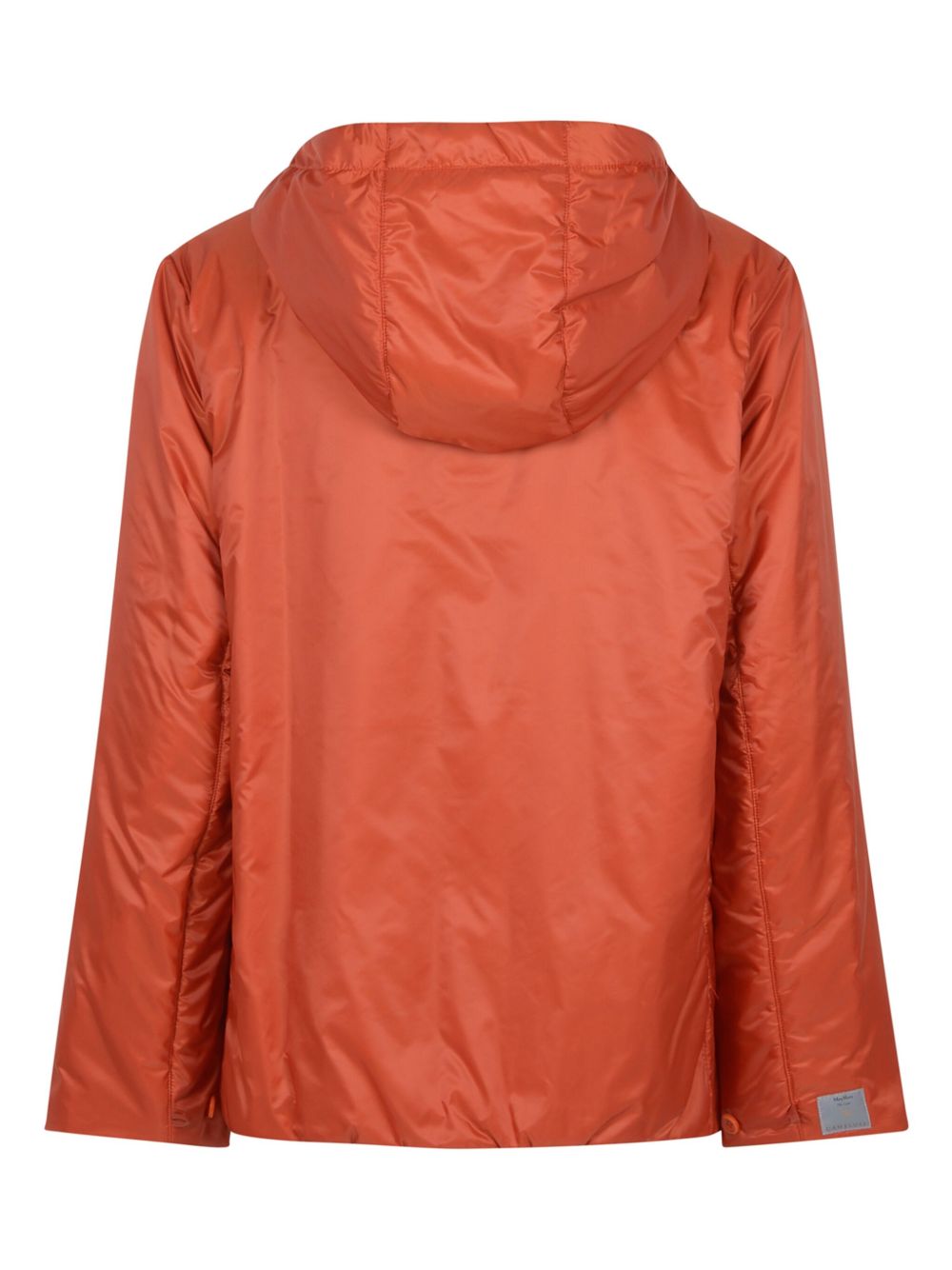 orange front zip fastening drawstring hood two side slit pockets long sleeves