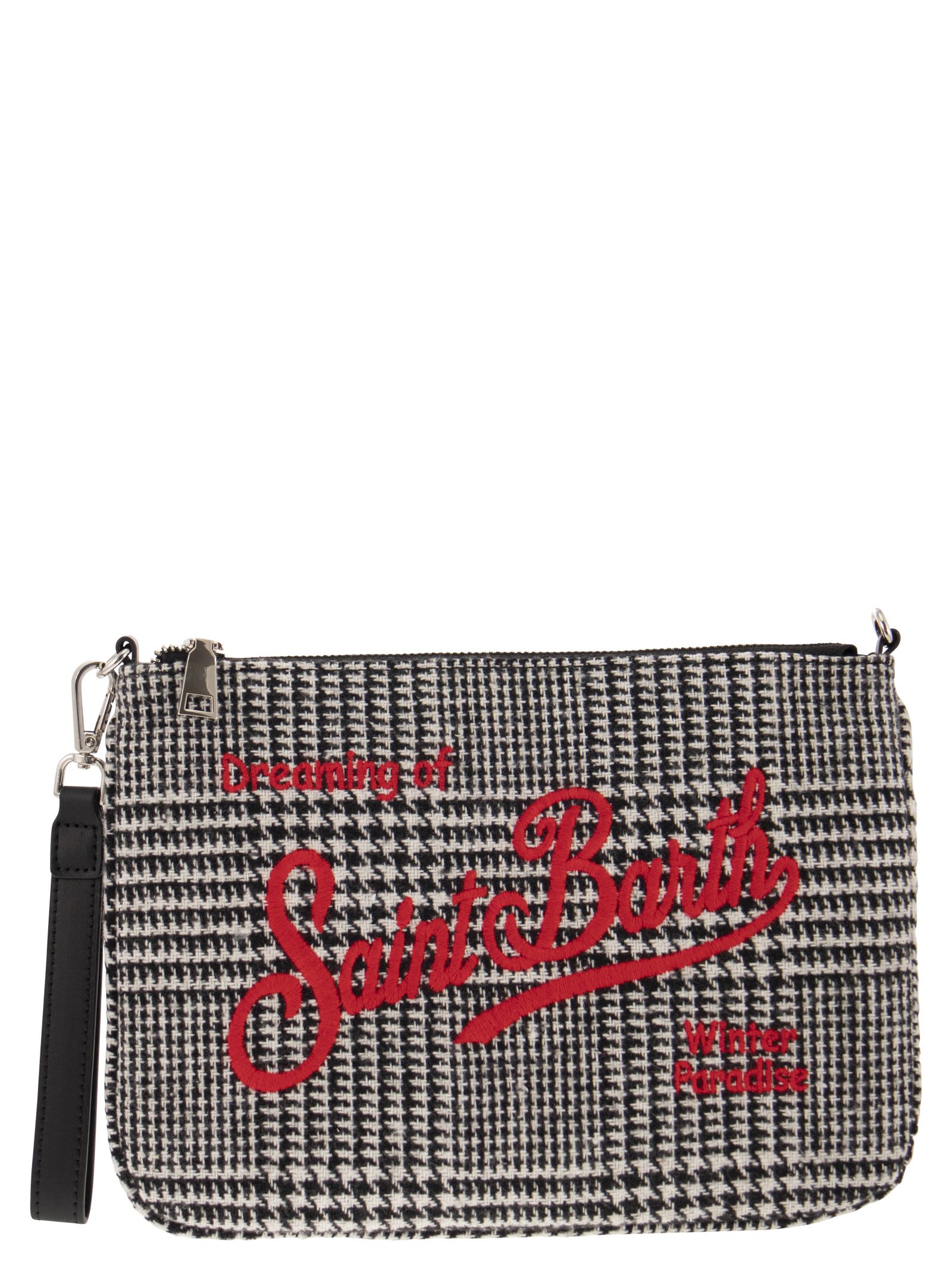 Clutch bag in soft fabric with a Prince of Wales pattern, a must-have for the winter season. It is small and practical thanks to the zip fastening and the lace to put on your wrist to carry it with you at all times. You can also wear it over the shoulder for added convenience. - Saint Barth logo - Wrist strap - Shoulder strap DESIGNER ID: PAR0009 00210E