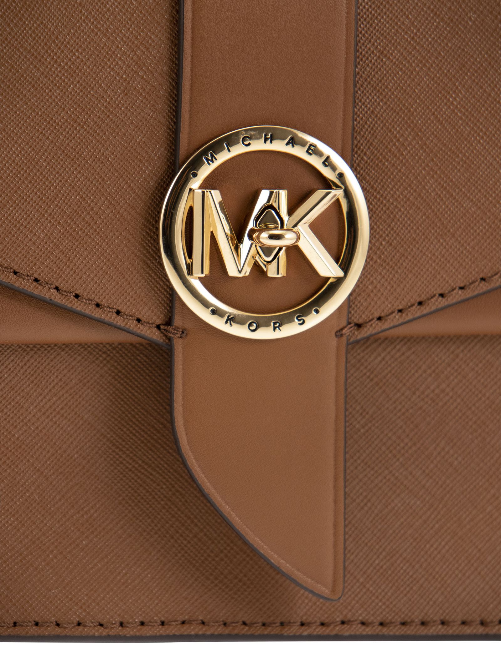 Ideal for any occasion, the Greenwich Saffiano leather shoulder bag will complete your looks with a touch of elegance. The structured silhouette is enriched with a sleek twist-lock closure and an adjustable gold-tone chain strap, while the interior pockets are perfect for storing your phone, card slots and keys. - Gold-tone metal details - Exterior details: front and back pouch pocket - Interior details: back pouch pocket, 3 credit card slots - Swivel closure DESIGNER ID: 32S1GGRC0L 230