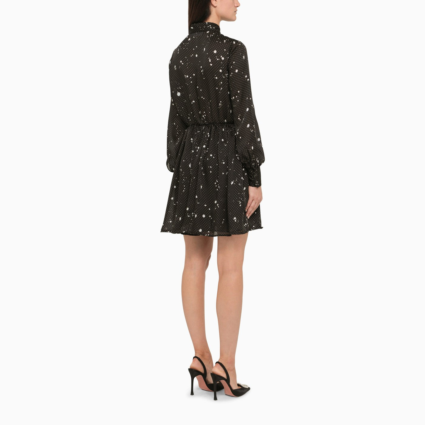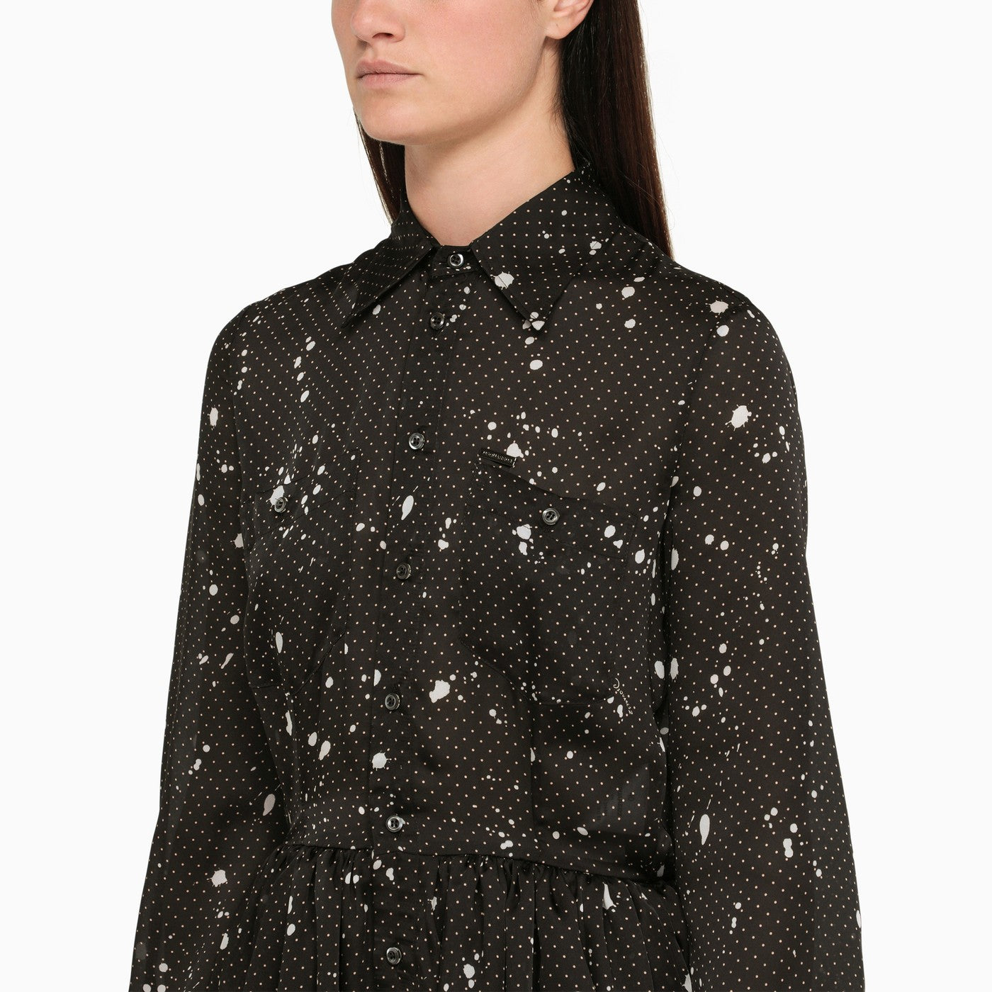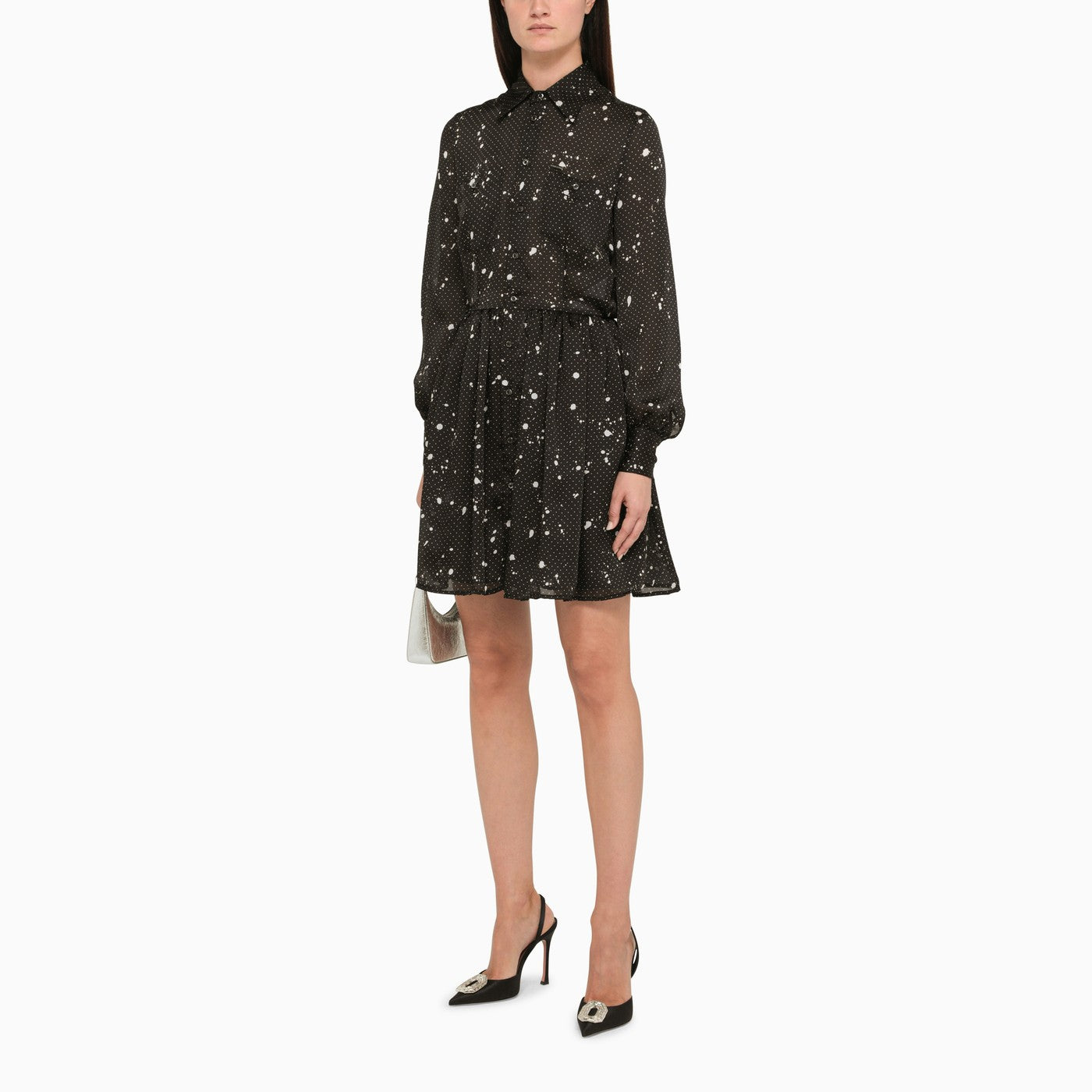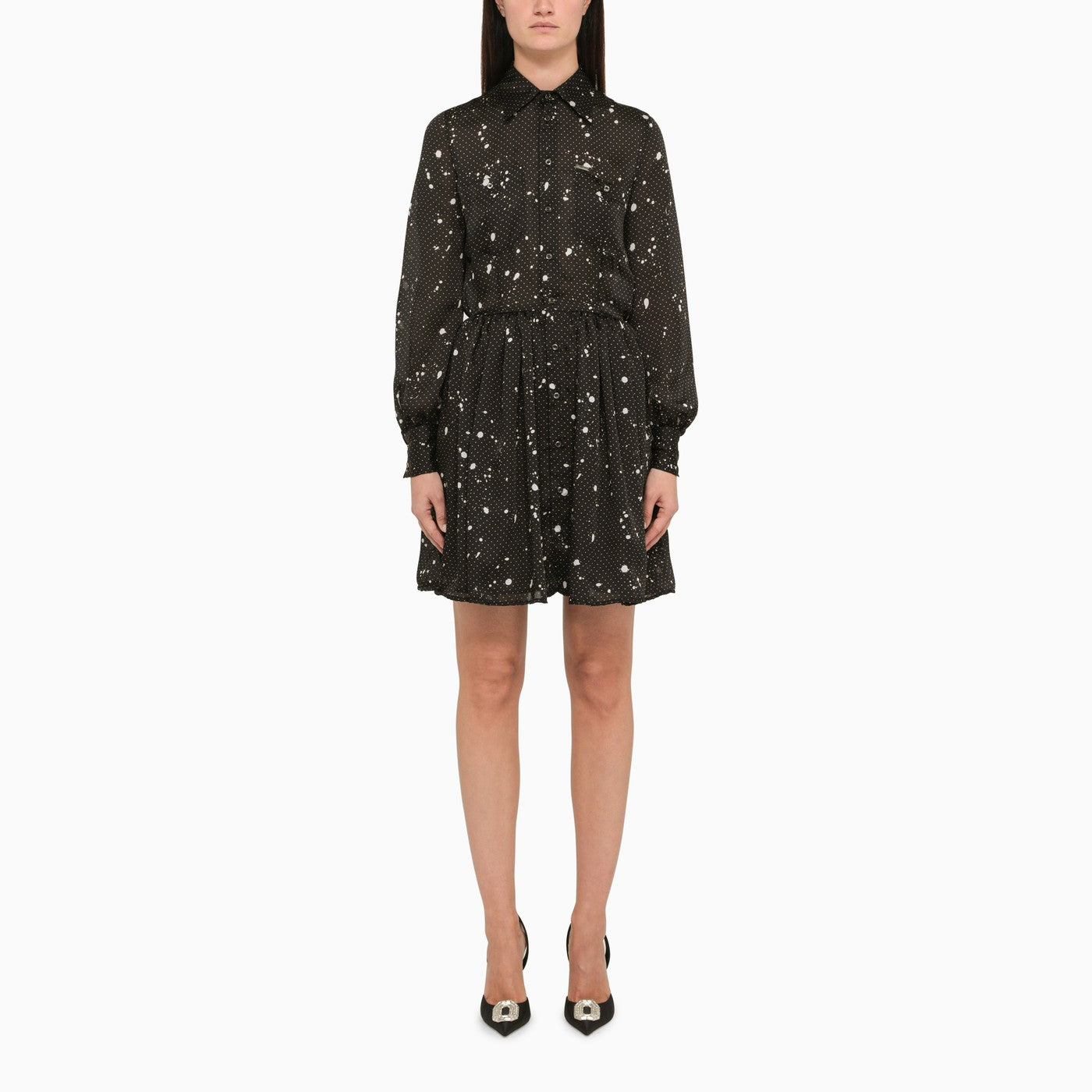 Black all-over print short dress from Dsquared2 featuring a shirt-style collar, long sleeves, decorative gathers and two chest pockets.