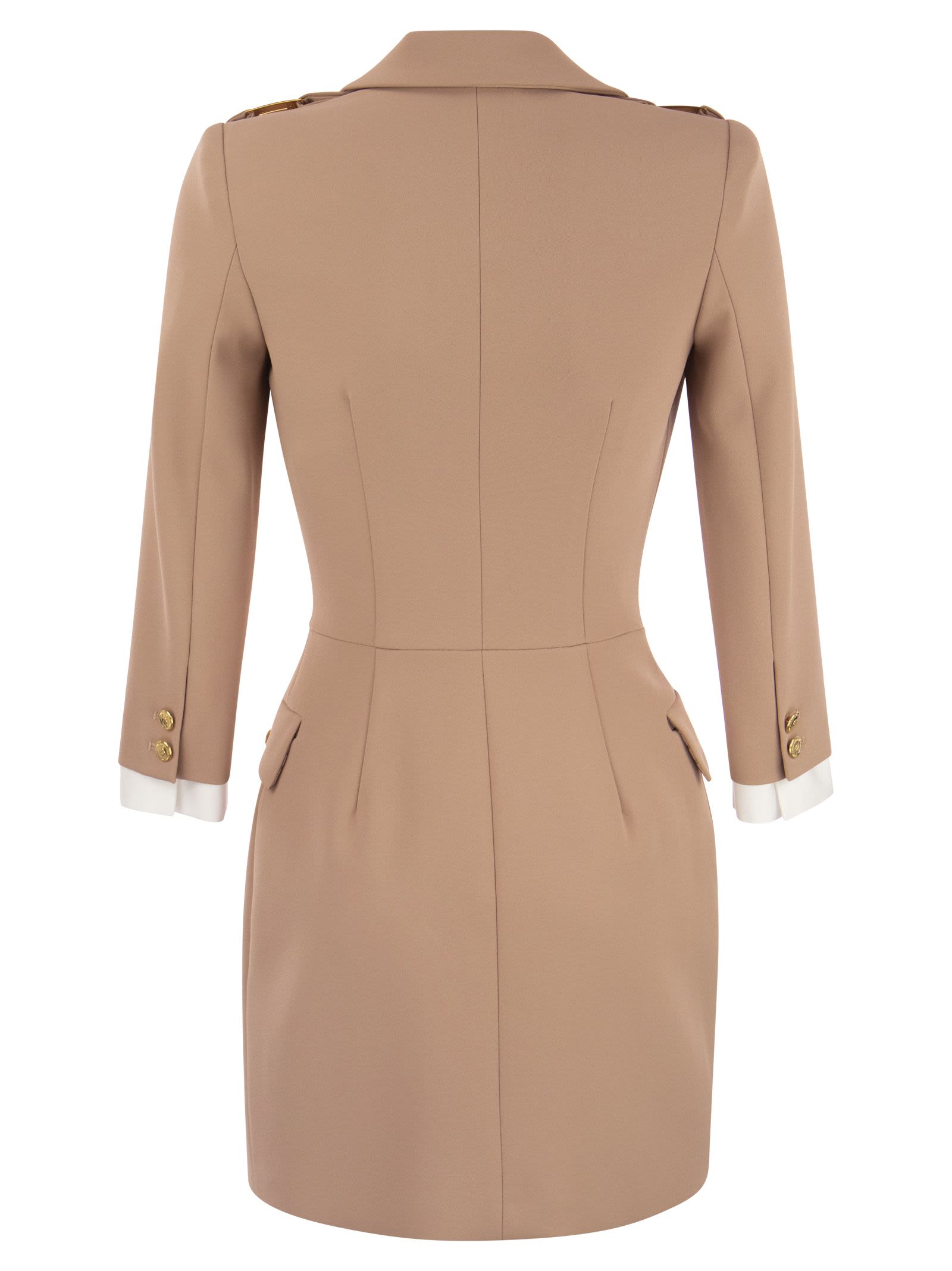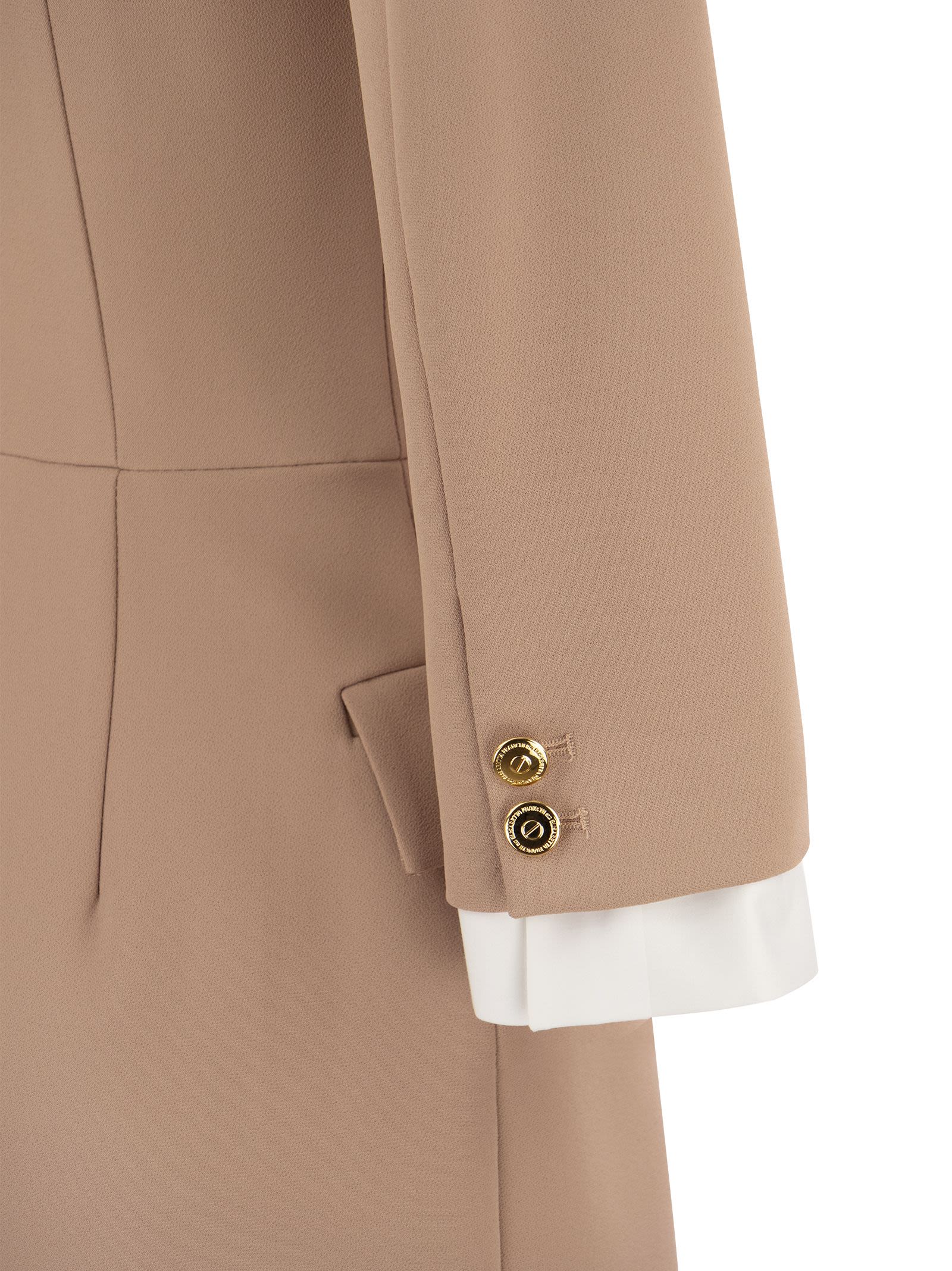Double stretch crepe robe-manteau with 3/4 length sleeves. Application of logo plaques and gold metal buttons. - Satin lining - Gold metal buttons and accessory DESIGNER ID: AB38436E2 283