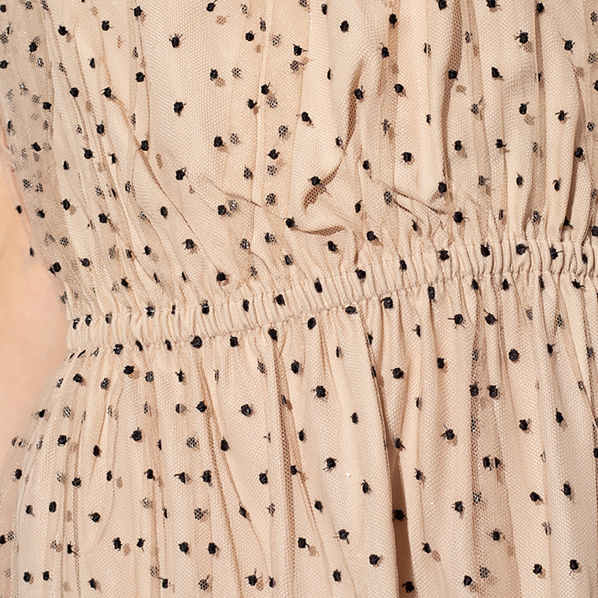 - Composition: 40% Polyamide 10% Polyester 50% Viscose - Elasticated waist - Hand wash - Black polka detail - Asymmetric neck - Ruffle trims - Made in Italy -
