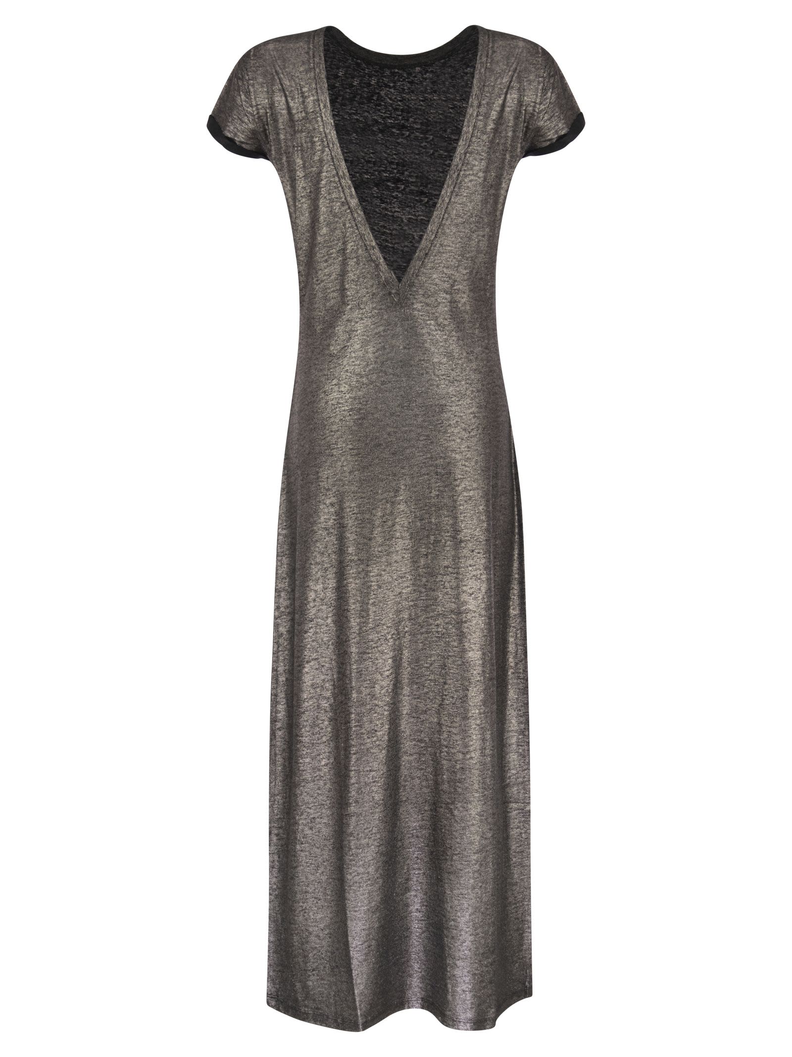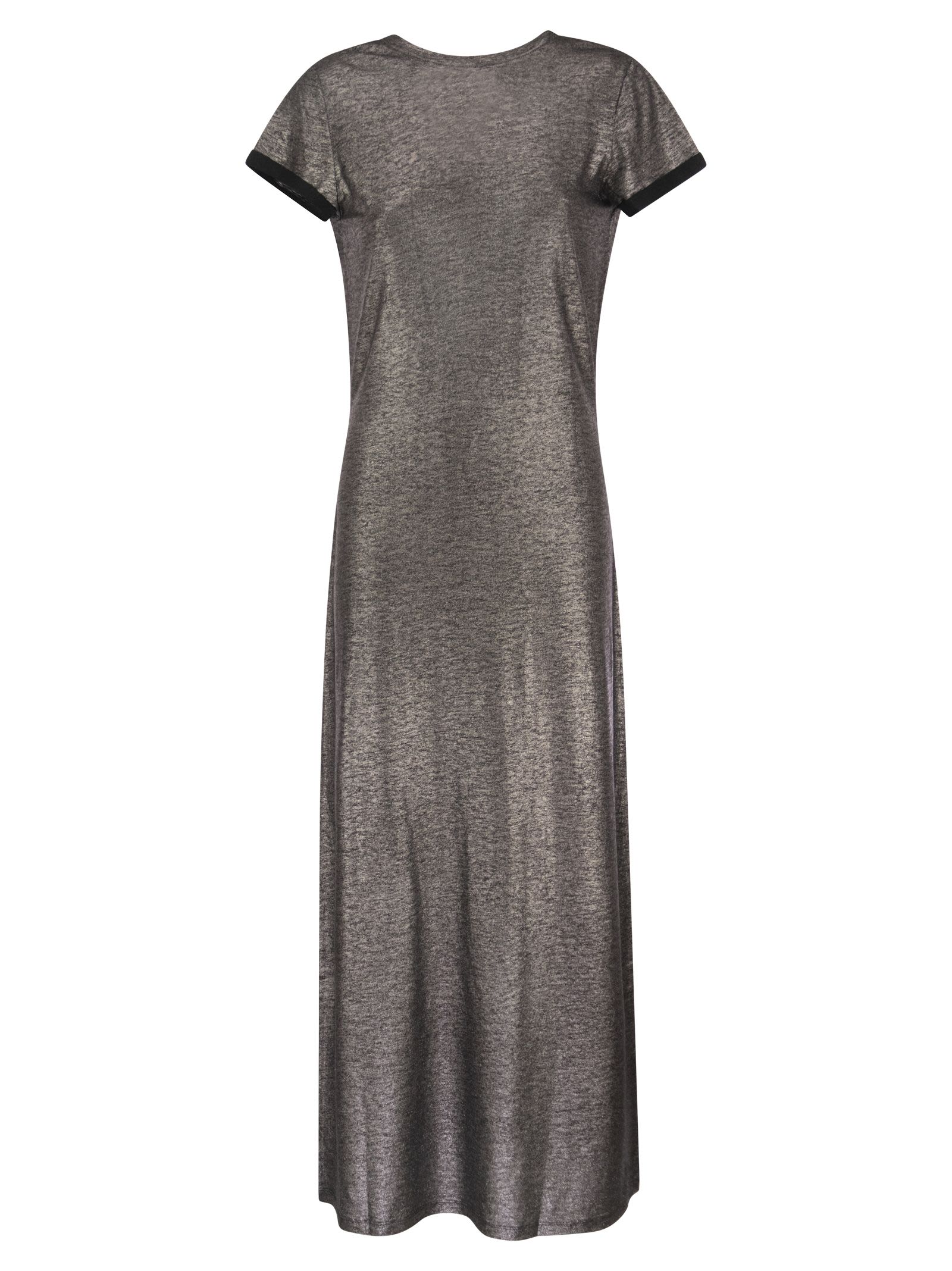 Dress with boat neckline, short sleeves and deep V-neck at the back. Regular fit: a versatile and feminine garment with a simple and elegant shape. The linen and elastane composition makes this dress precious and comfortable, thanks also to the metallic finish. - Short sleeves - Bateau neckline - V-neck on the back - Regular fit DESIGNER ID: E23M062 FRO203 002