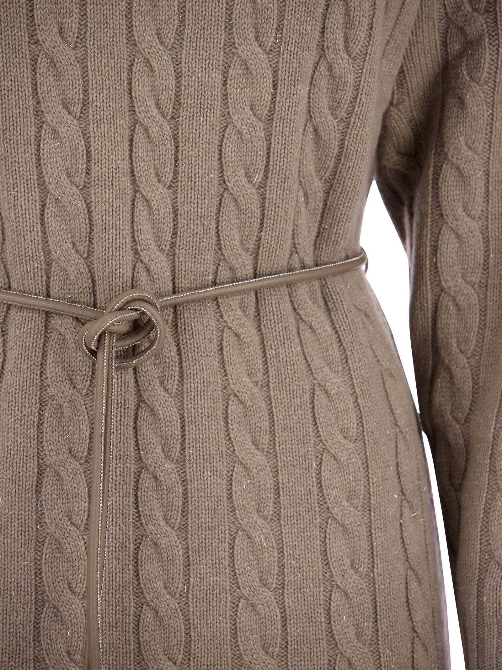 This versatile and warm knit dress from Peserico is ideal for both weekends and days at the office. Made from a blend of wool, silk and cashmere, it has a high collar and a matching leather belt, embellished with metallic fibres throughout for a precious effect. - Waist belt - High collar - Regular fit DESIGNER ID: S92216F07A 09095 648
