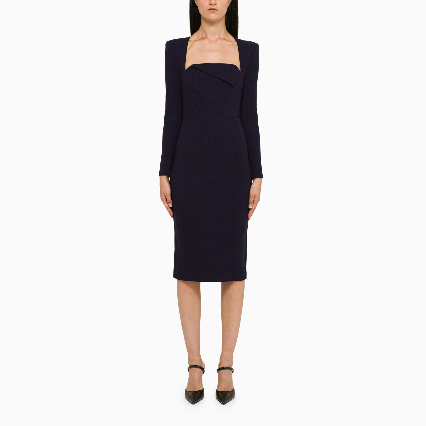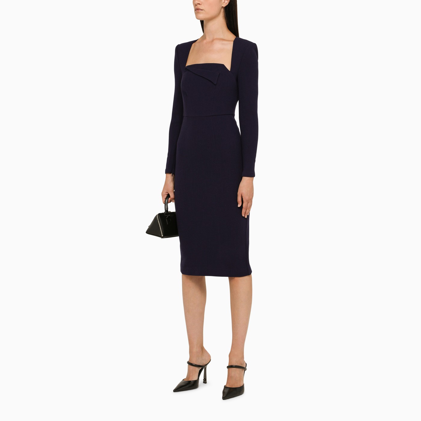 Roland Mouret's virgin wool sheath dress features a designer neckline, long sleeves and a back slit.