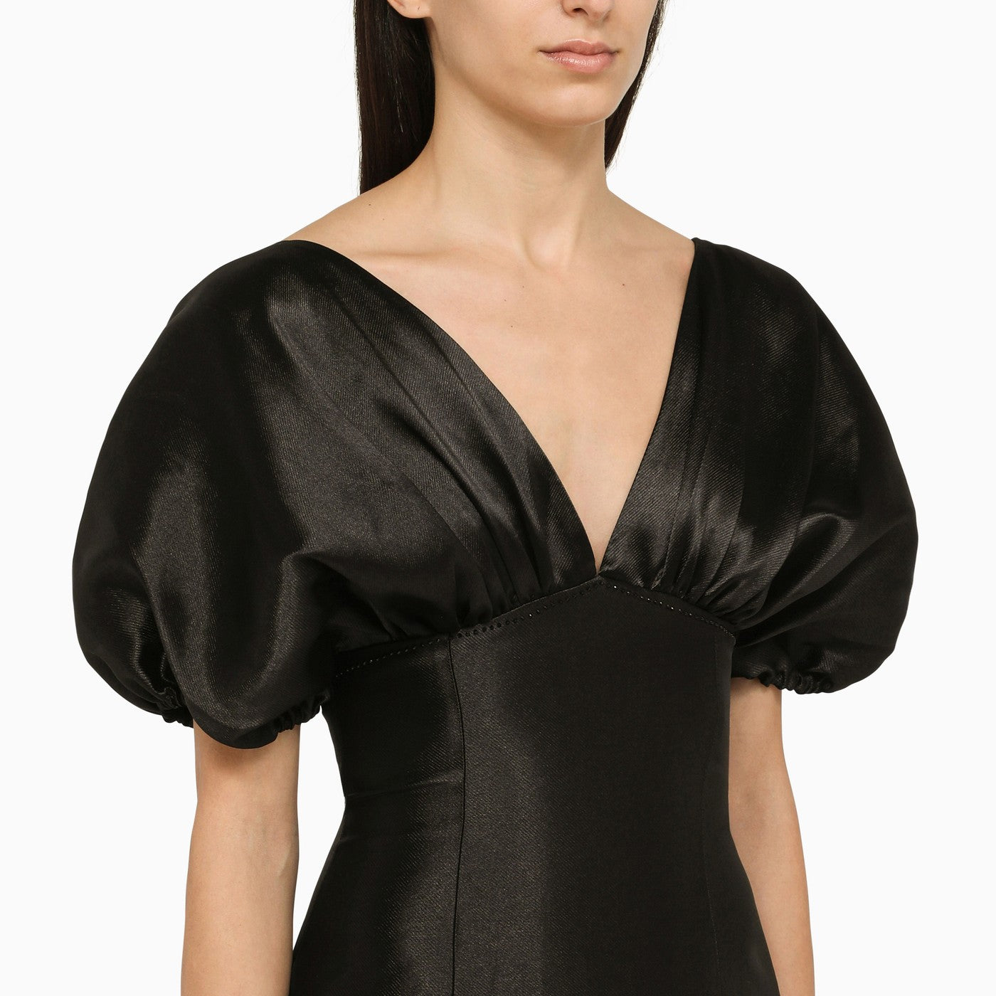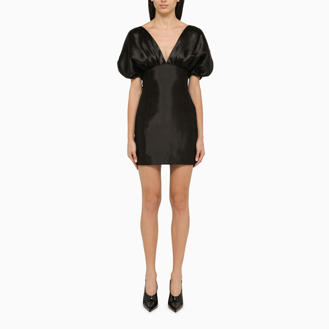 Short dress by Rotate in black recycled fabric, with short balloon sleeves, tight fit and V-neck.
