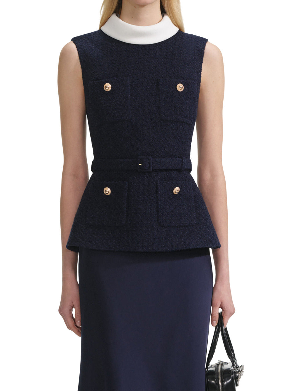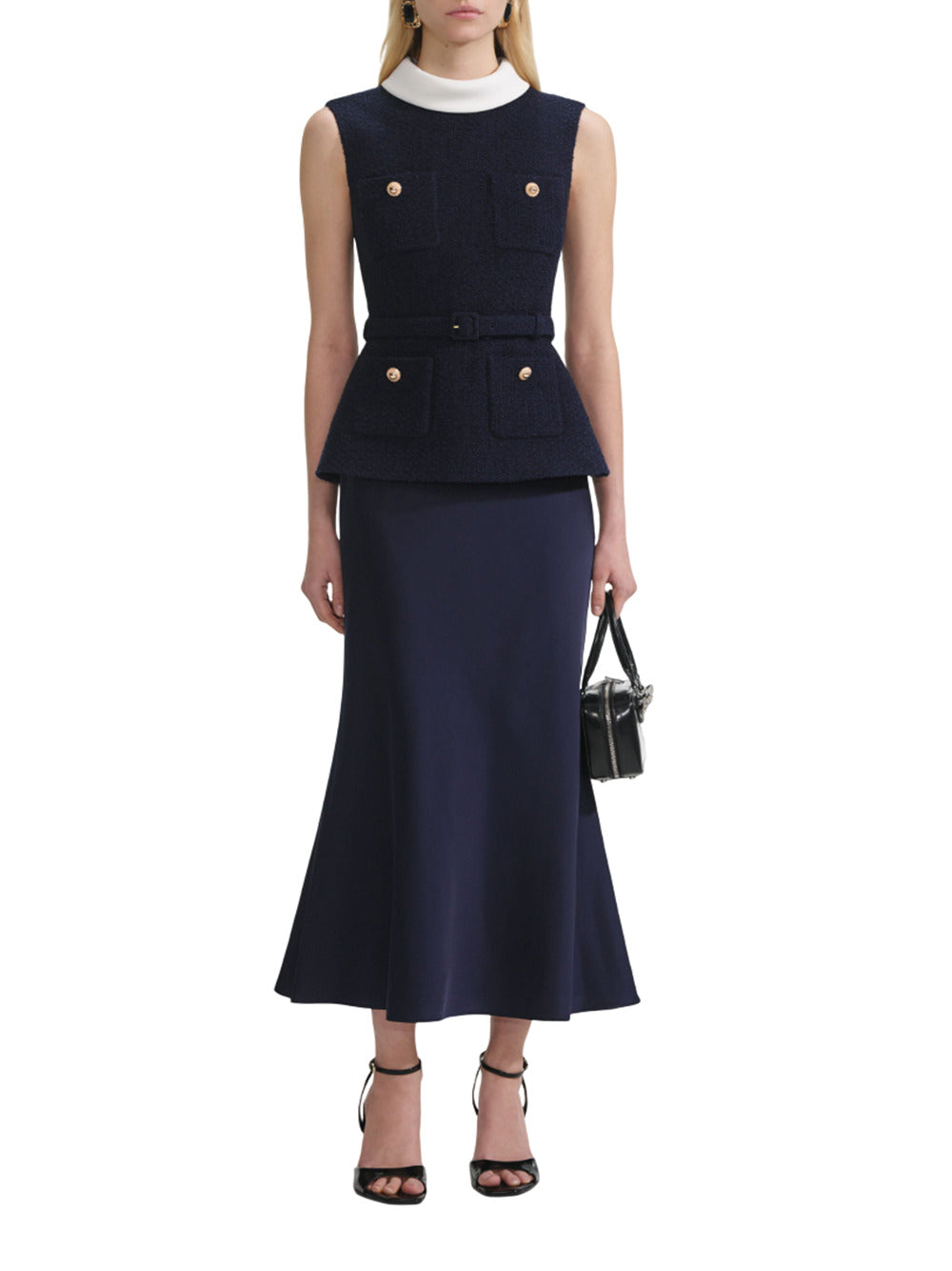 Self Portrait Navy Boucle Sleeveless Midi Dress