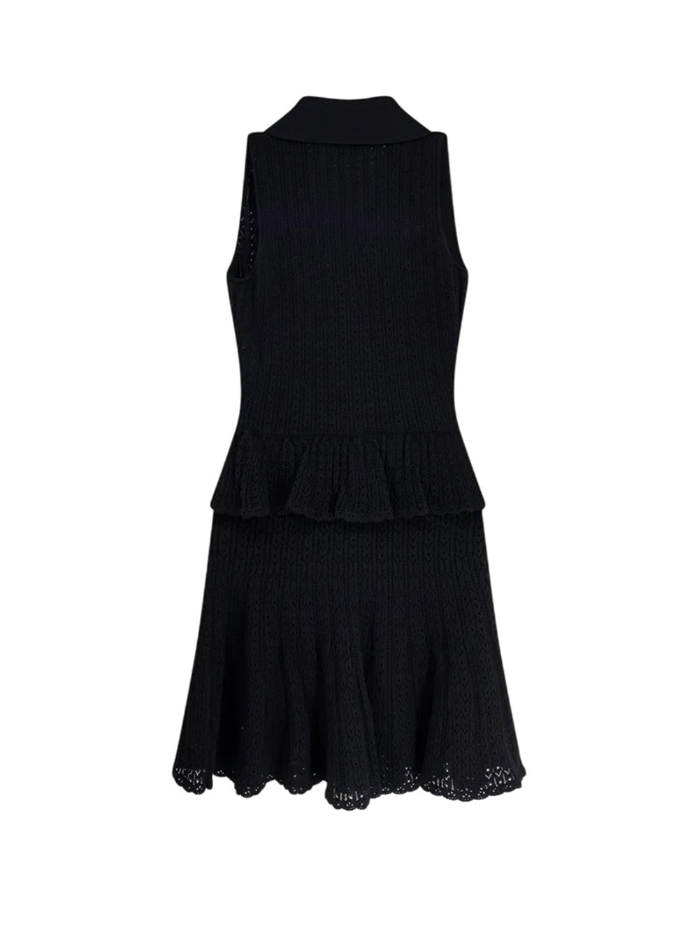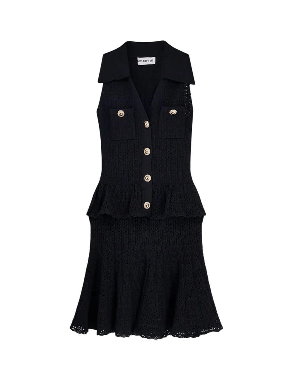 Self Portrait Short Dress In Openwork Knit With Jewel Buttons