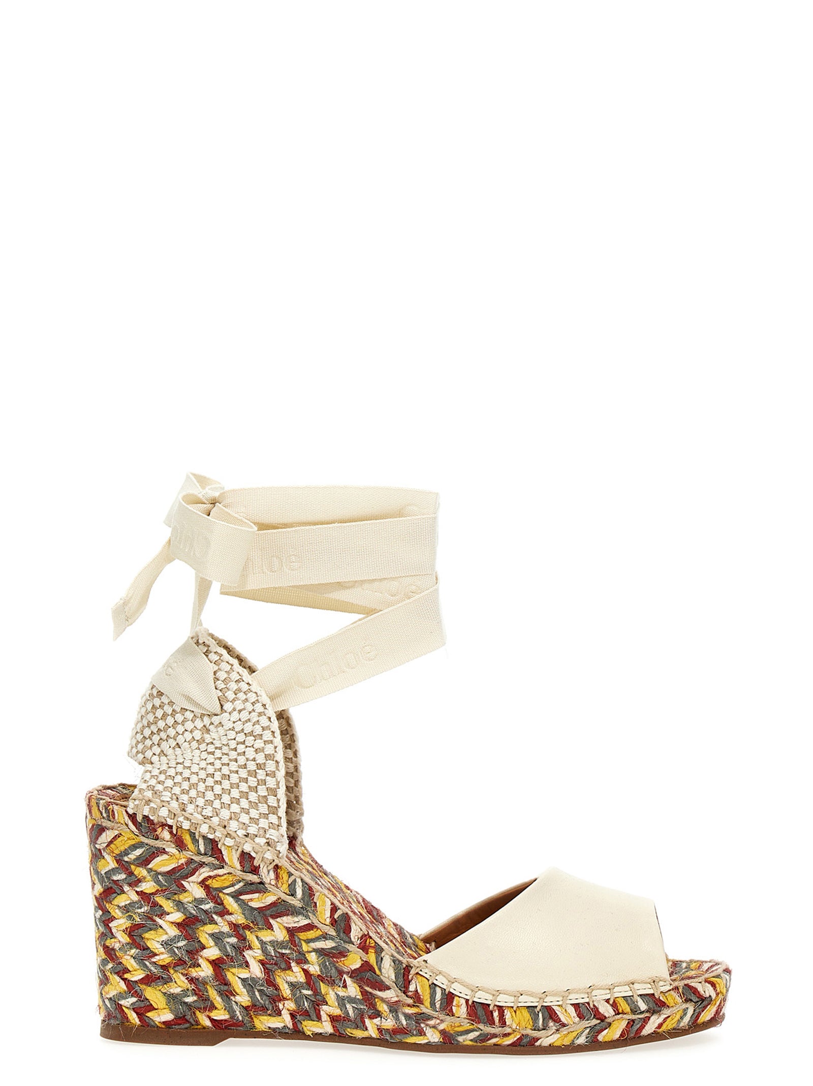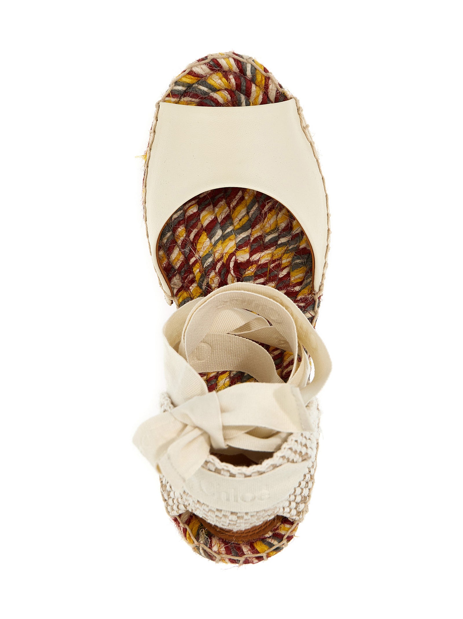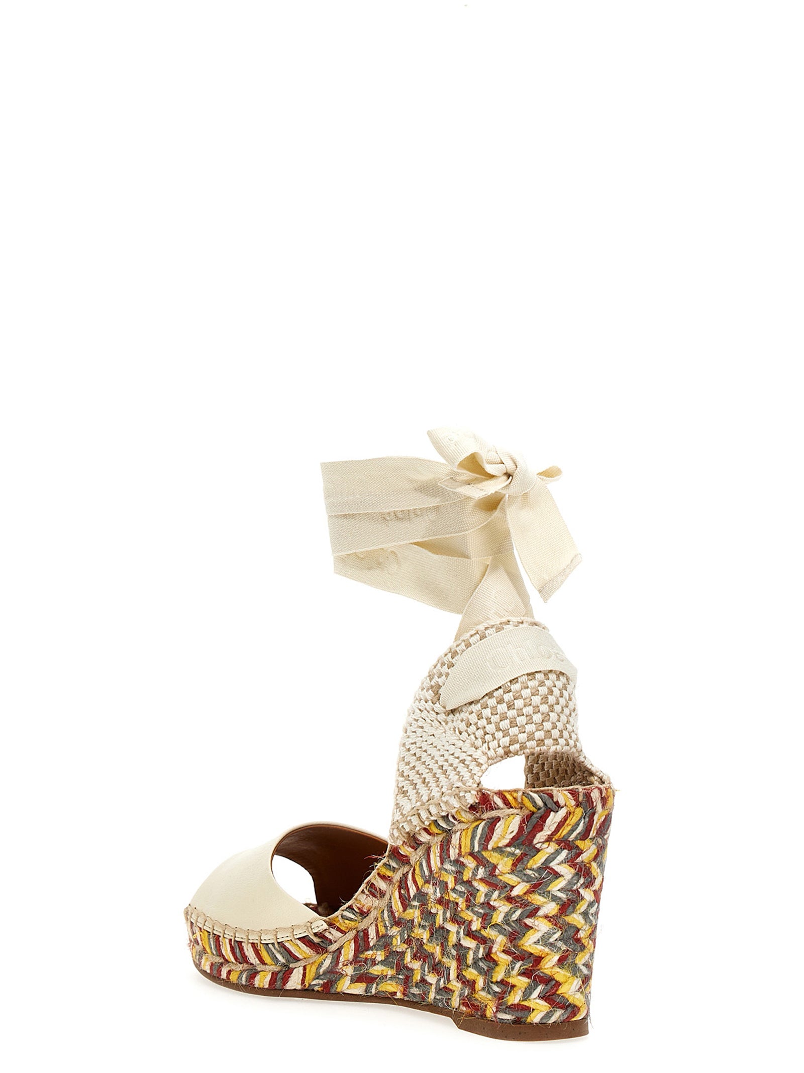 Zeppa 'Piia' in tessuto intrecciato e pelle, allacciatura intorno alla caviglia, sottopiede in corda, suola in gomma.