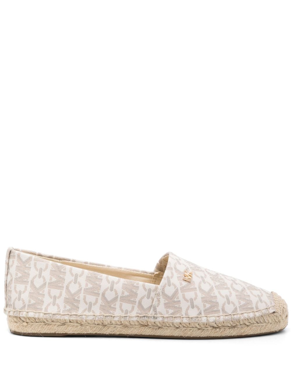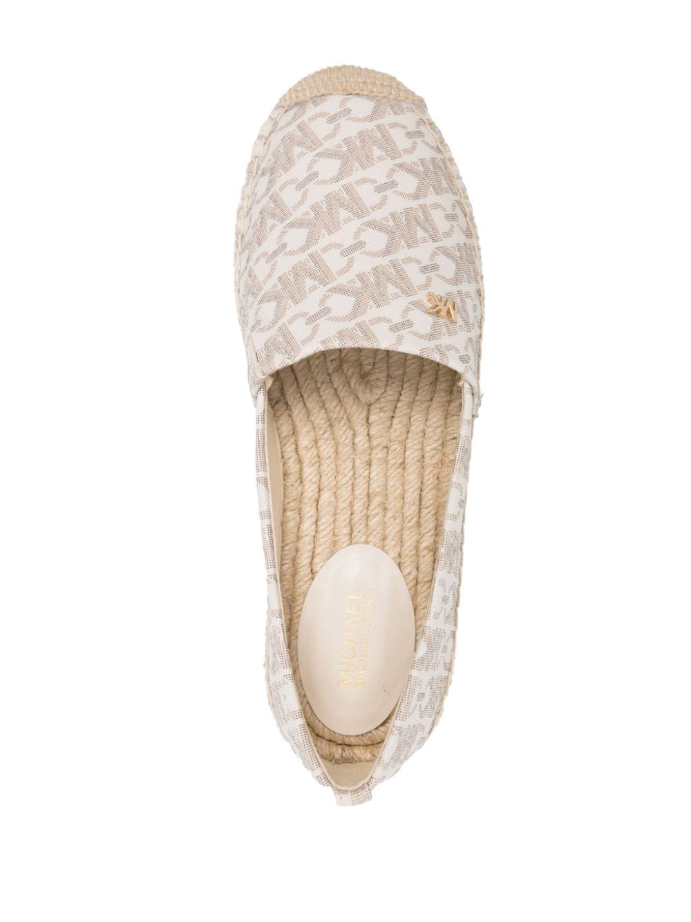 light beige/light brown grained texture Empire Signature Logo print round toe logo plaque slip-on style braided raffia sole branded insole