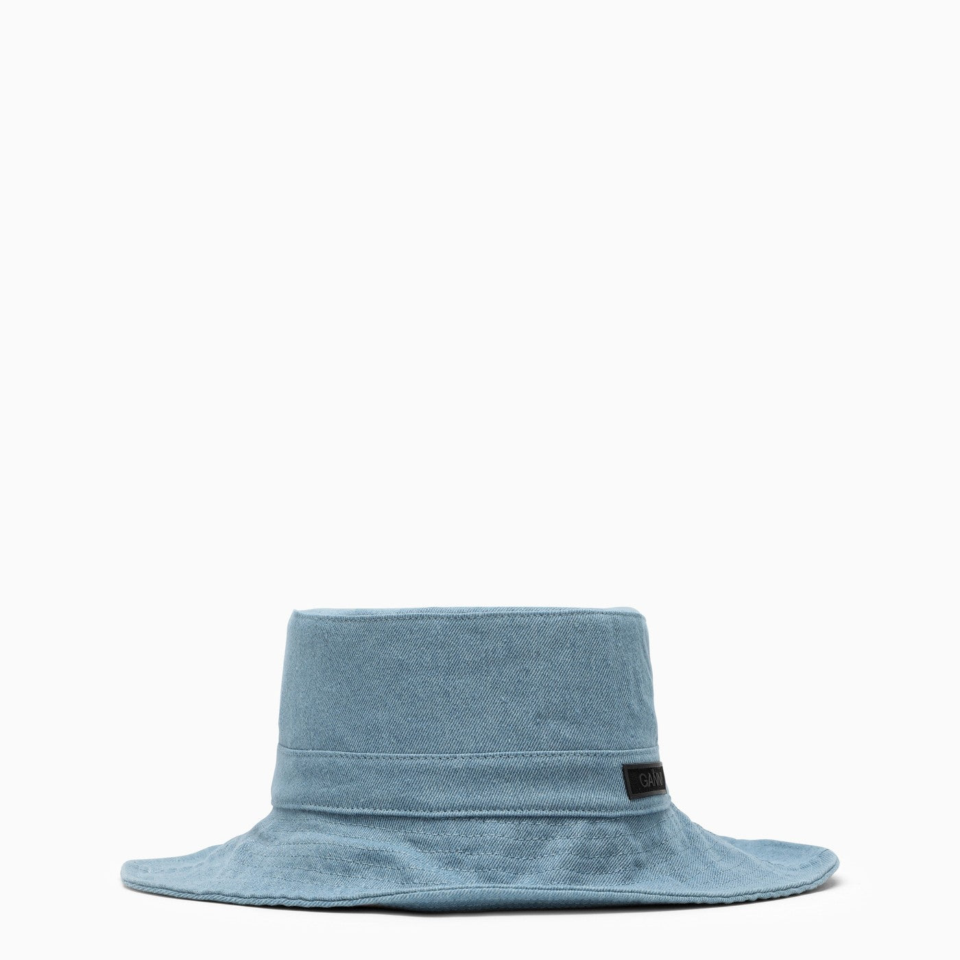 Light blue recycled cotton Ganni hat with contrasting stitching and small logo patch on the front.