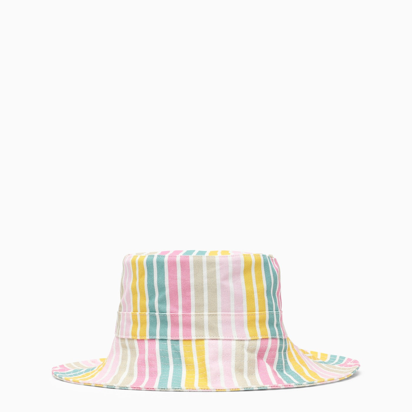 Multicoloured striped organic cotton Ganni hat with small logo patch on the front.