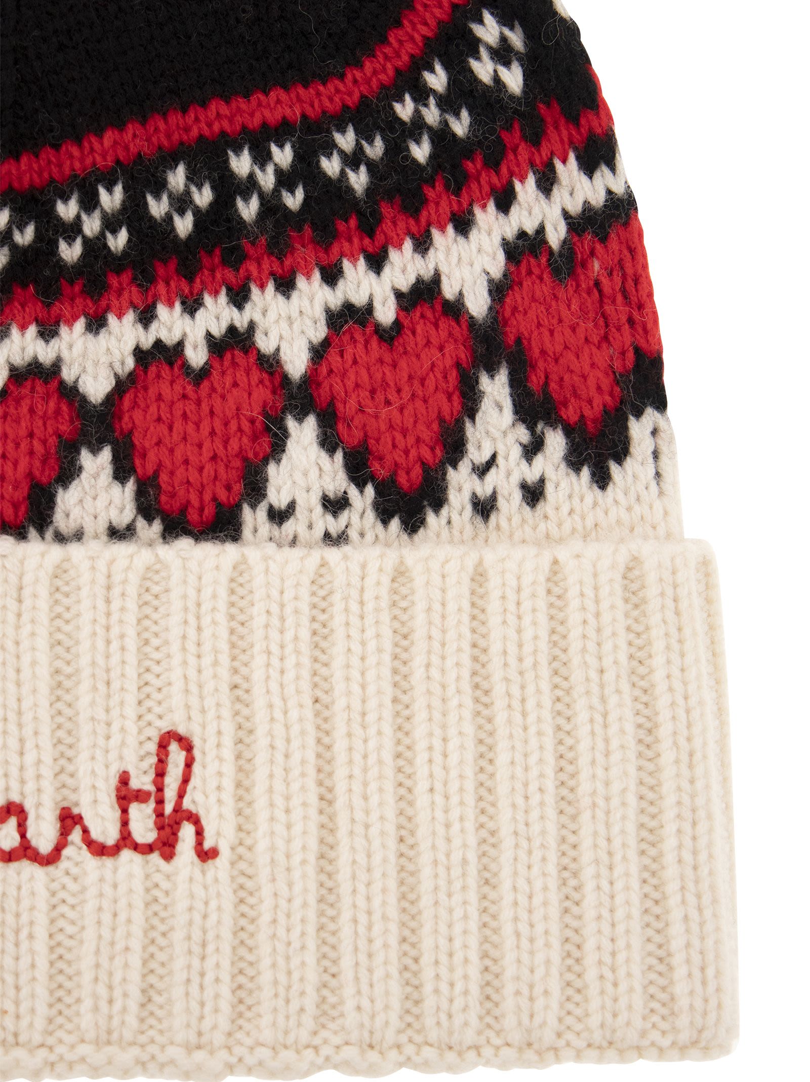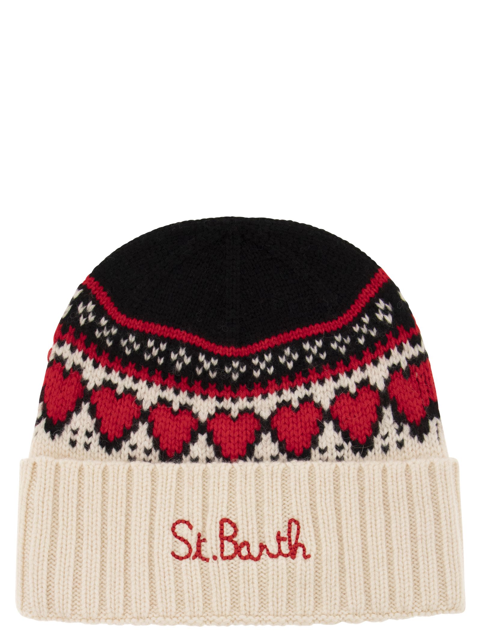 Cap with lapel and St. Barth embroidery on the front, featuring a Nordic jacquard pattern. Thanks to its wool and cashmere blend composition, it is soft and warm. - Nordic jacquard - St. Barth embroidery DESIGNER ID: WENG016 00185E