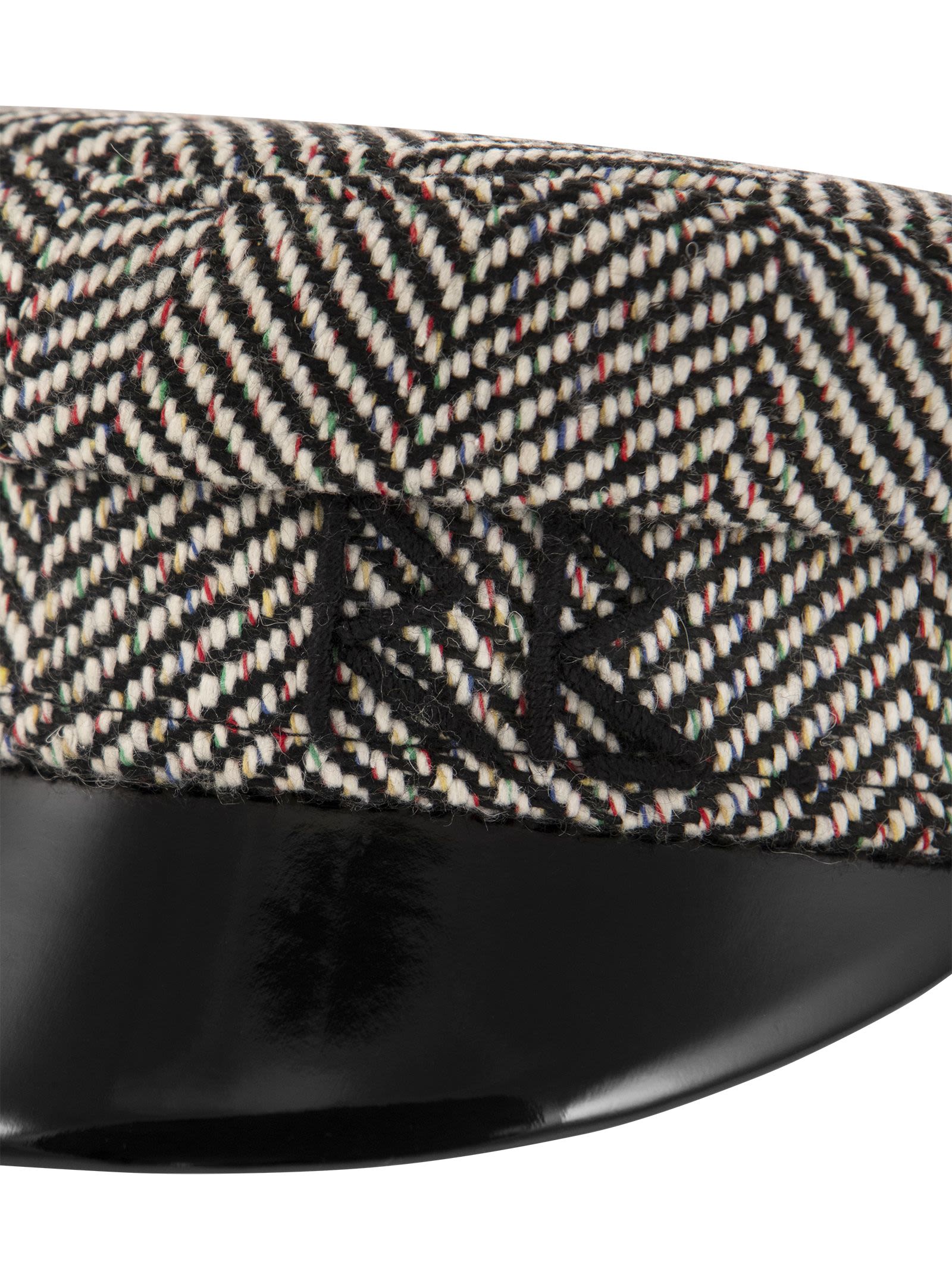 The Ruslan Baginskiy baker's cap is the first and most recognisable piece. The silhouette, inspired by the headgear of French train conductors, was developed to enhance every face shape and every look. Hand-embroidered with the RB initials and a cross. The shiny visor is another characteristic element of this style, adding more definition to the entire look. - Striped pattern - Embroidered RB initials - Shiny visor DESIGNER ID: KPC-WP-YO 033/040