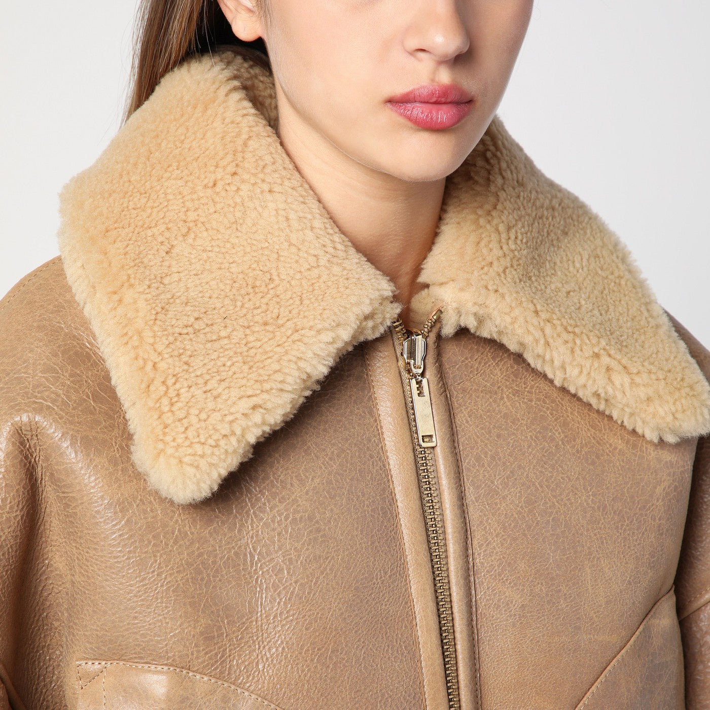 Beige lambskin sheepskin short shearling by Halfboy, features a zip fastening, a wide shearling collar, long sleeves and two side welt pockets.