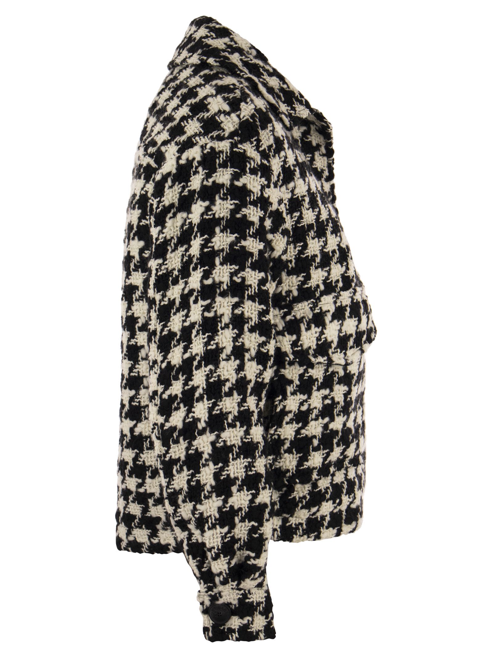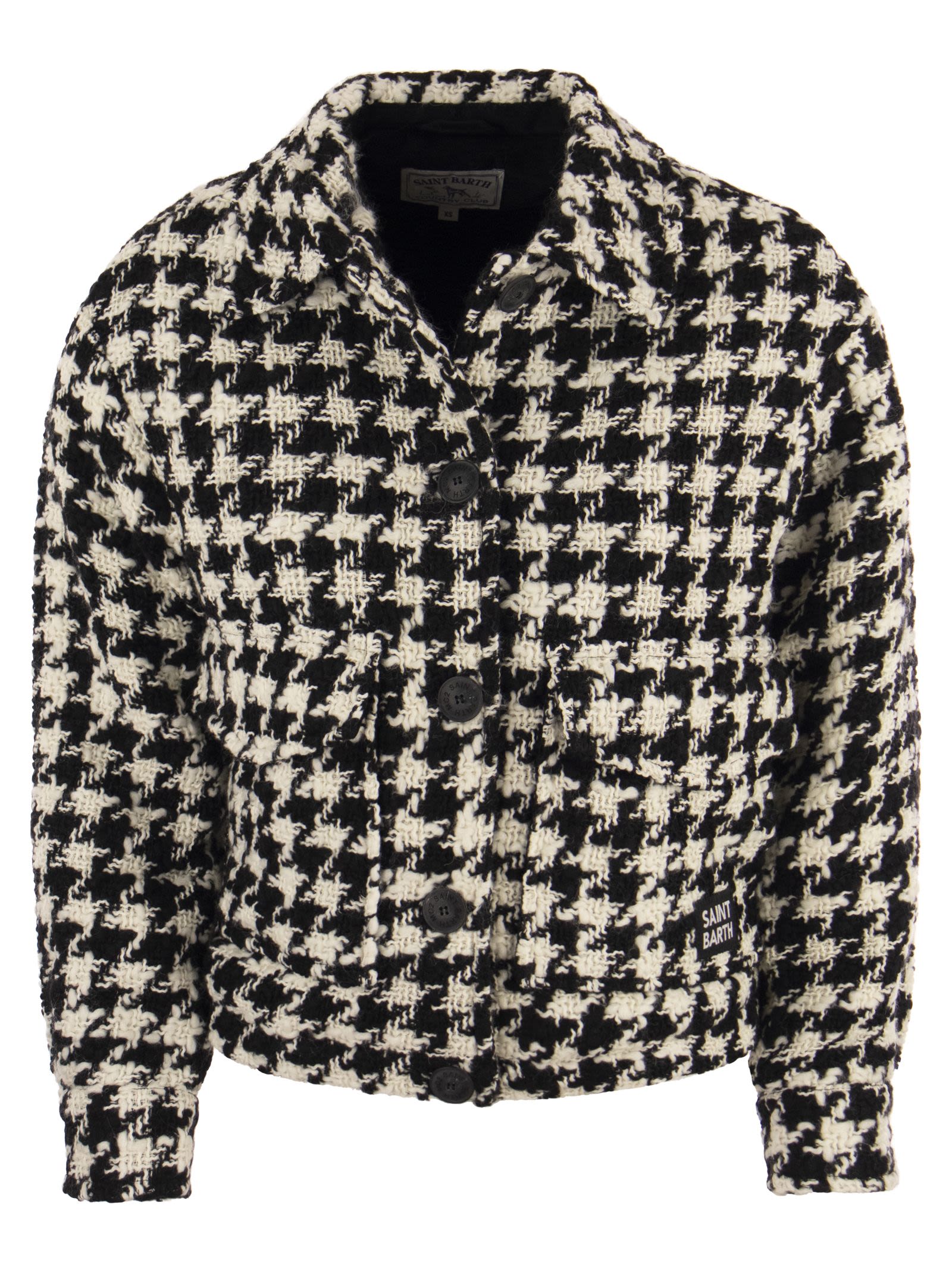 Women's short shirt cut jacket finished with pied de poul print. It is characterised by patch pockets on the chest, button fastening and regular fit. - Pied de poul print - Pockets on the front - Saint Barth logo on the bottom - Button fastening - Regular fit DESIGNER ID: BONNI001 00305E