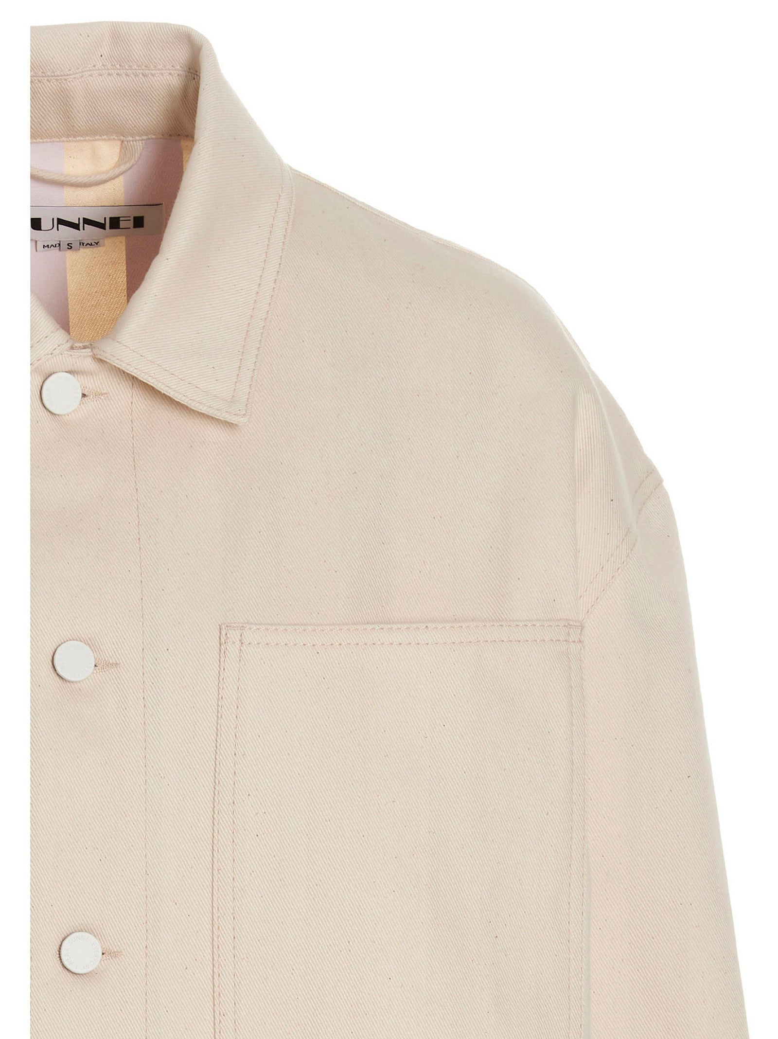'Belli Dentro’ denim cotton jacket with a button closure, maxi pockets, long sleeves, and inner striped print.