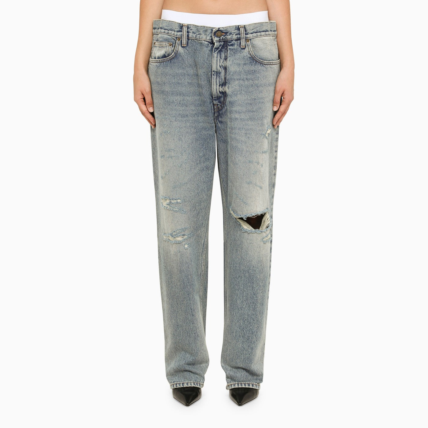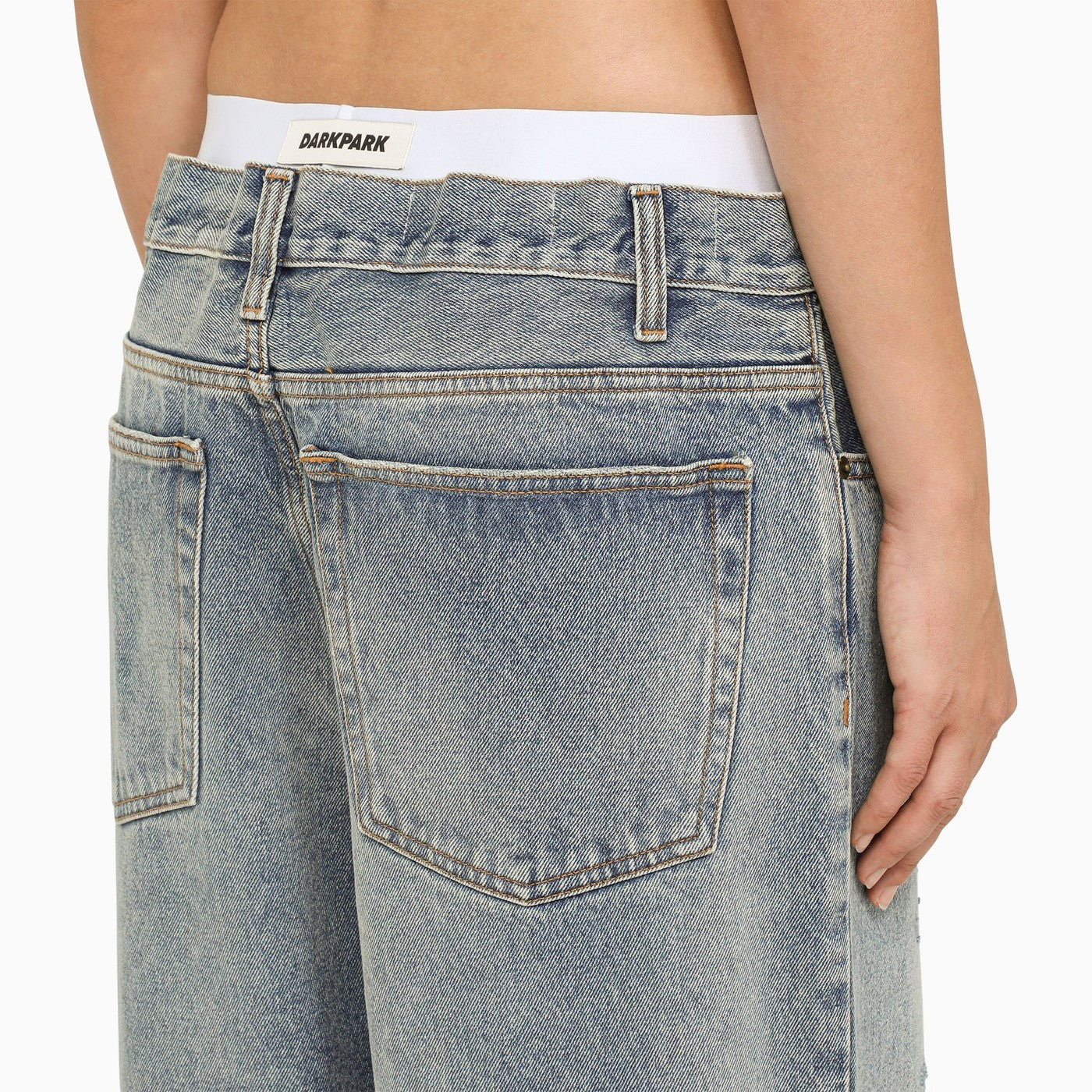 DARKPARK boyfriend jeans made of washed-out denim, featuring a low waist, belt loops, three front pockets, two back pockets, localised wear and tear and a logoed elasticated waistband.