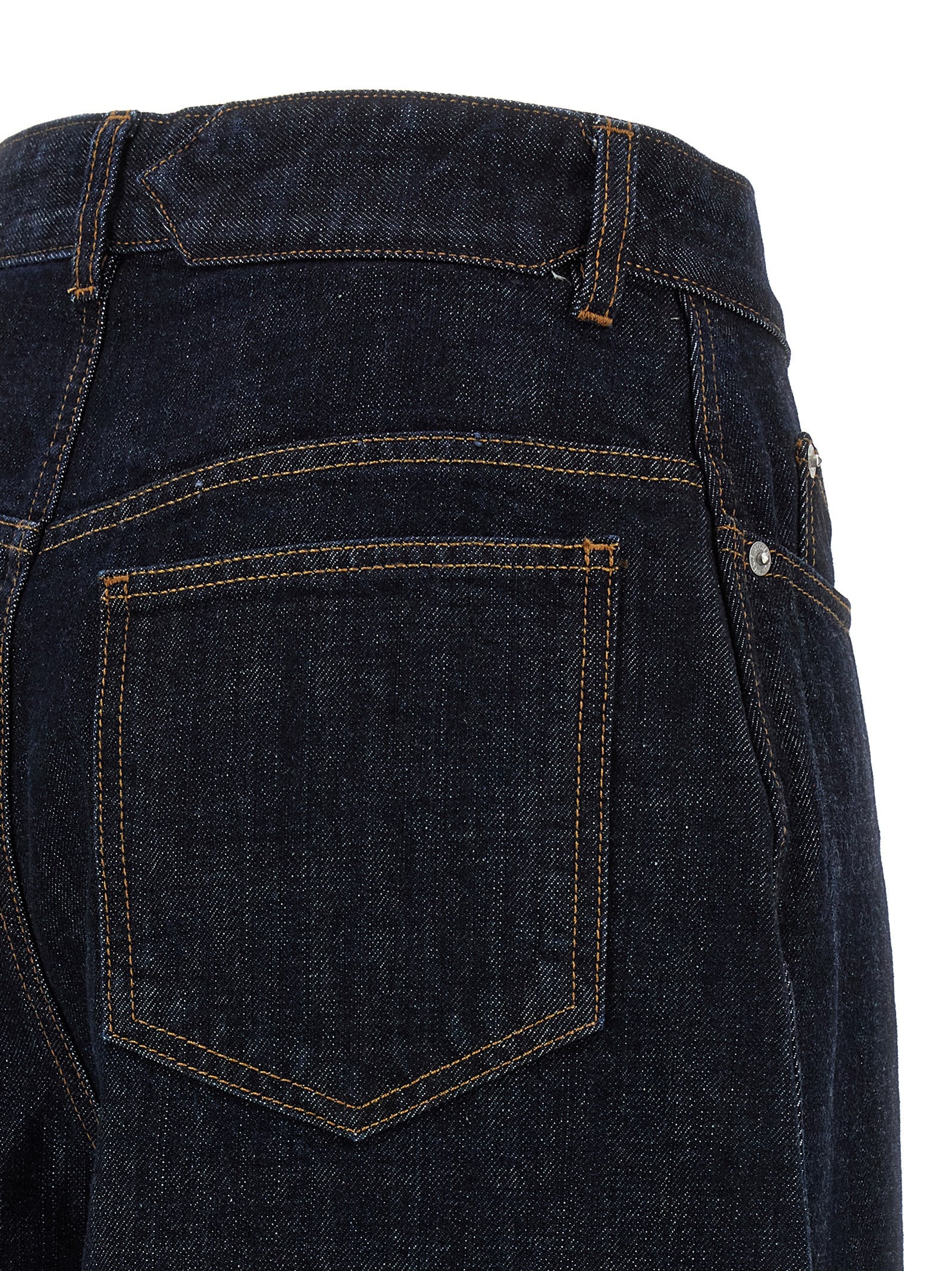 High-waist cotton denim 'Le De-Nimes Ovalo' jeans with curved cut in the legs, contrast stitching, belt loops at the waist, front logo embroidery, zip and button closure.