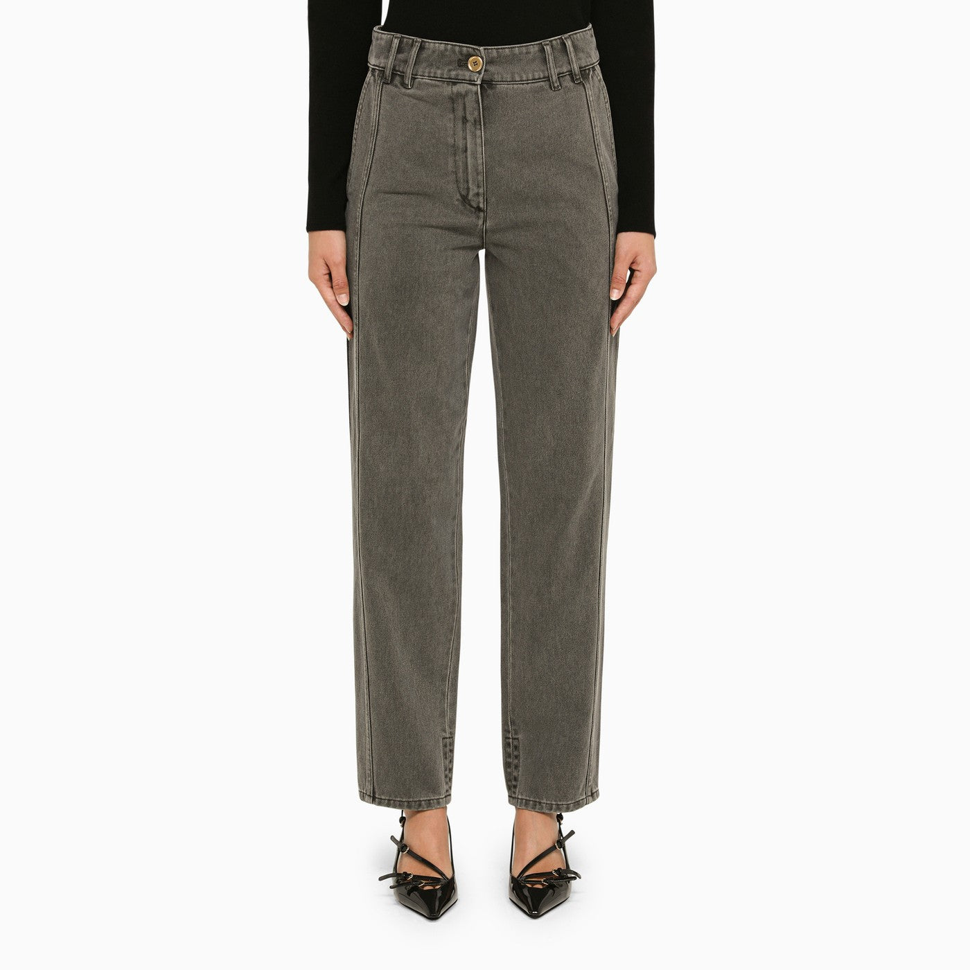 Patou jeans in anthracite cotton denim, featuring visible stitching, two front pockets, two back pockets and belt loops at the waist.