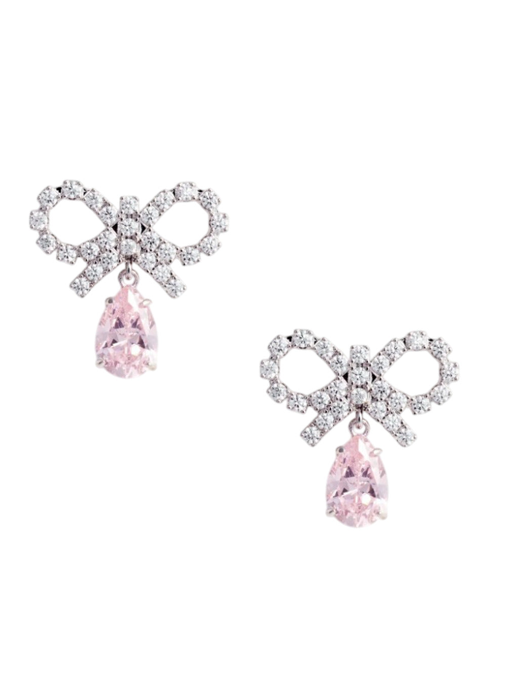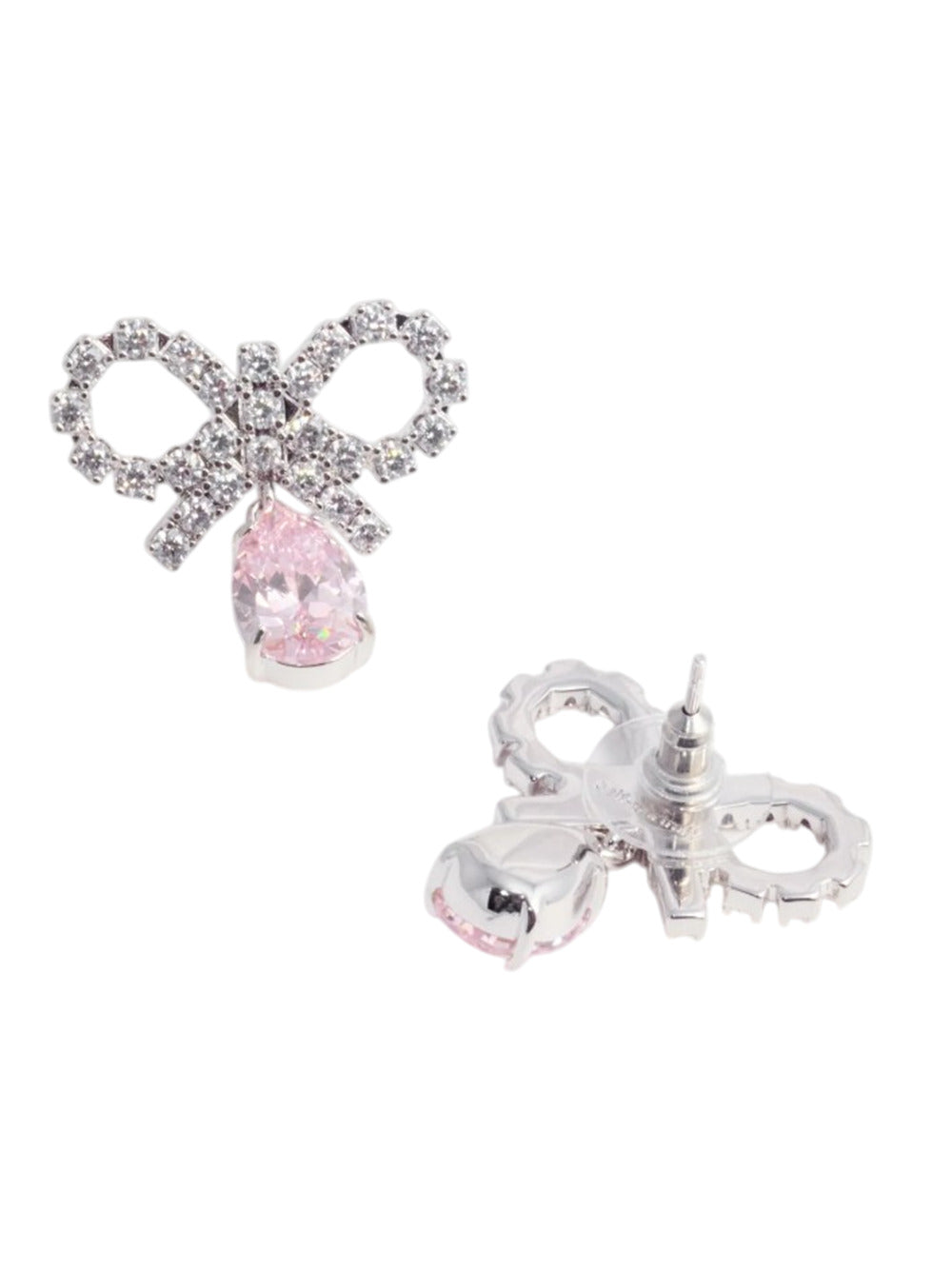 An oversized pink crystal drop adds a pop of color to these sparkling earrings. Use them to accent a button-up shirt or pair with our sparkling bags for a complete look.