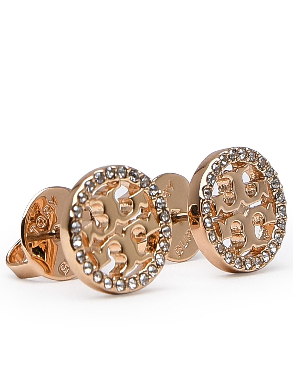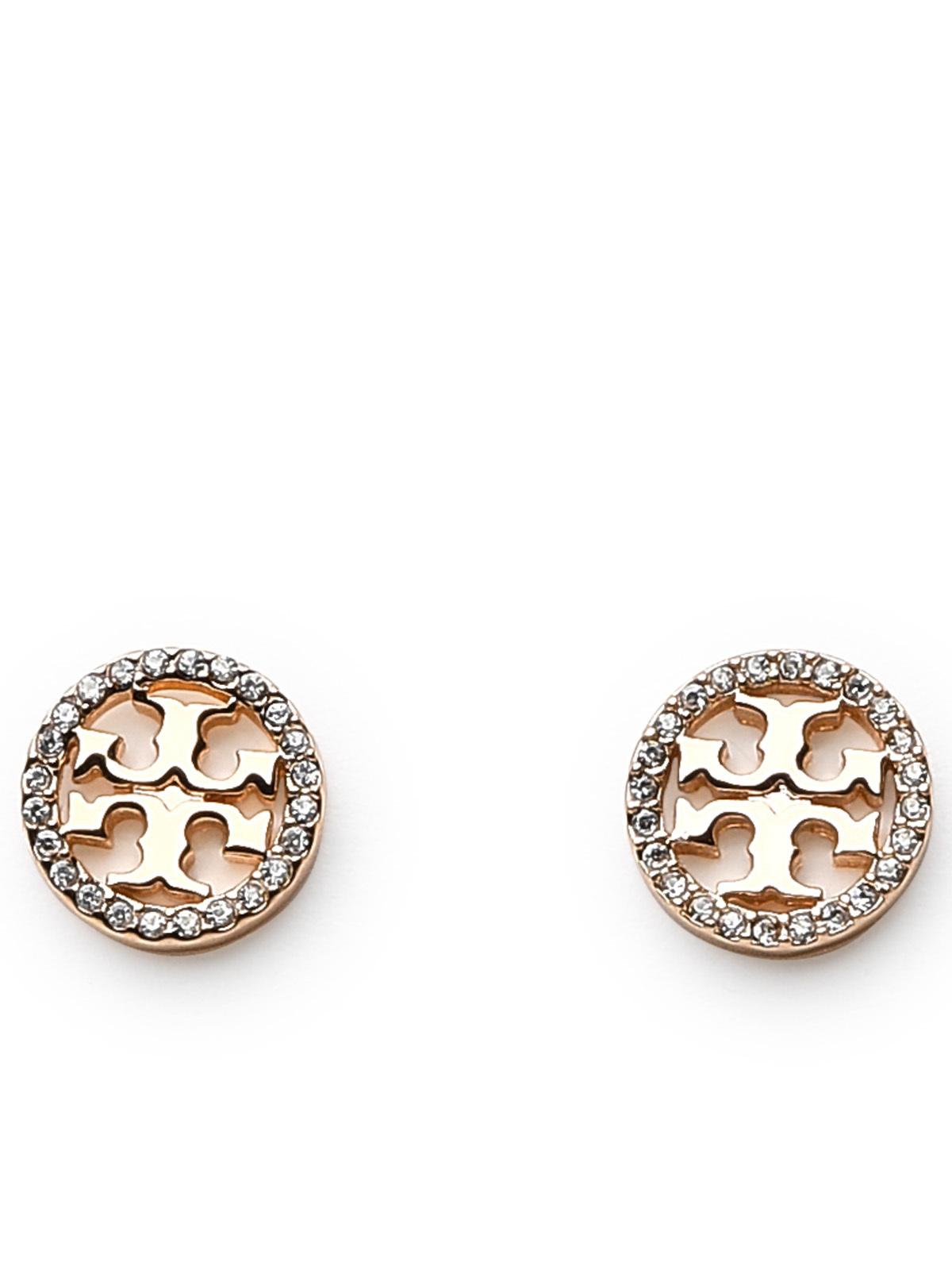 Earrings with a pavé-embellished double T logo, a stud closure, 18K gold-plated stainless steel, Swarovski crystals, diameter 1 cm, nickel free