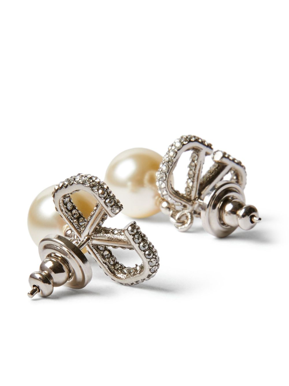 silver-tone VLogo Signature crystal embellishment faux-pearl detailing post-back fastening for pierced ears These earrings come as a pair.