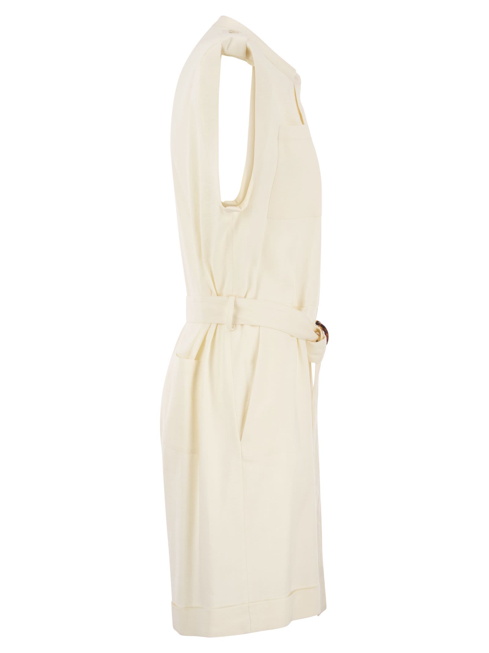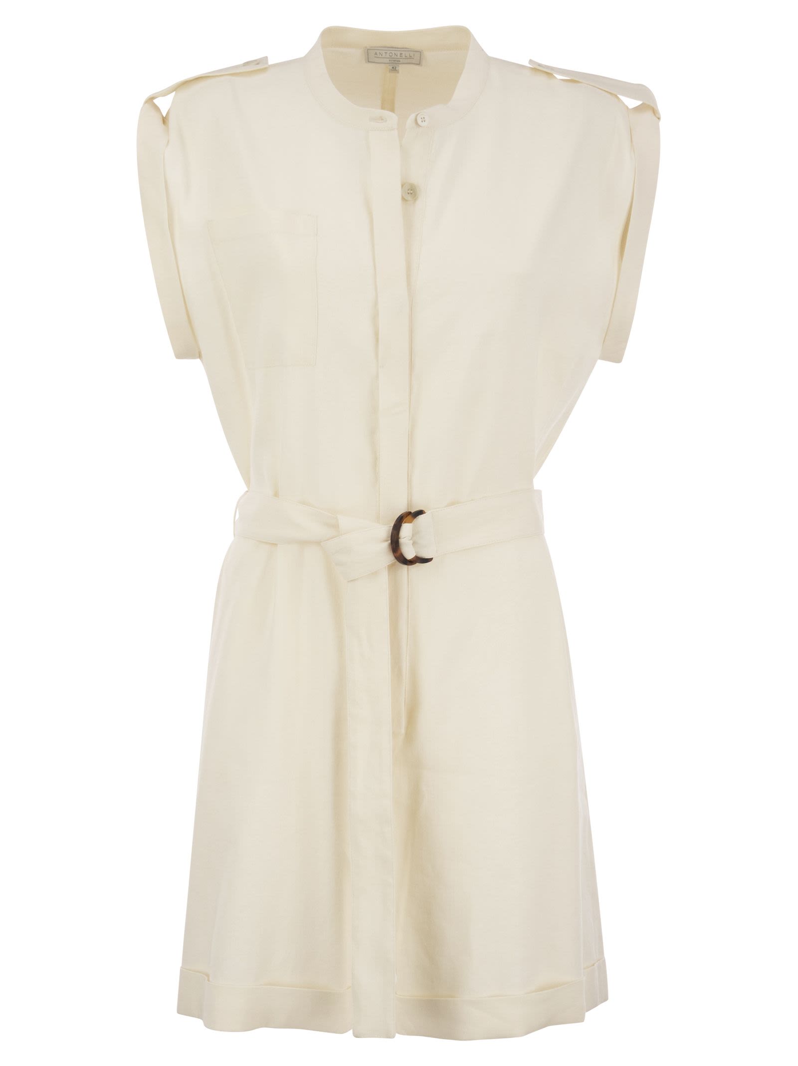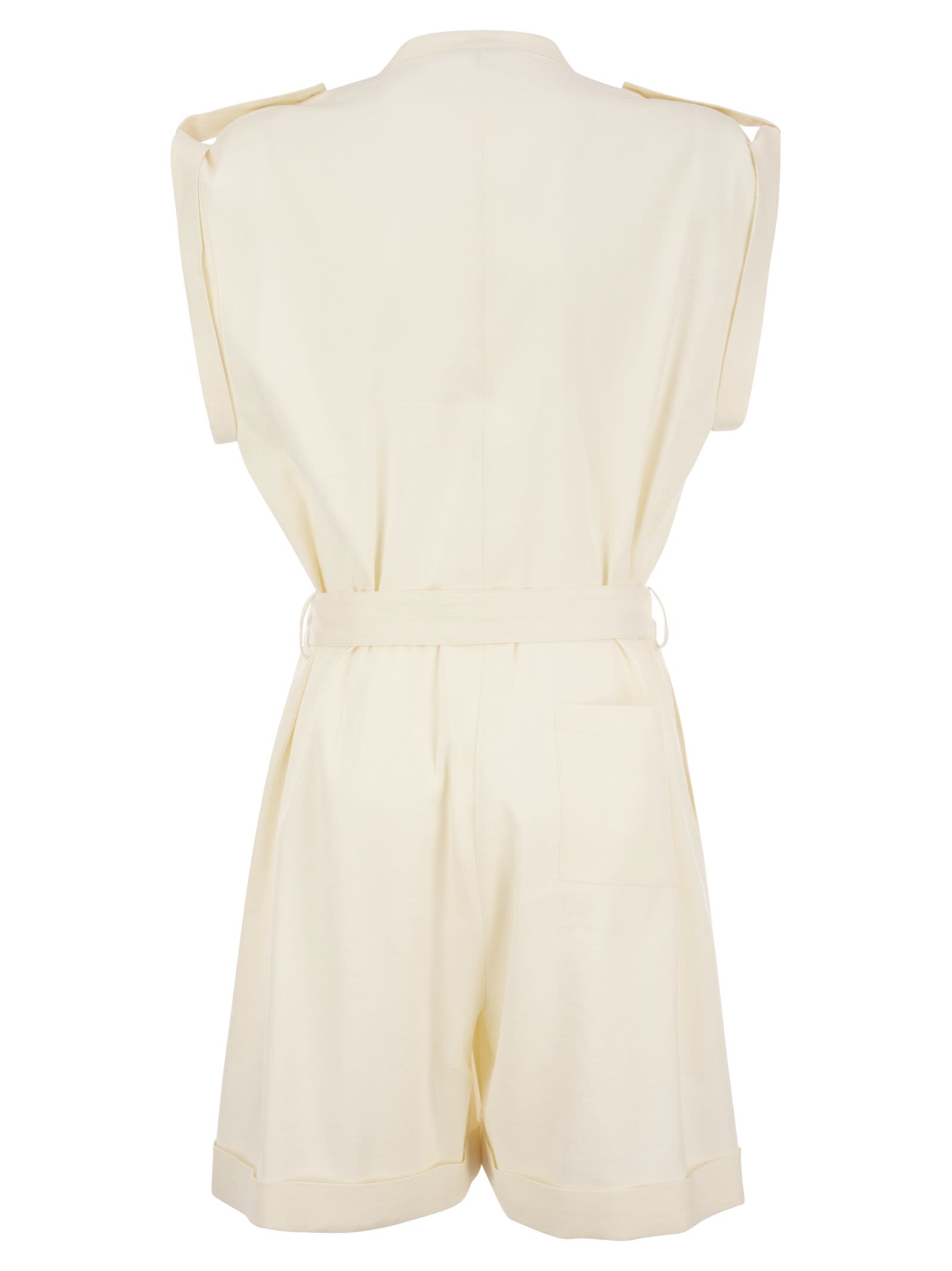 Antonelli Firenze presents this linen and cotton blend jumpsuit, perfect for the summer. Featuring a matching belt that trims the waist, front button fastening and sleeveless. - Mandarin collar - Regular fit - Short shorts DESIGNER ID: J6657 934 112