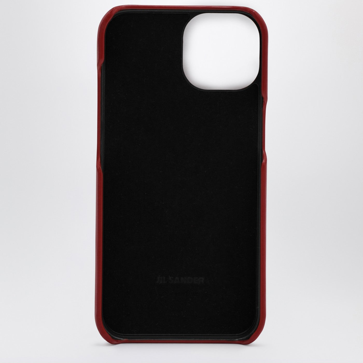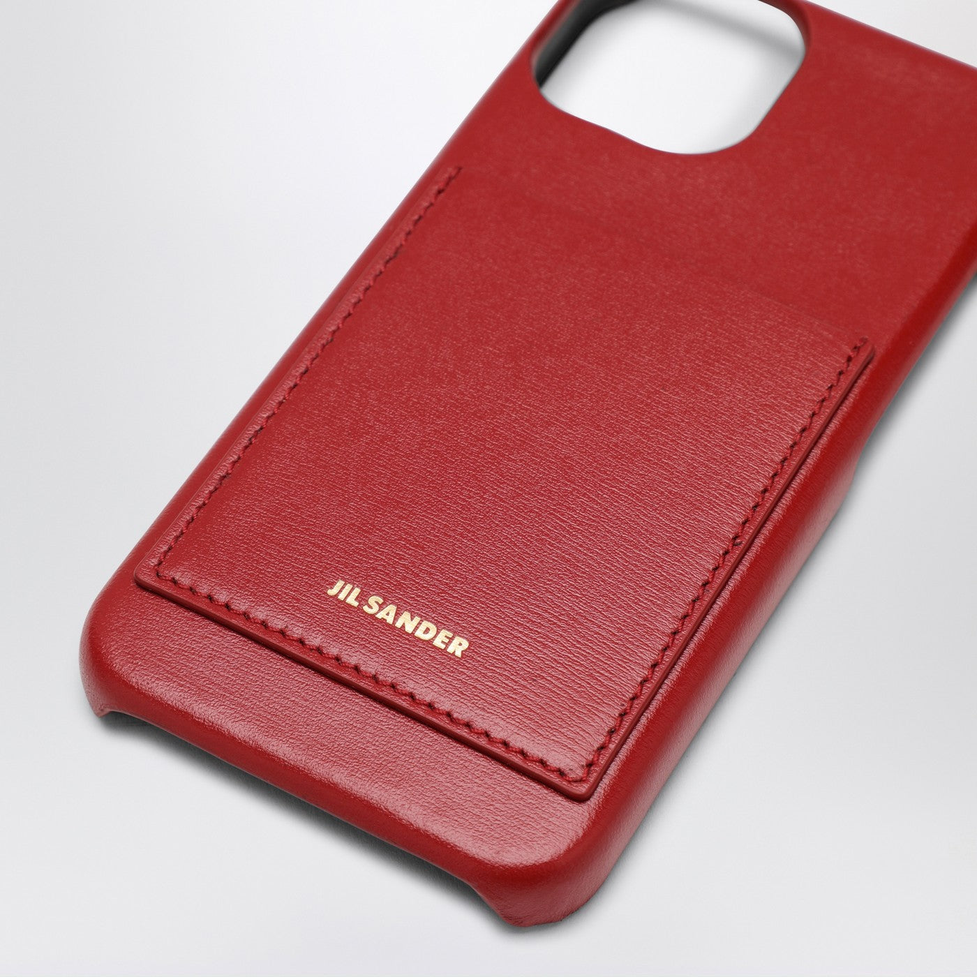 iPhone case by Jil Sander in cranberry-coloured leather, featuring a flat slit pocket on the back and logo print.