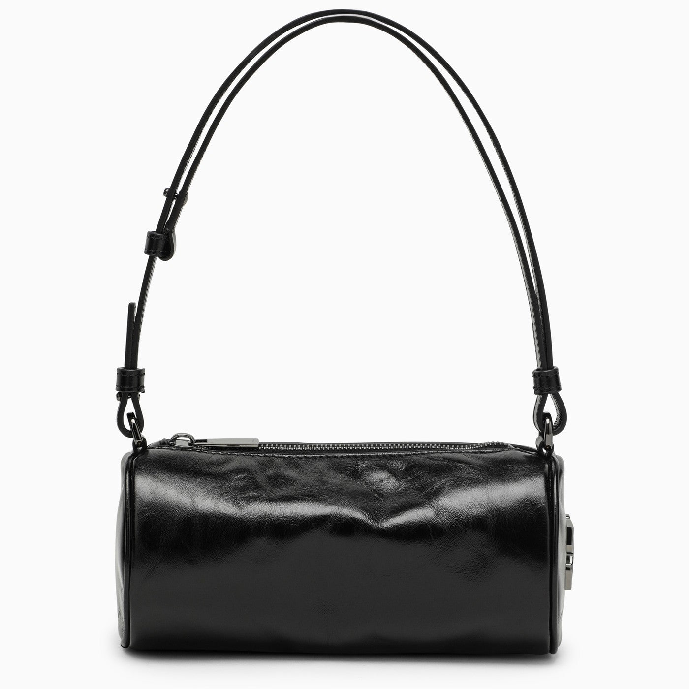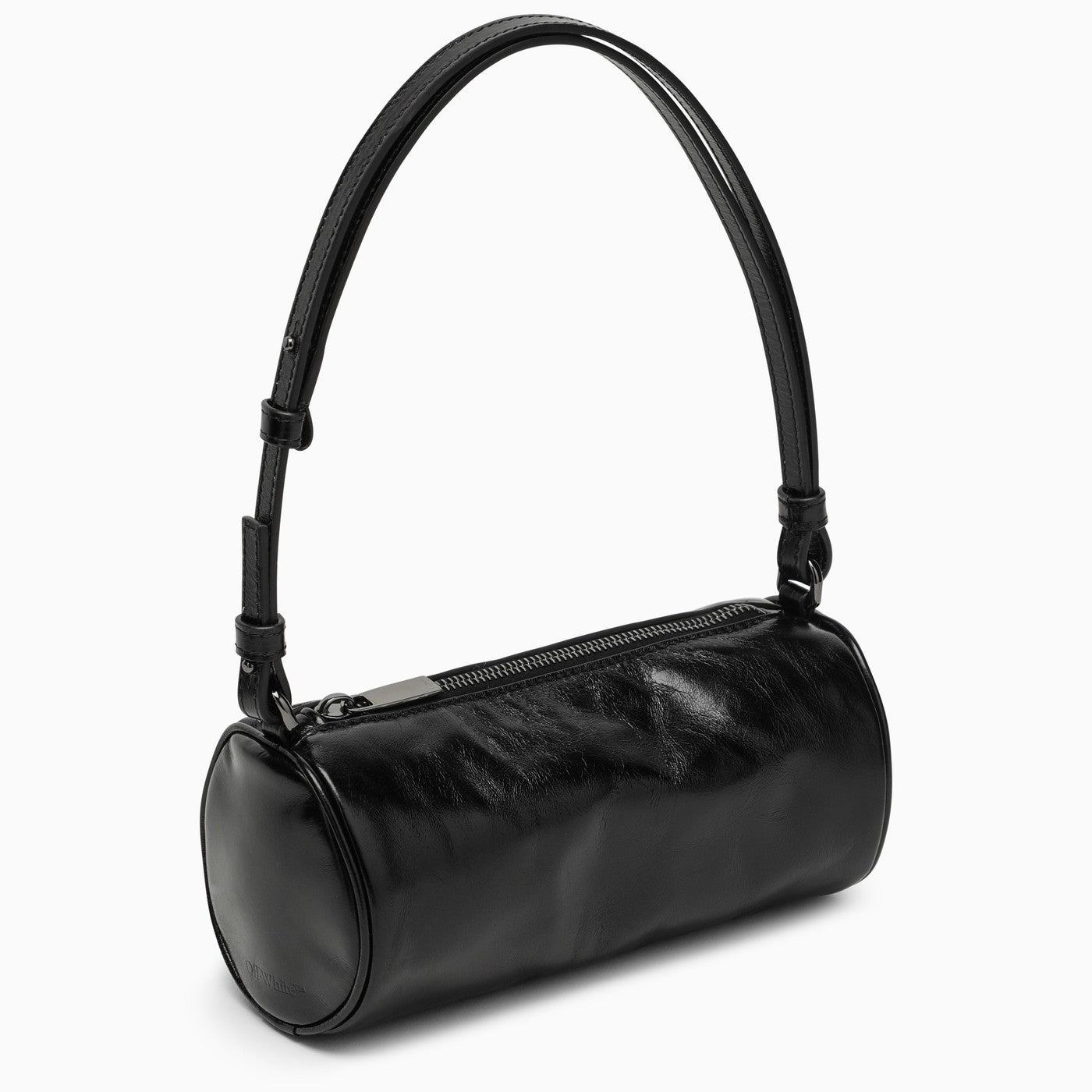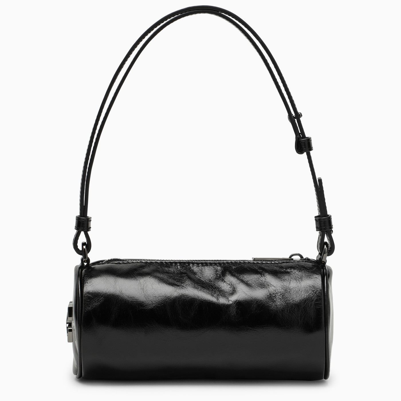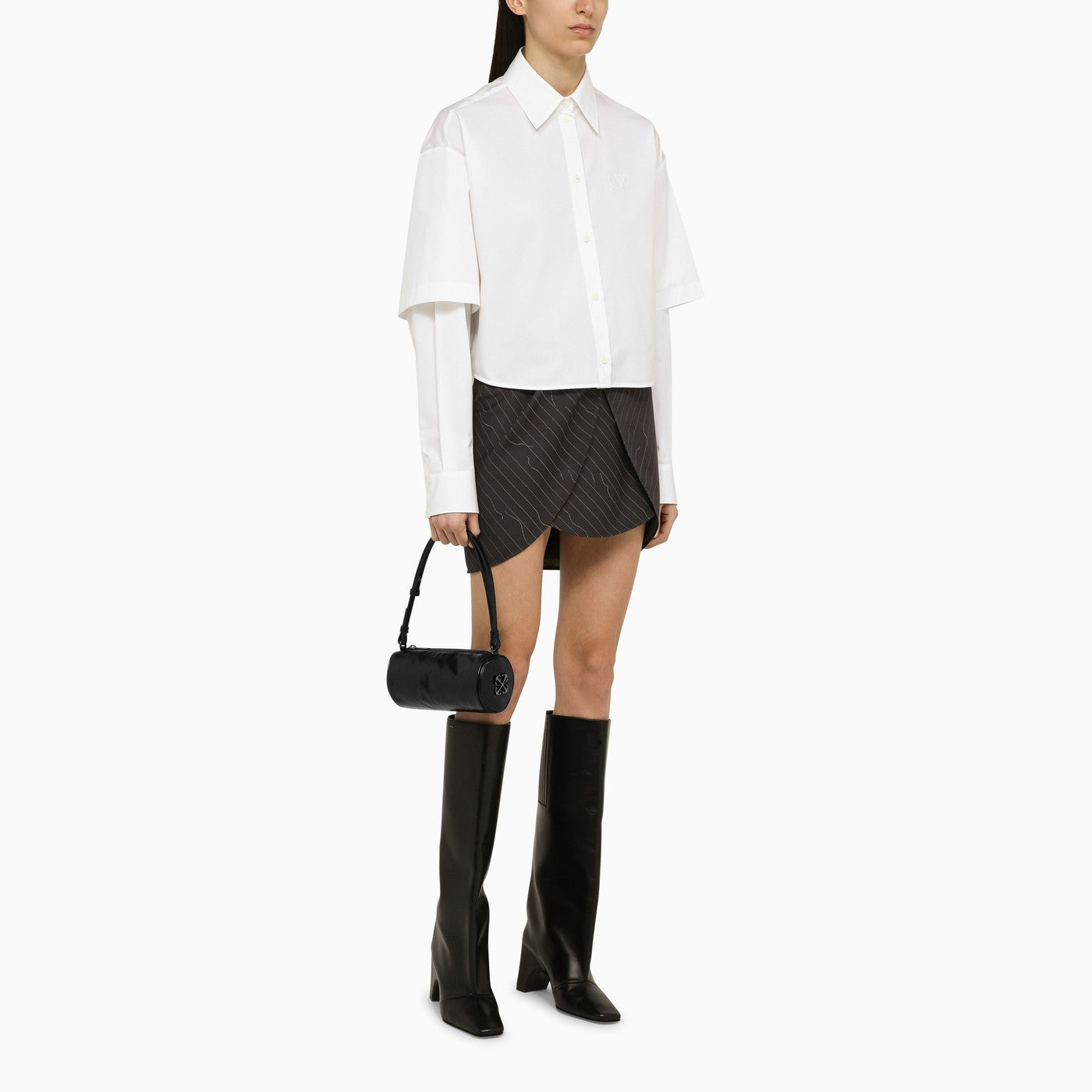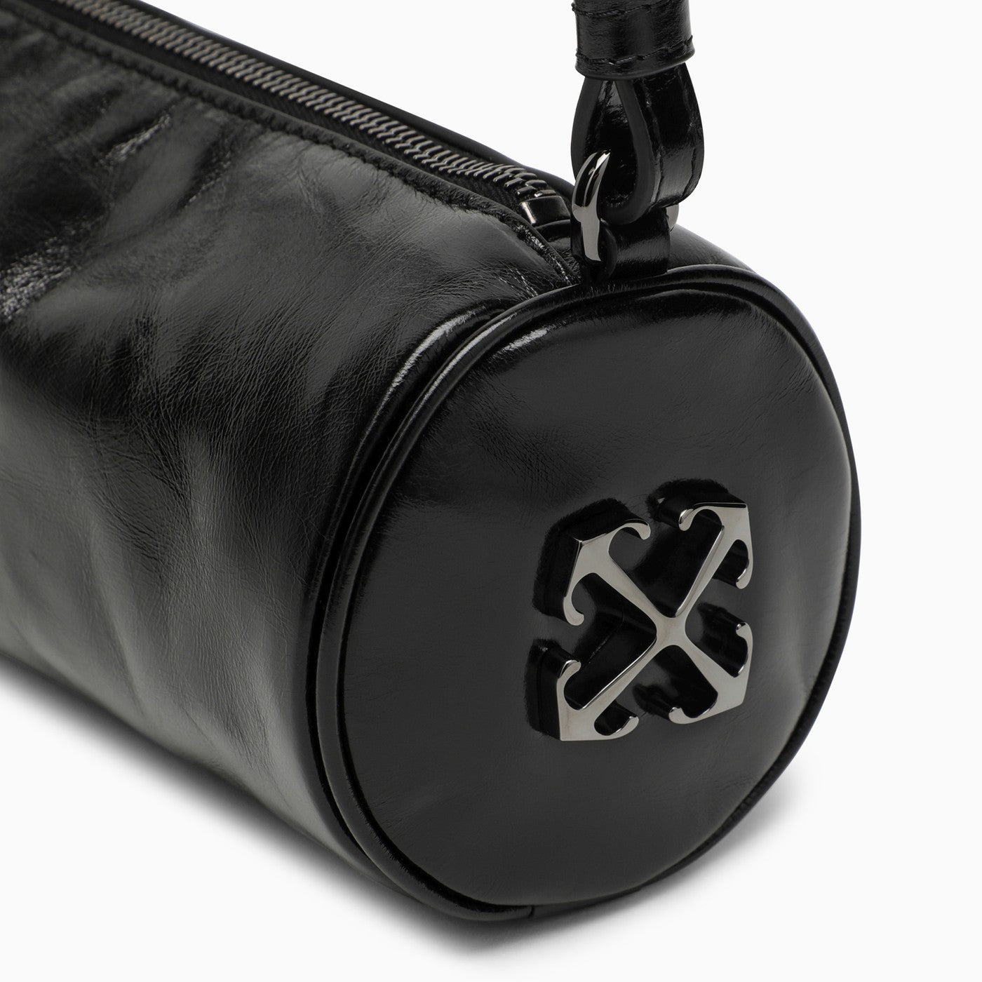 Black leather Off-White smartphone case featuring an adjustable and removable leather handle, a zip fastener and a metallic Arrow logo on the side.