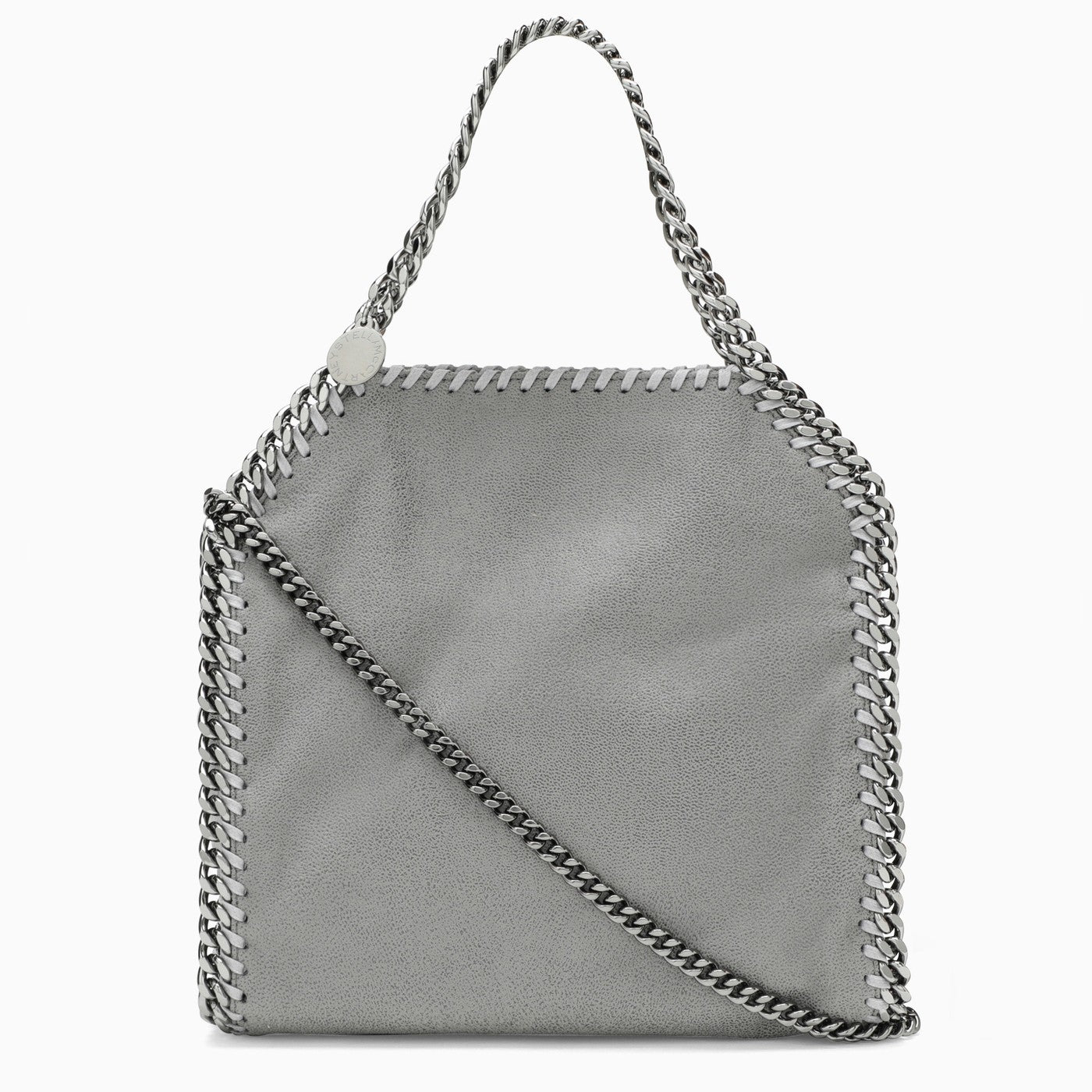 Mini tote bag by Stella McCartney in light grey eco-leather featuring a shoulder chunky chain, a lightweight chain trim and interior with slip pocket.