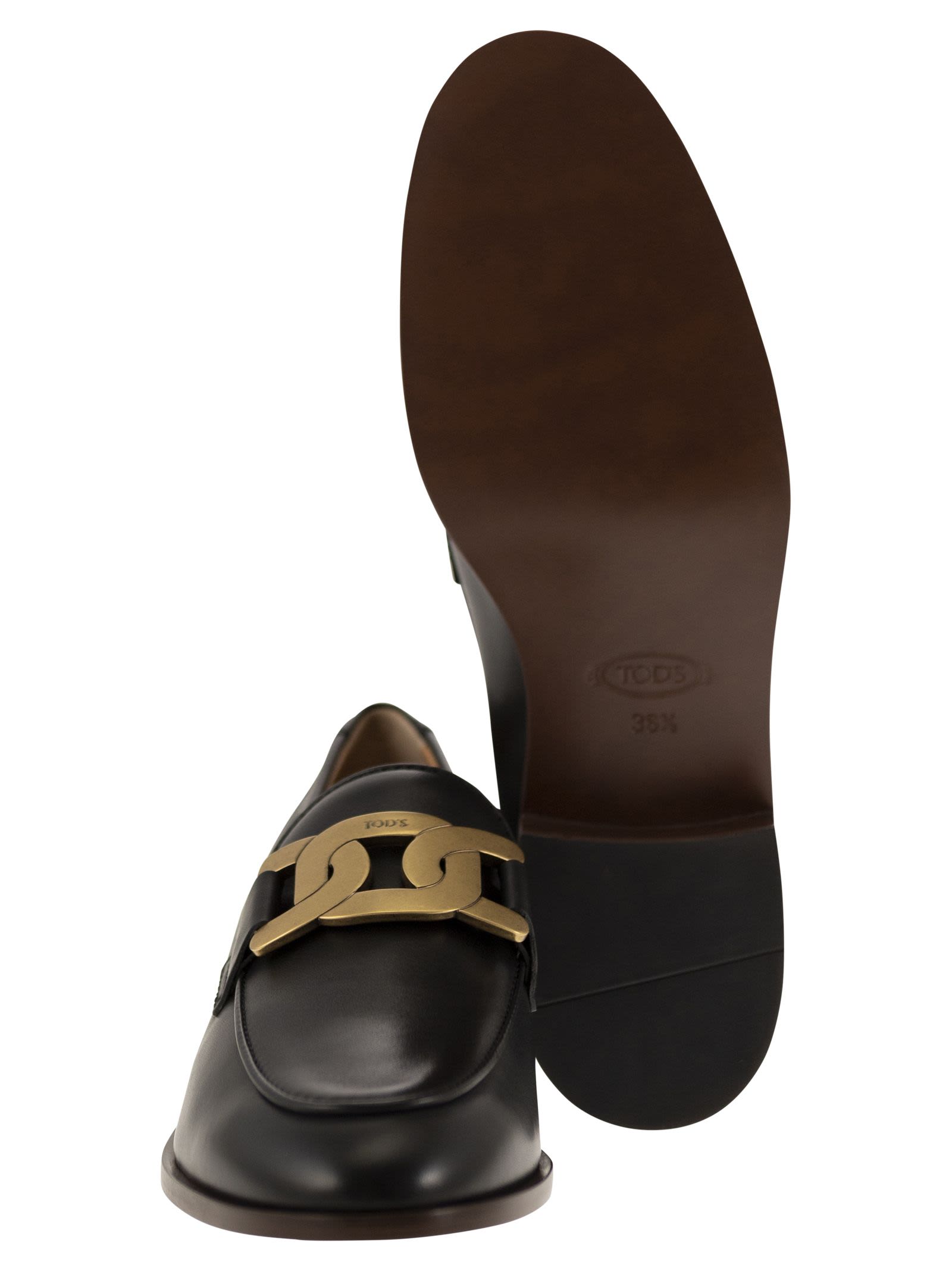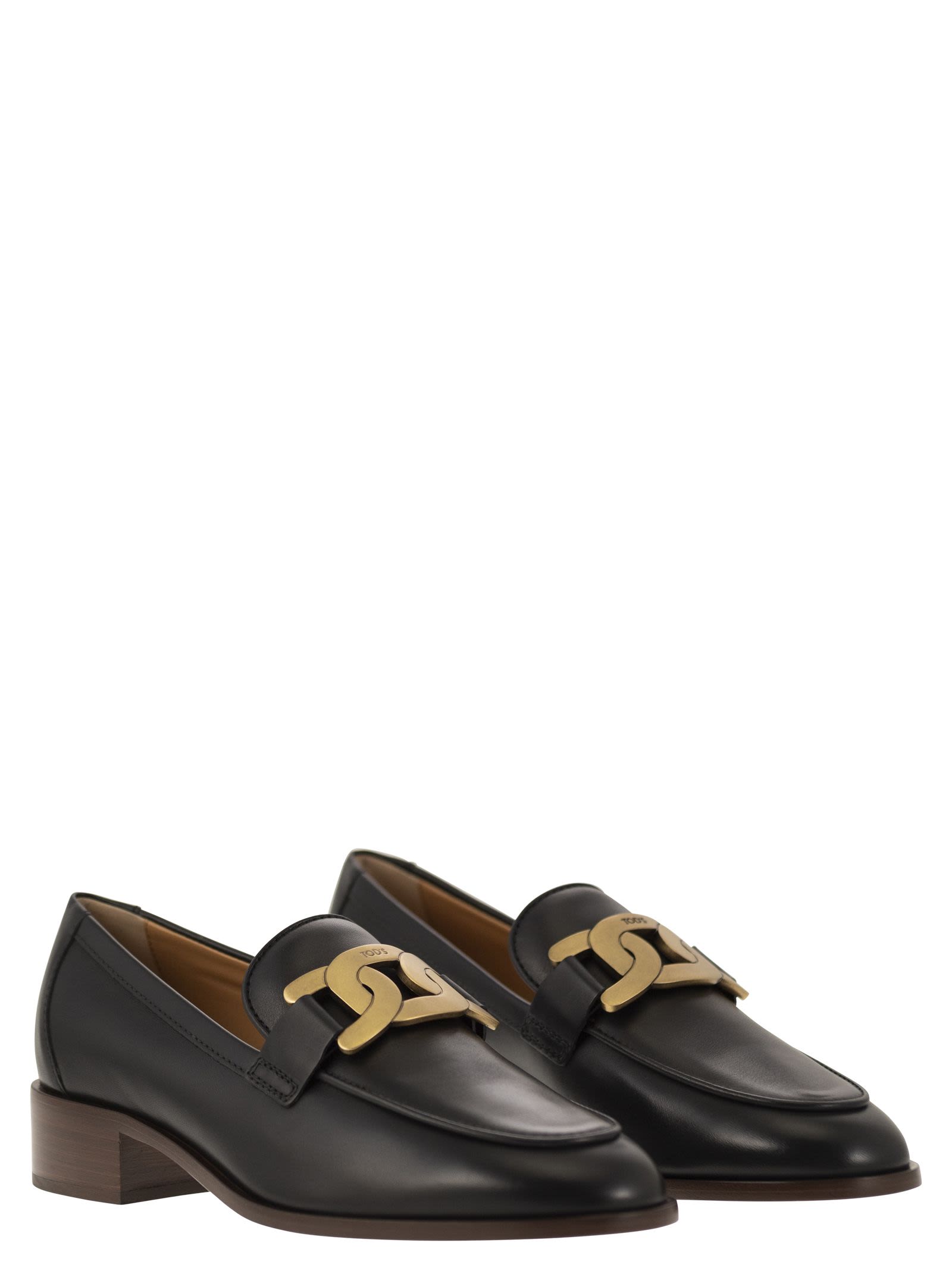 Fine leather moccasin with customised metal chain accessory and leather heel. - Leather upper - Personalised metal chain accessory - Leather sole DESIGNER ID: XXW28K0FR00GOCB999