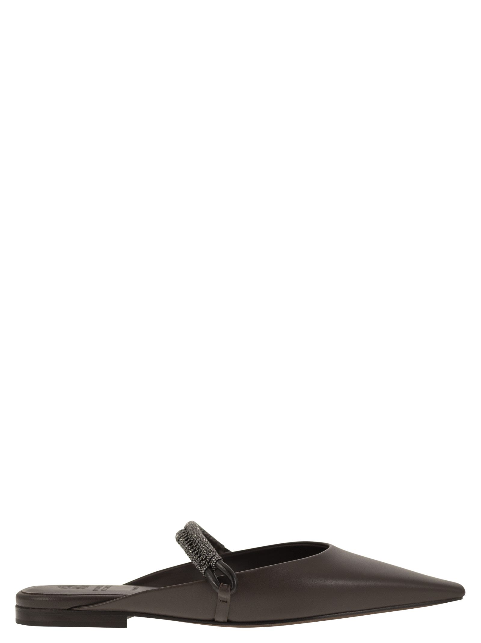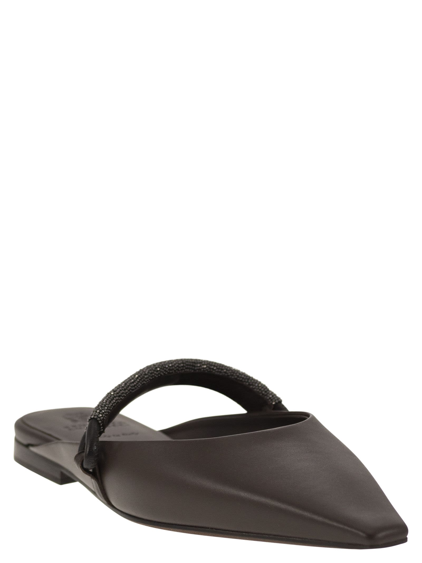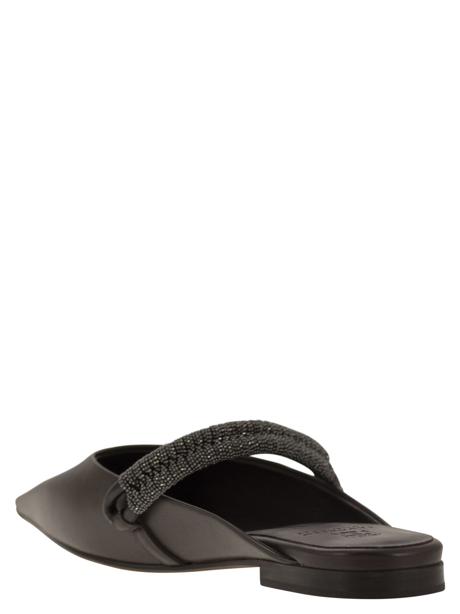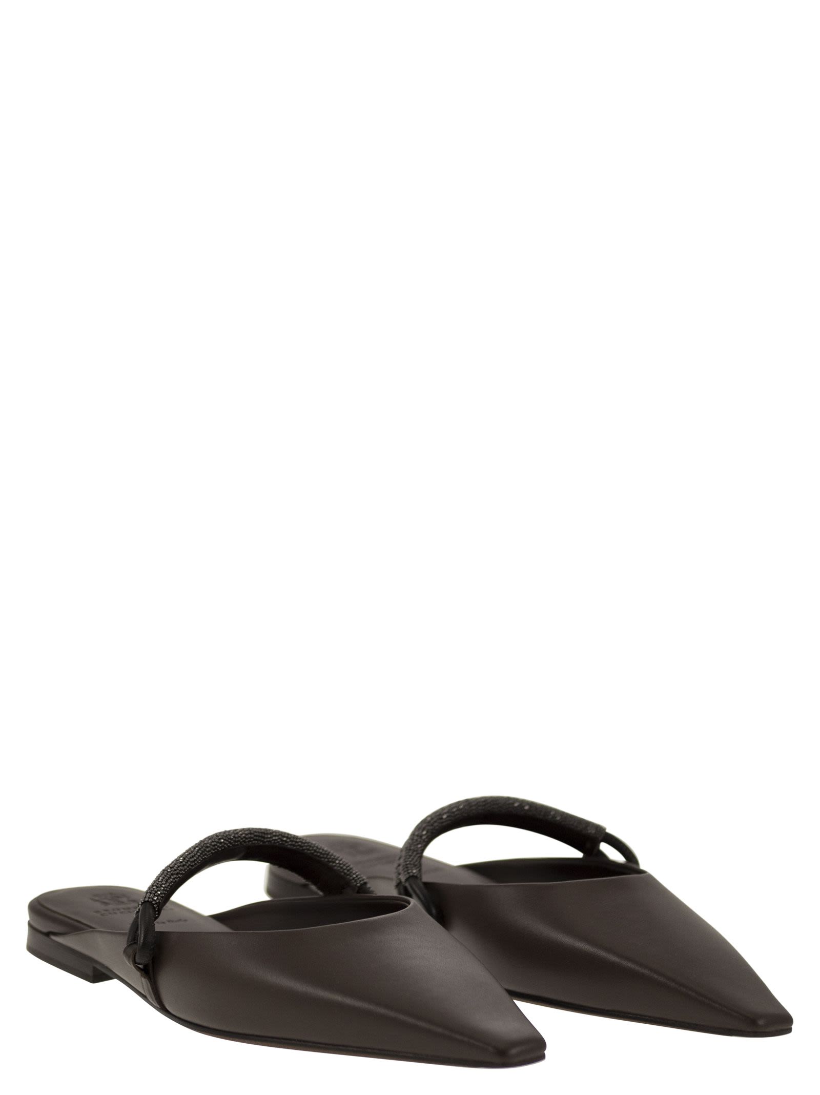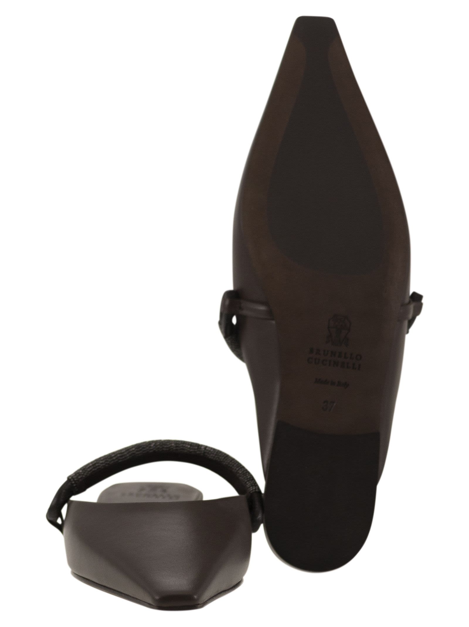 Brunello Cucinelli Soft Nappa Open Flats With Precious Strap
