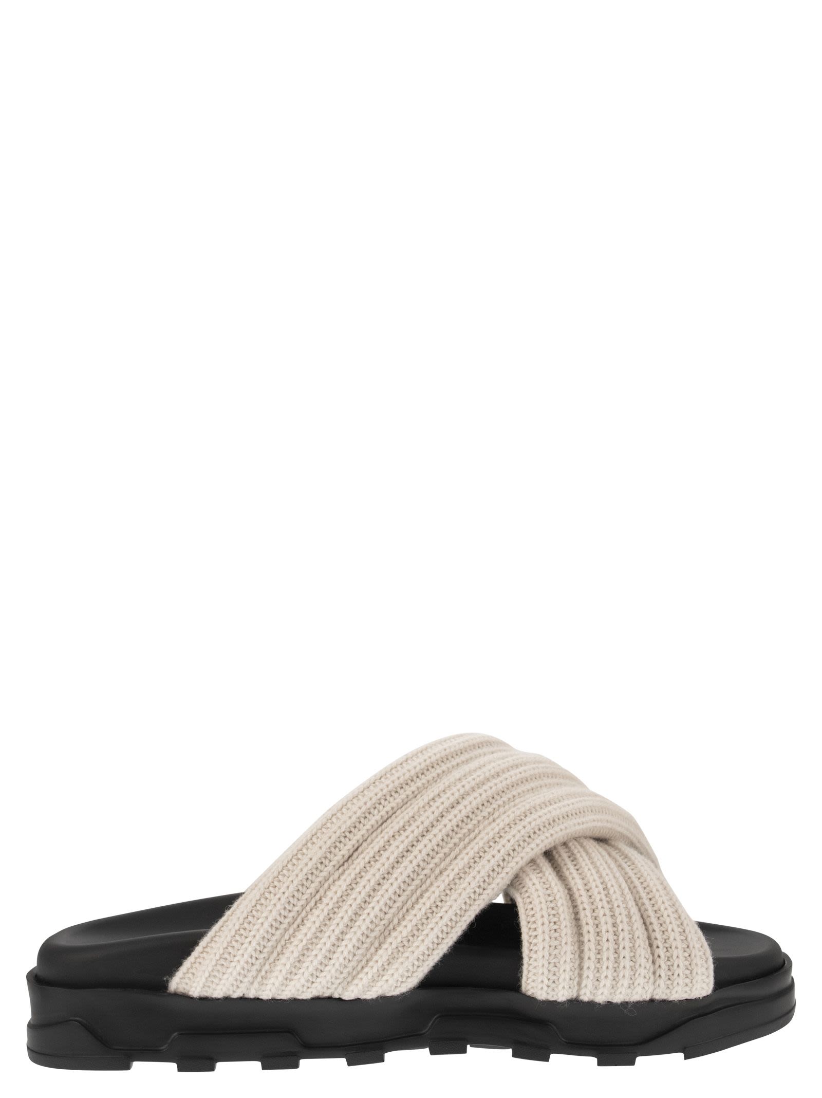 Original low sandal with bands in a soft merino wool fabric. A carefully crafted Highline capsule accessory, perfect for completing dynamic and modern looks. - Leather lining - Rubber sole DESIGNER ID: ASDC01A099 E021 VR1