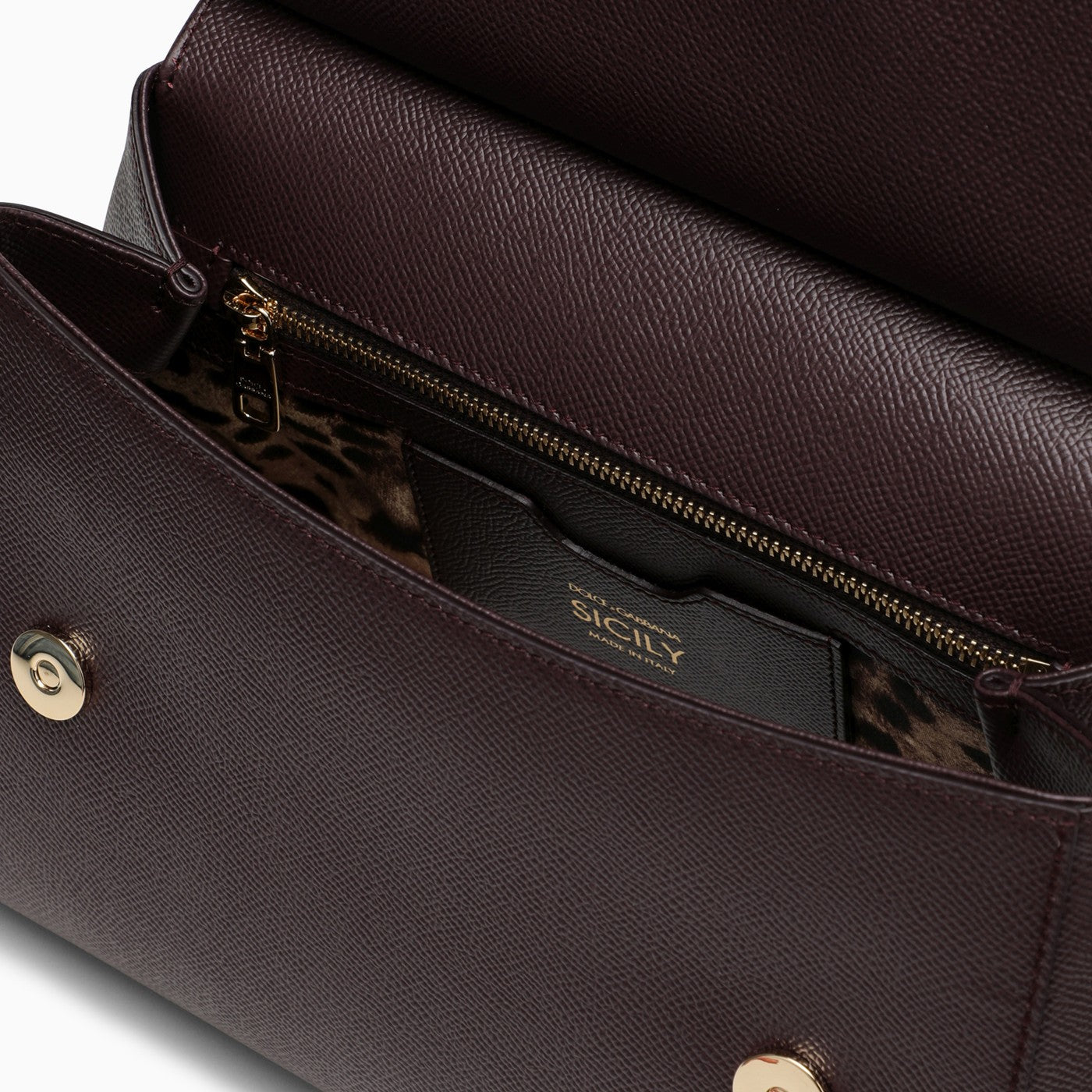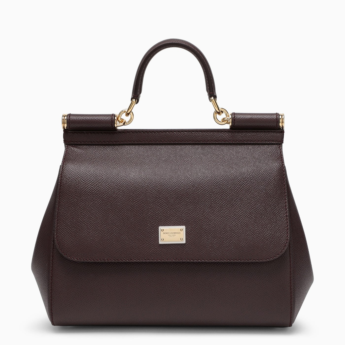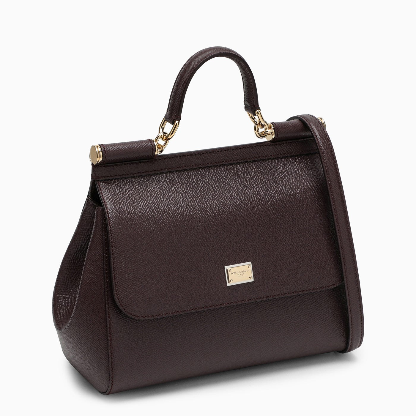 Medium grain leather handbag from Dolce & Gabbana featuring a front flap, a concealed press stud closure, a handle, an adjustable and removable shoulder strap, a logo plaque, an internal zip pocket with logo, a mobile phone pocket and metal feet.