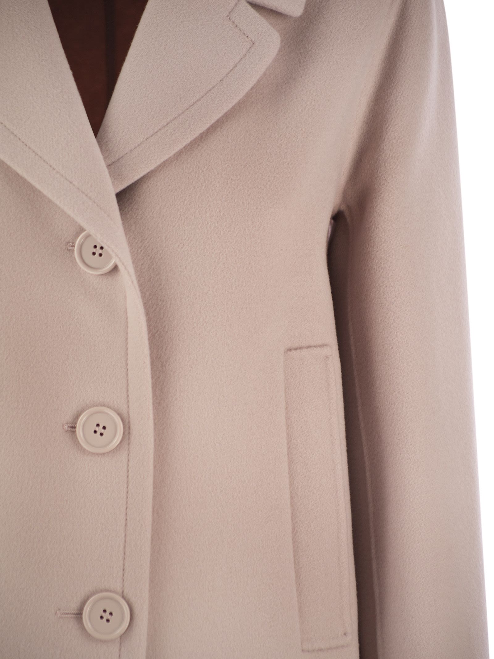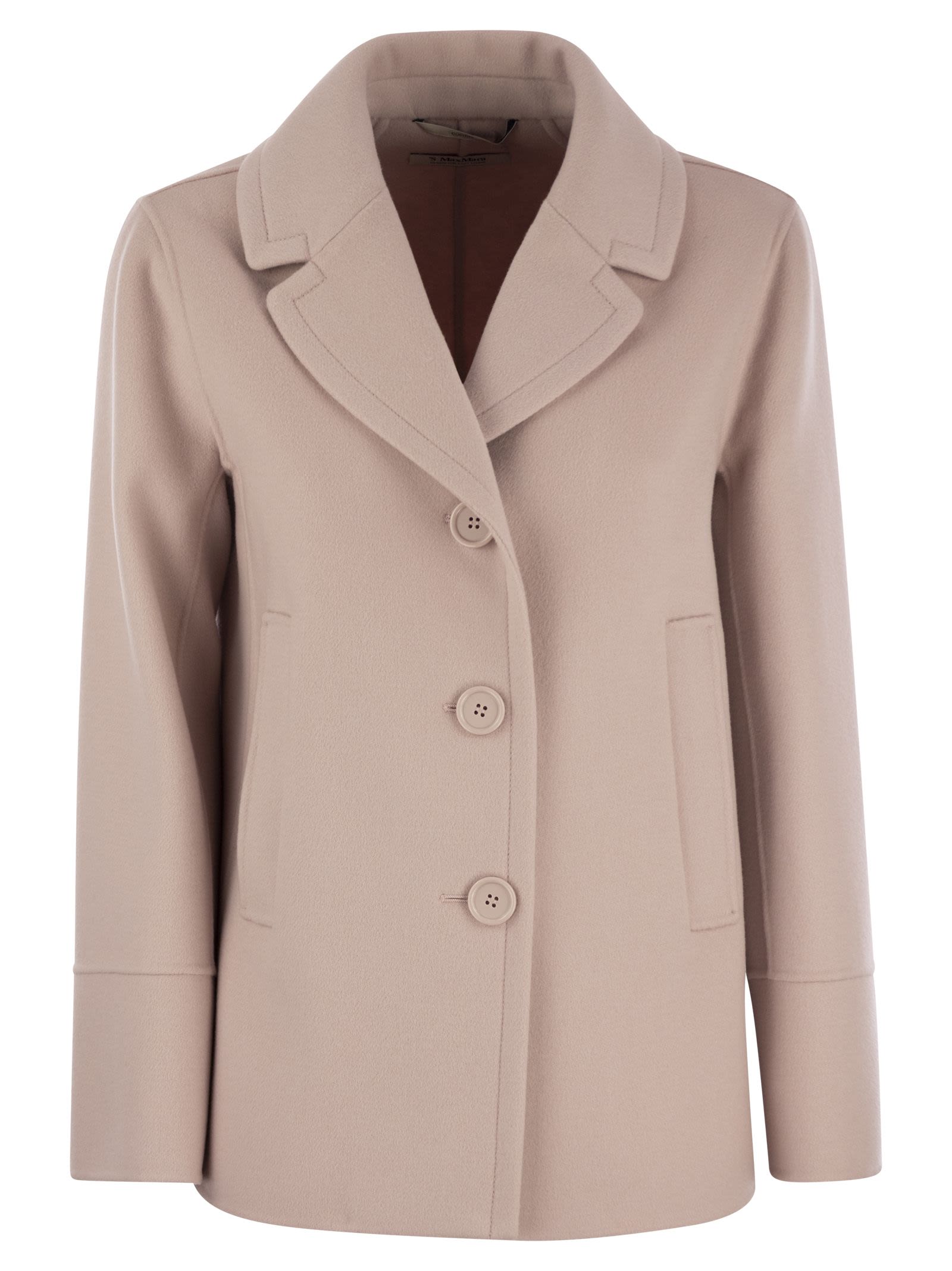 Single-breasted caban in fine hand-sewn double pure wool fabric. The construction features a lapel collar, welt pockets and round sleeves with a small slit at the bottom. The silhouette is finished with a central back vent. - Front button fastening - Silk lined - Regular fit DESIGNER ID: 2419041081600 061
