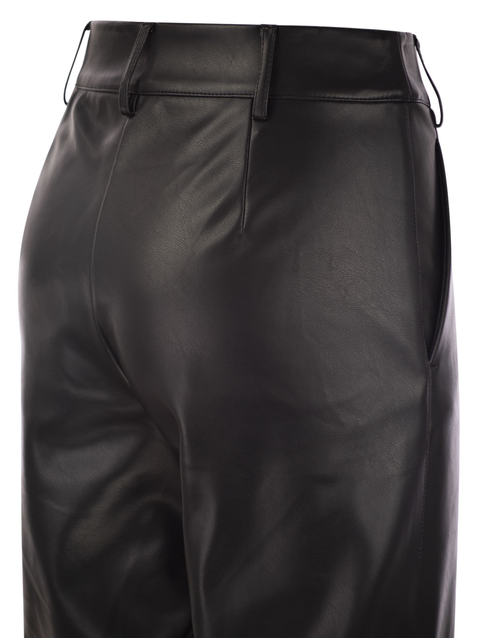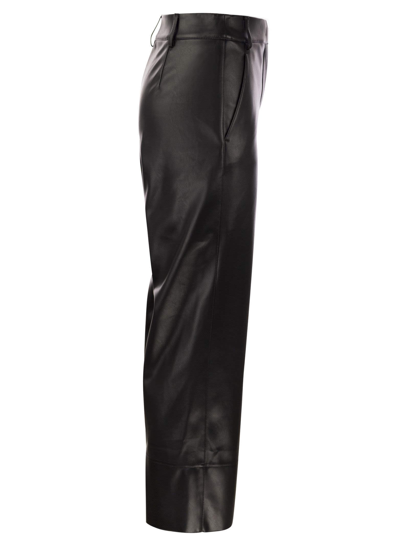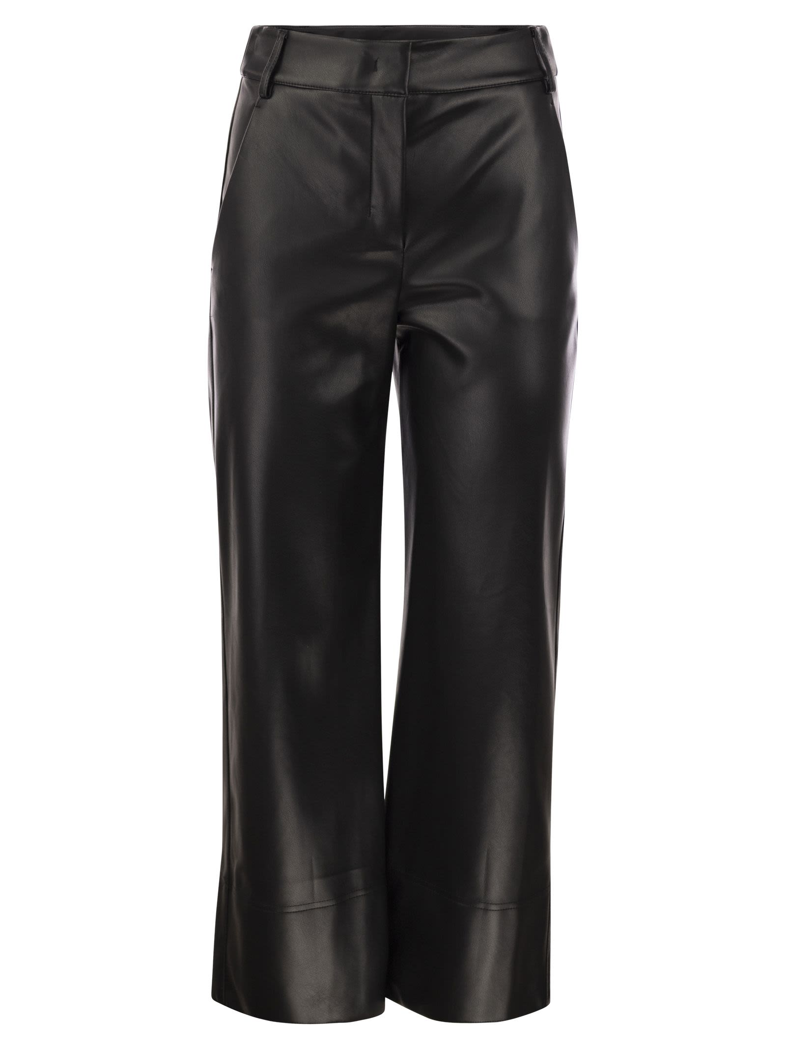 Slim fit trousers made of soft coated fabric, characterised by a slightly flared silhouette at the bottom. Ankle-length model with belt loops at the waist and side pockets on the hips. - Zip and hook fastening - Ankle length - Slightly flared DESIGNER ID: 2419781021600 005