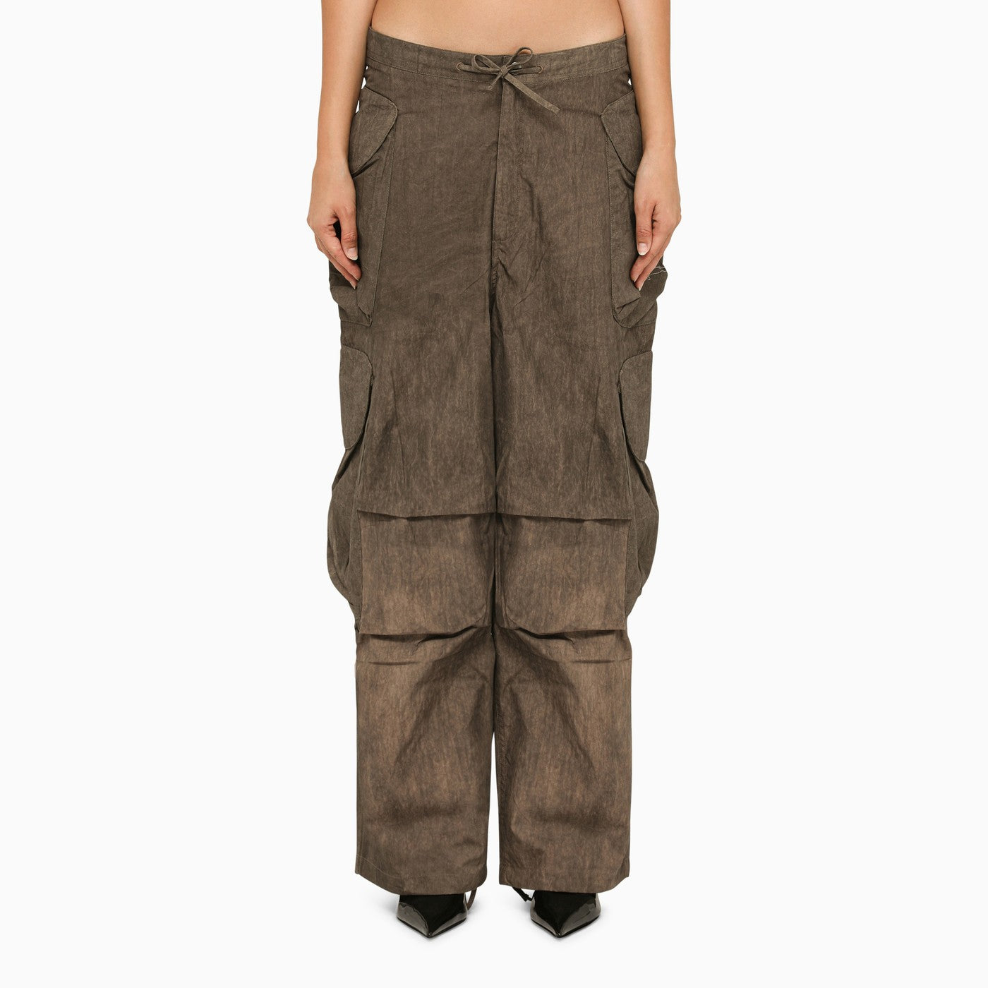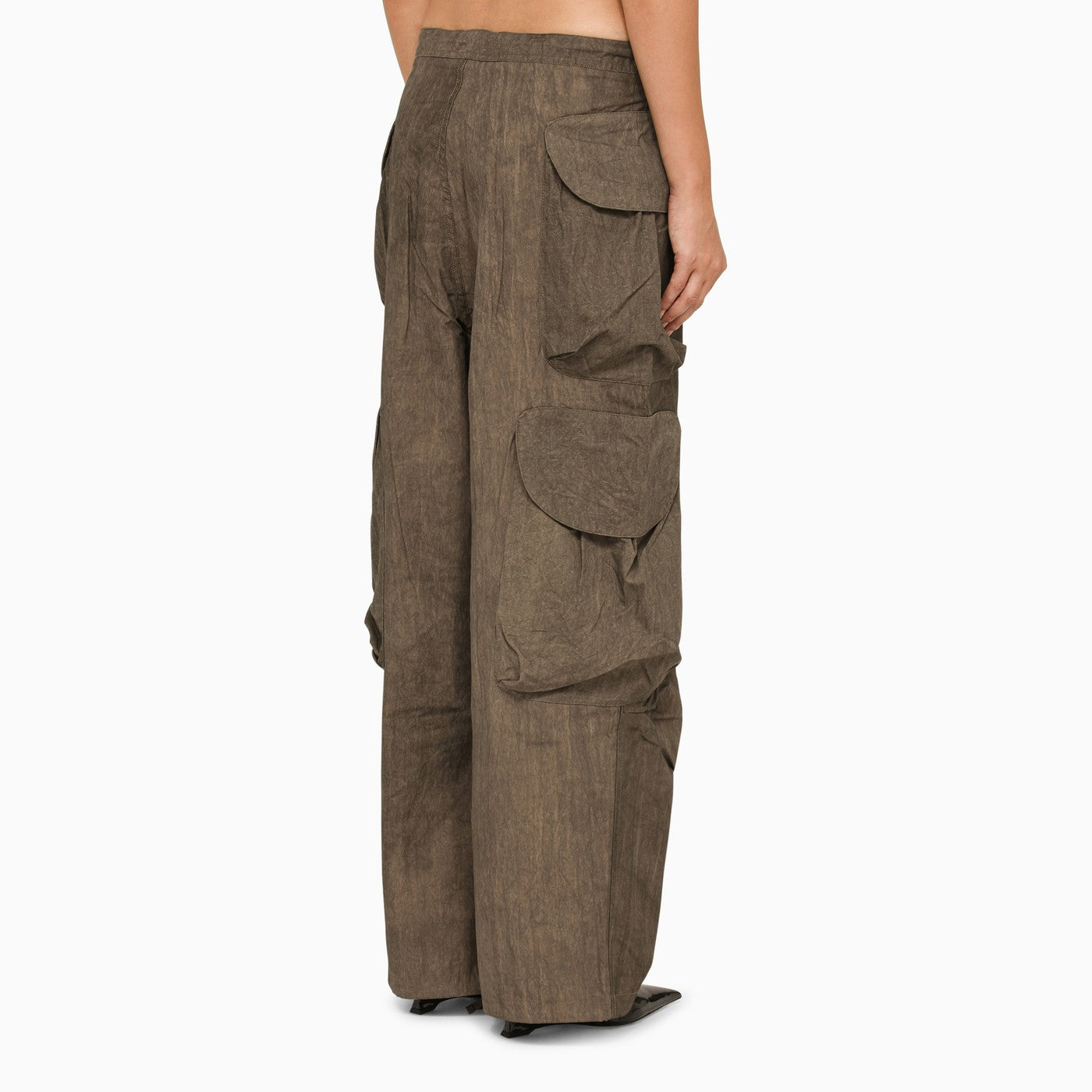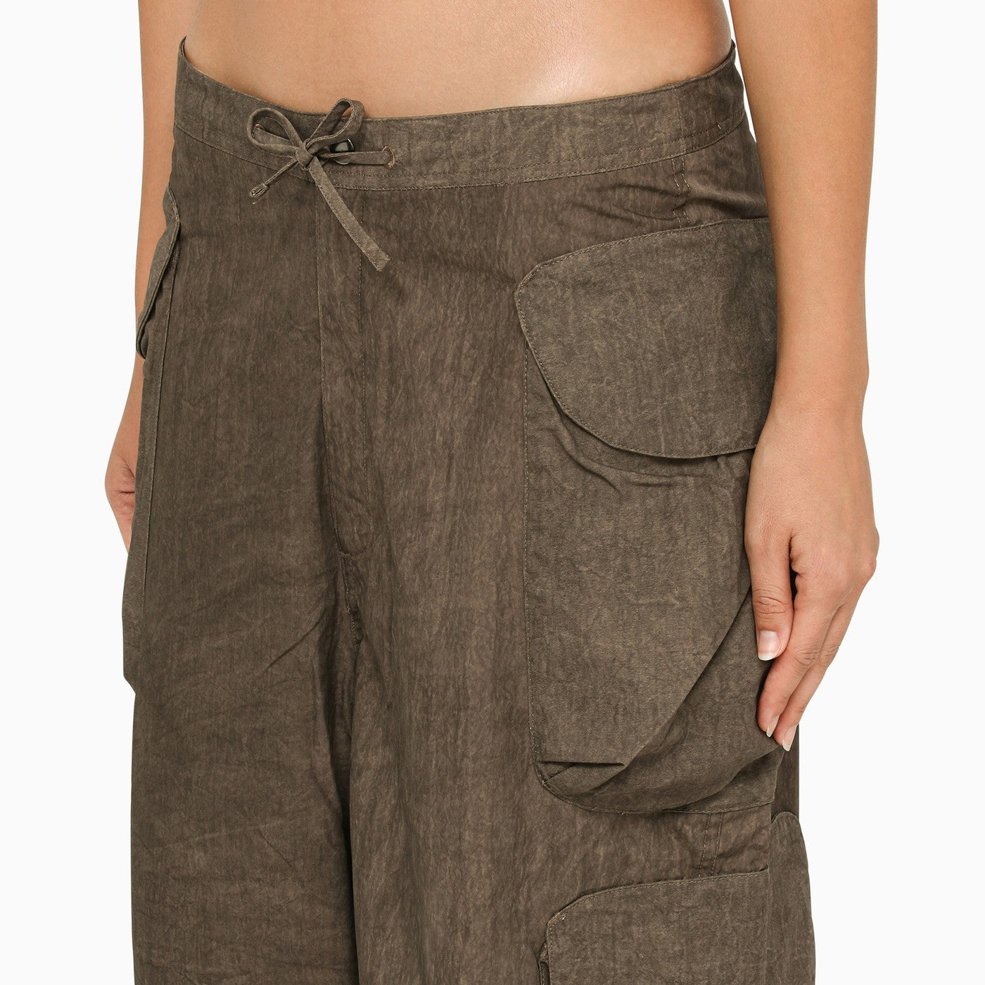 Brown shaded-effect cotton-blend cargo trousers by Entire Studios with drawstring waist, four flap pockets on the sides and adjustable drawstring leg bottoms.