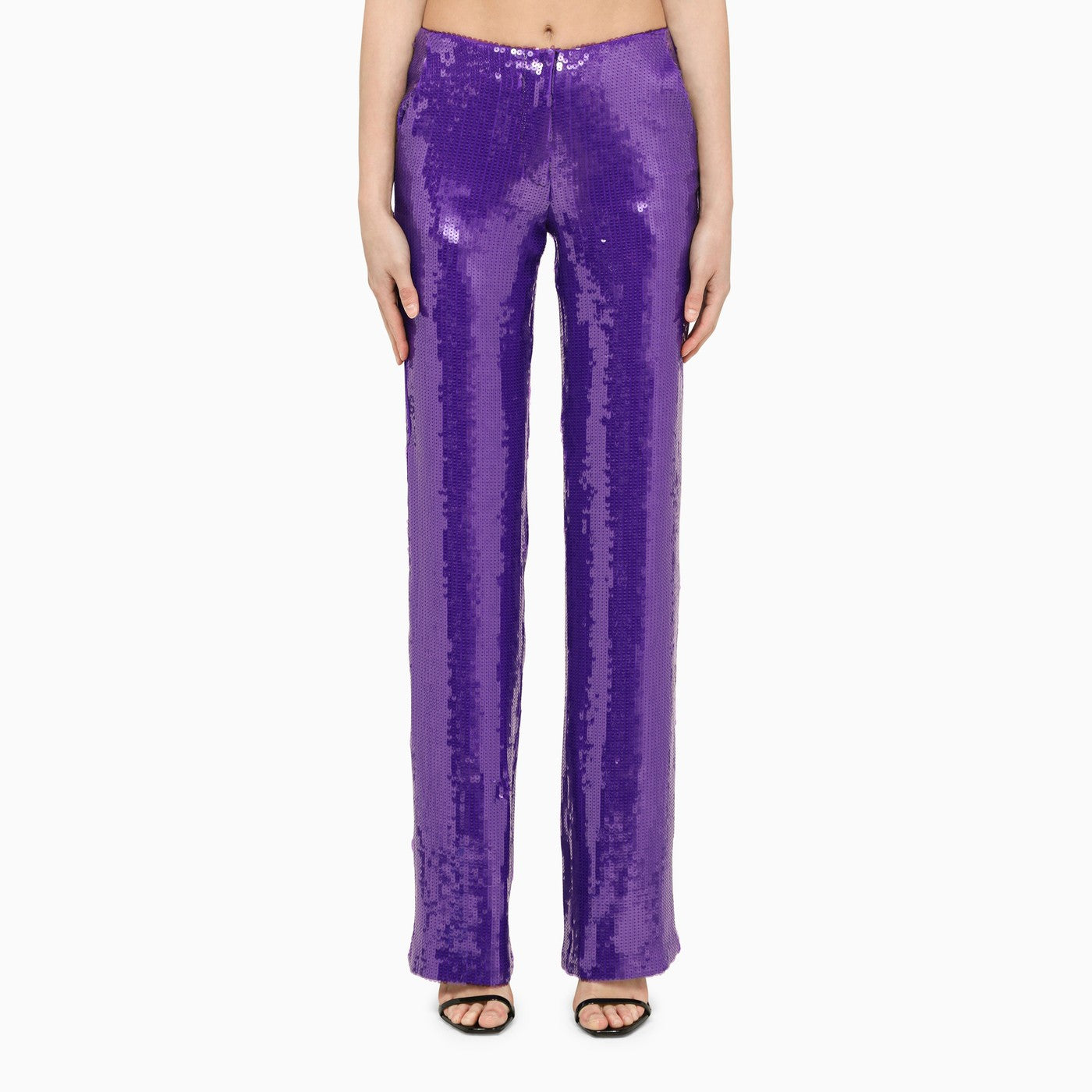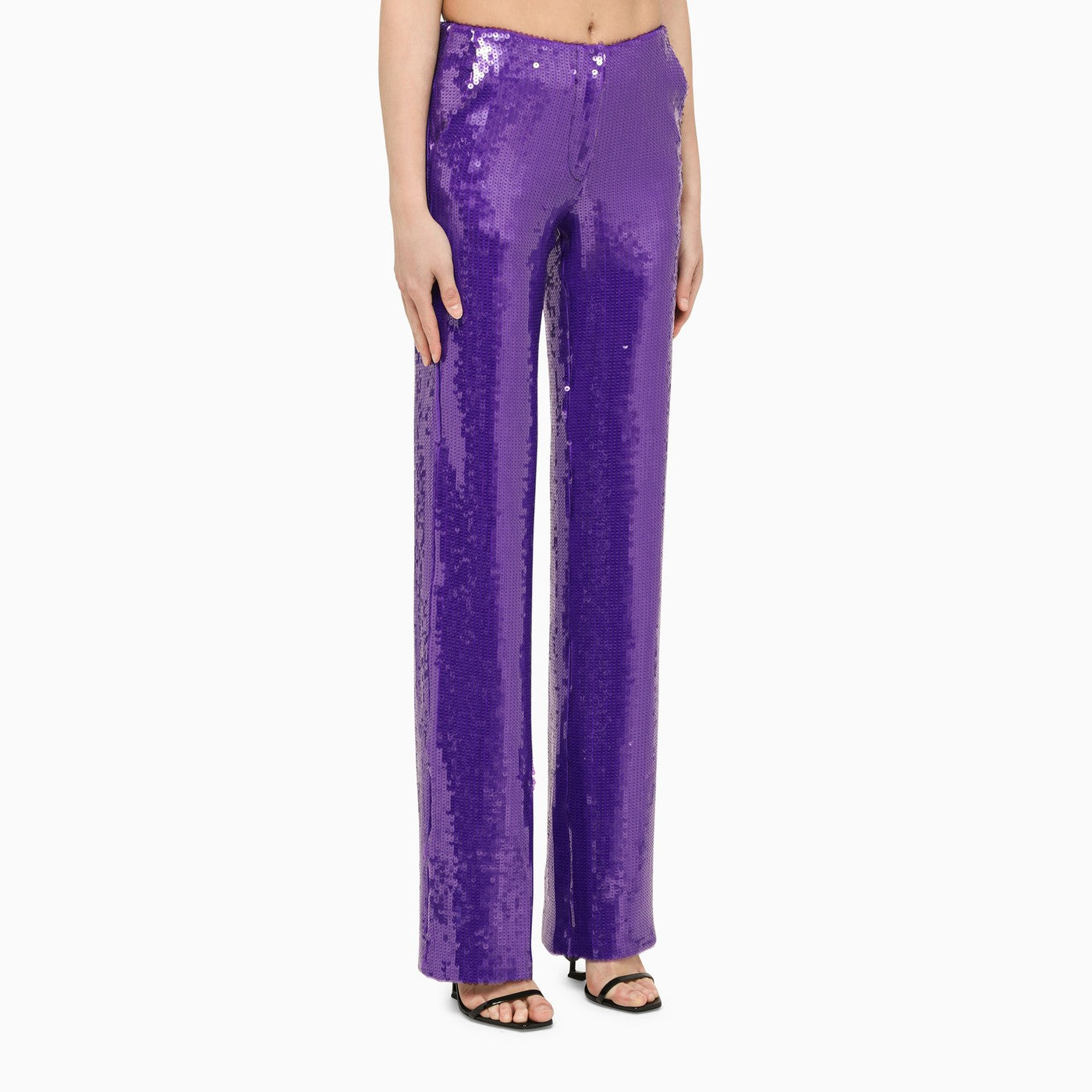 Purple sequined LaQuan Smith trousers with regular fit, medium waist and two side pockets.