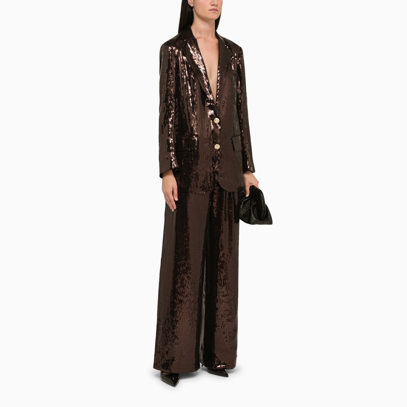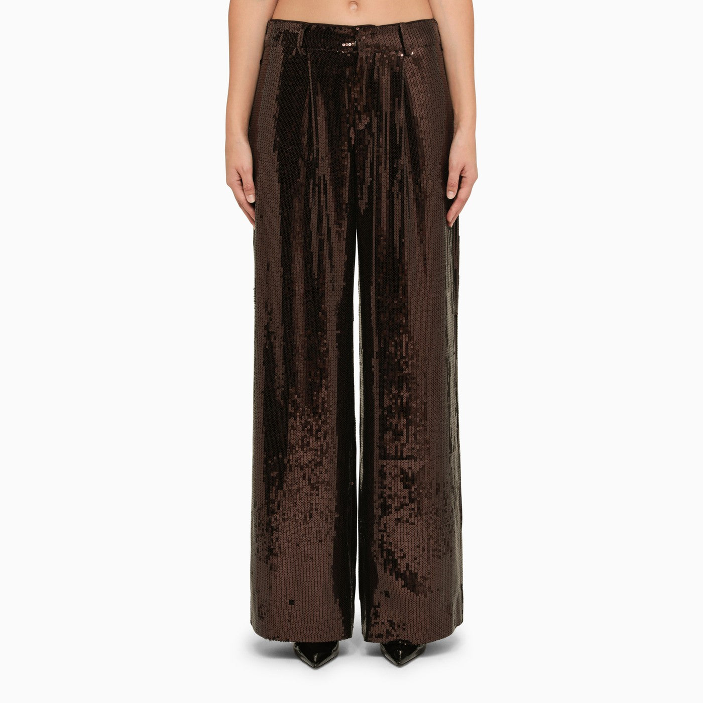 Brown Retrofête trousers in sequins, featuring a medium waist and bellows pockets.