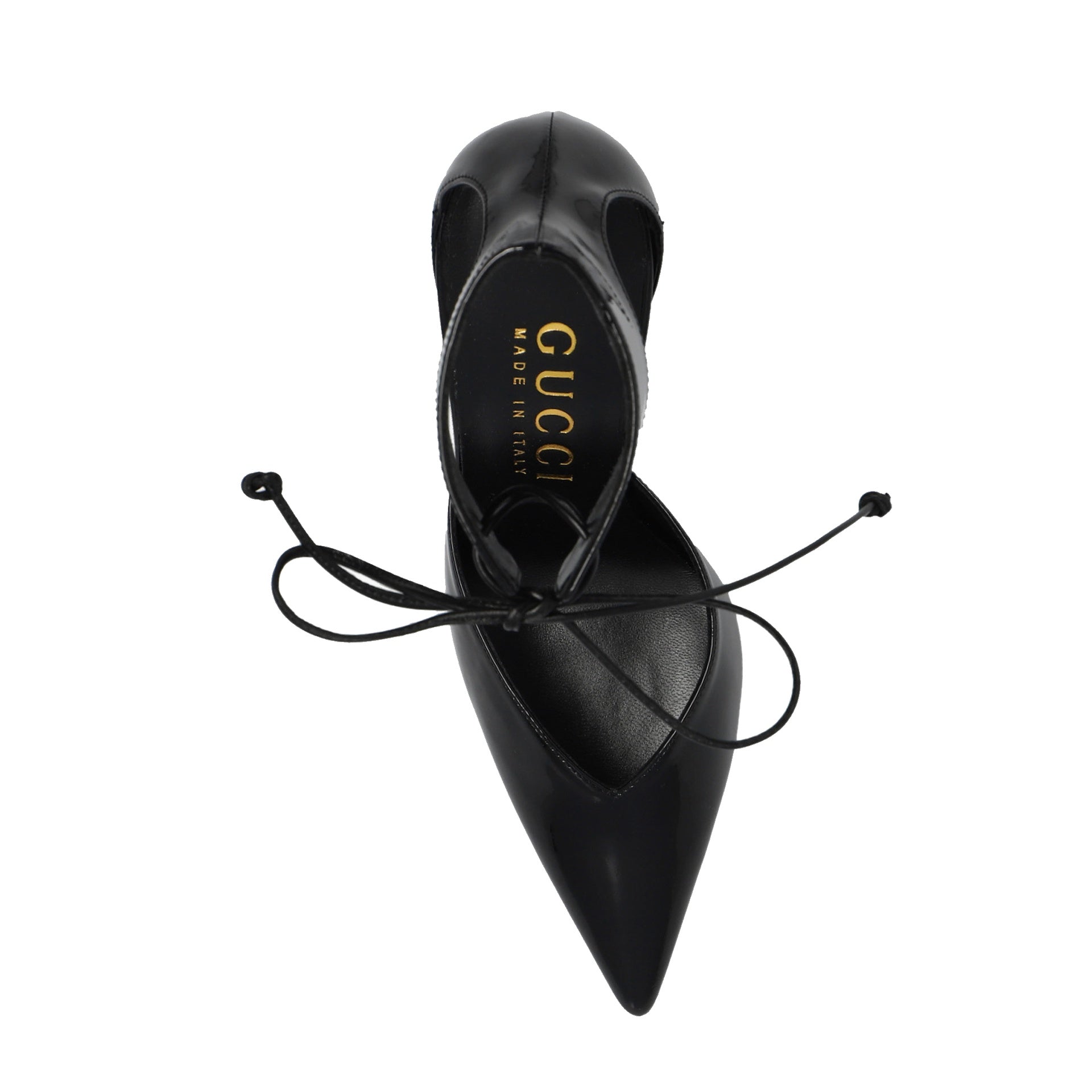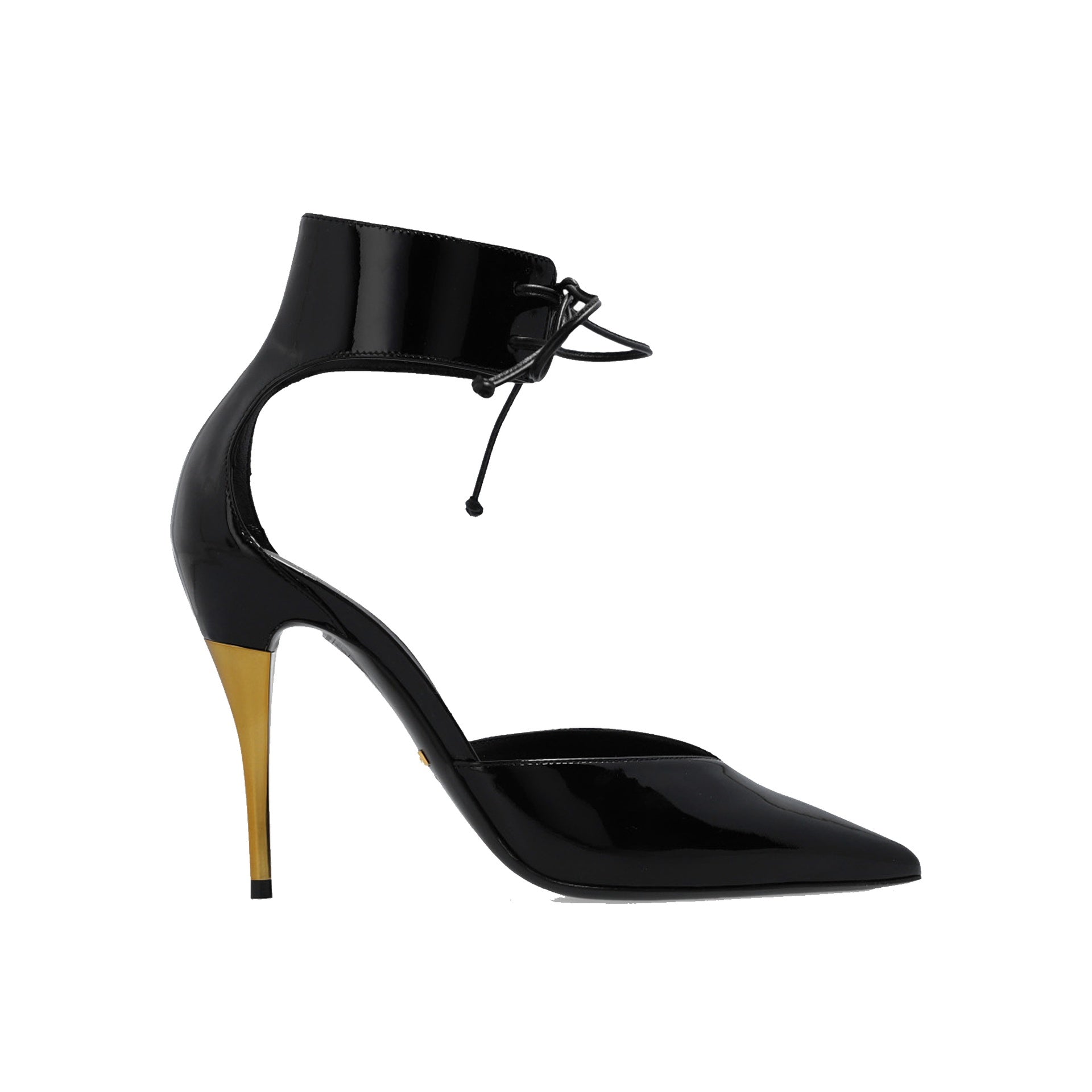 - Composition: 100% Leather - Inner: 100% Leather - Insole: 100% Leather - Sole: 100% Leather - Pointed toe - Branded insole - Front lace-up closure - Heel height: 105 mm - Metallic effect heel - Made of patent leather. - Made in Italy -