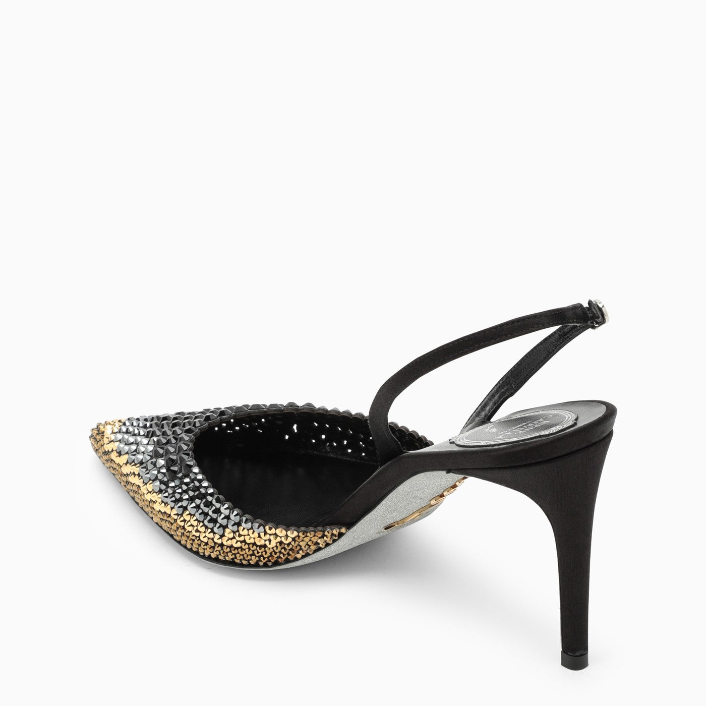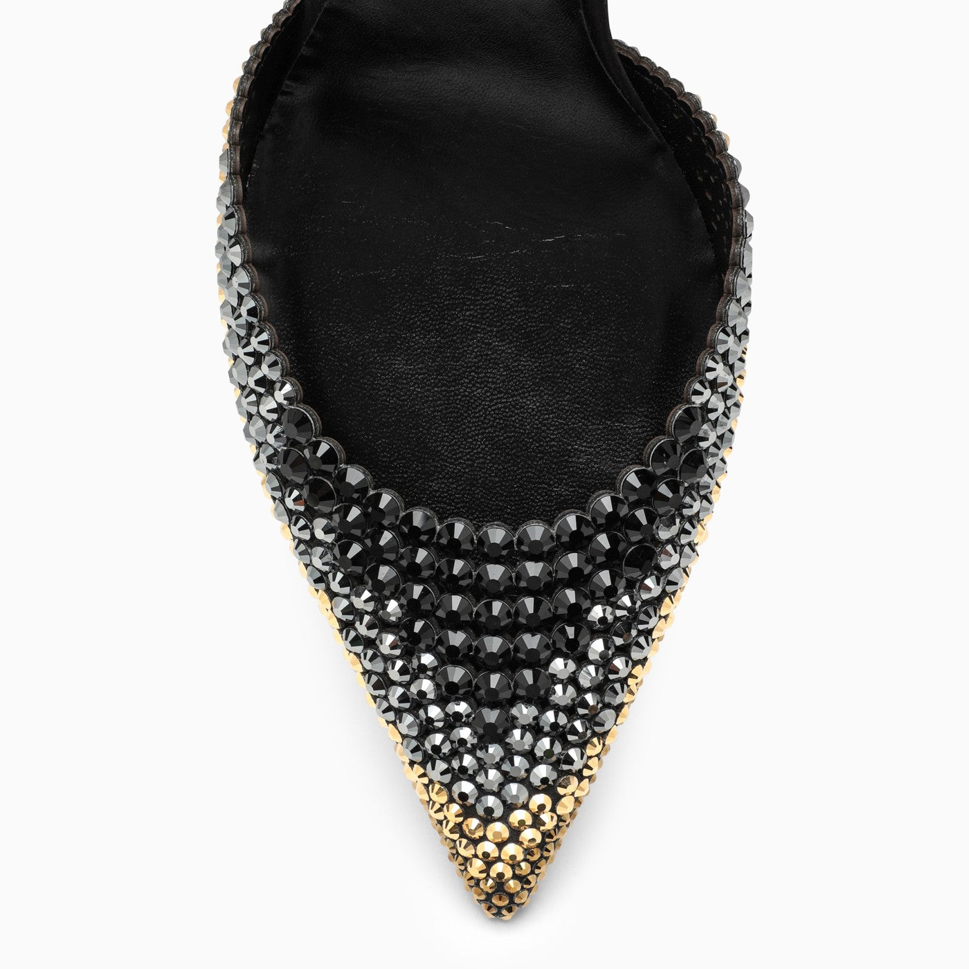 Black slingback by René Caovilla with degrade effect crystals, pointed design, leather insole with logo and leather sole.